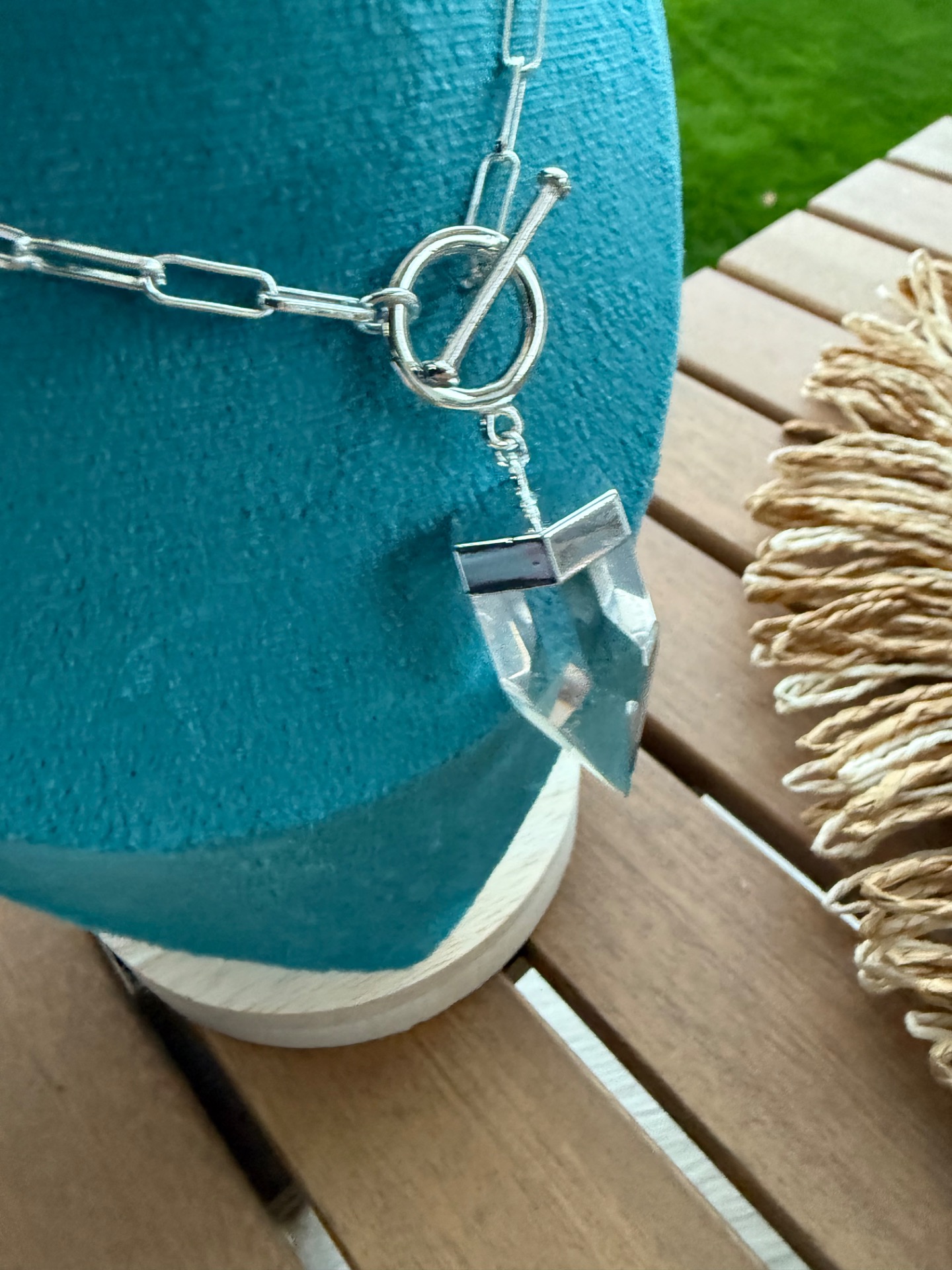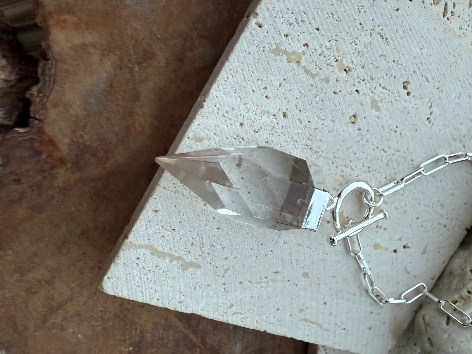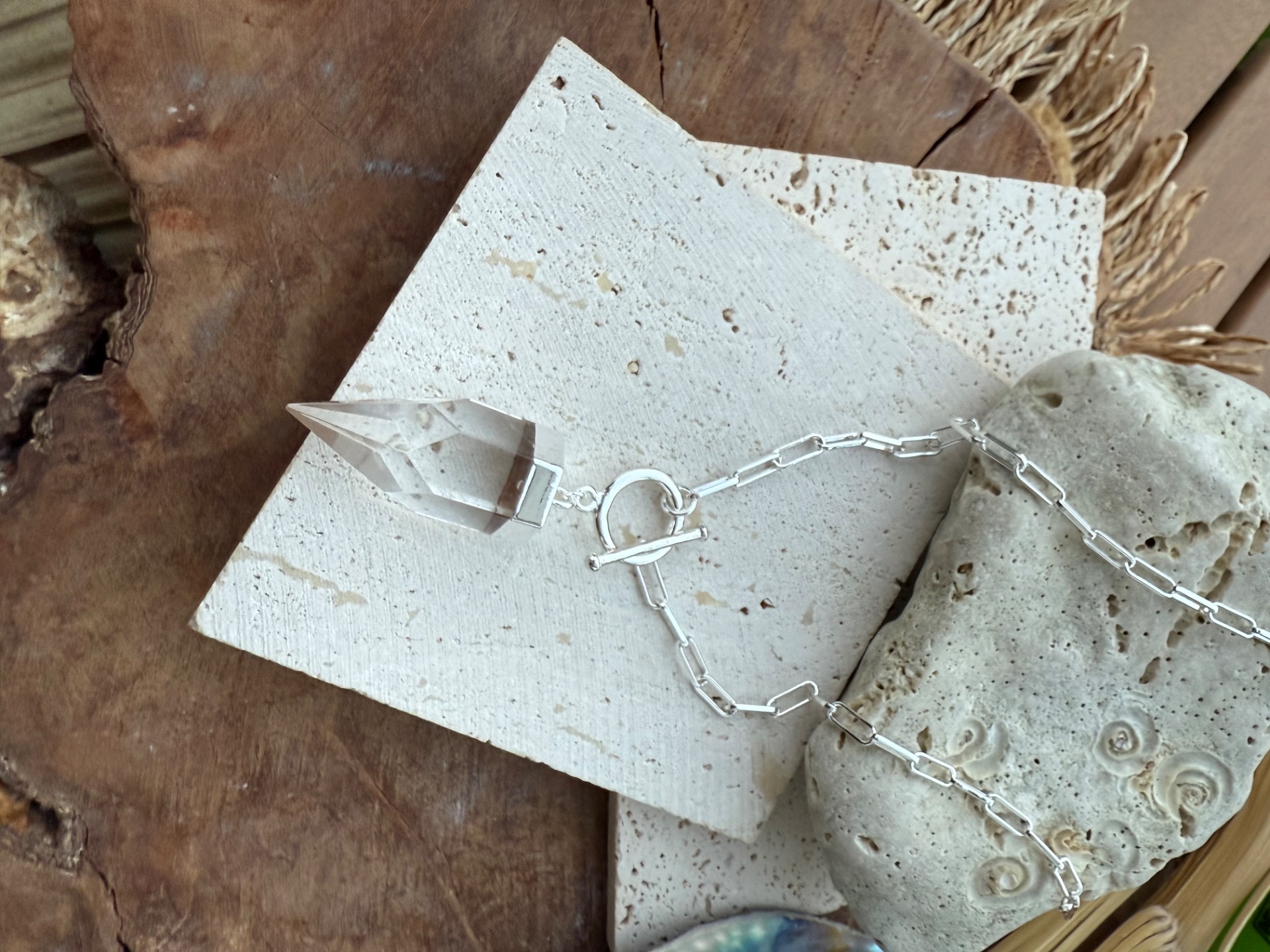 Elegantná retiazka so strieborným pokovením, doplnená o prírodný krištáľ horský v prívesku. Krištáľ je zosilňovač energie a harmonizátor – čistí myseľ, podporuje sústredenie a chráni pred negatívnymi energiami.