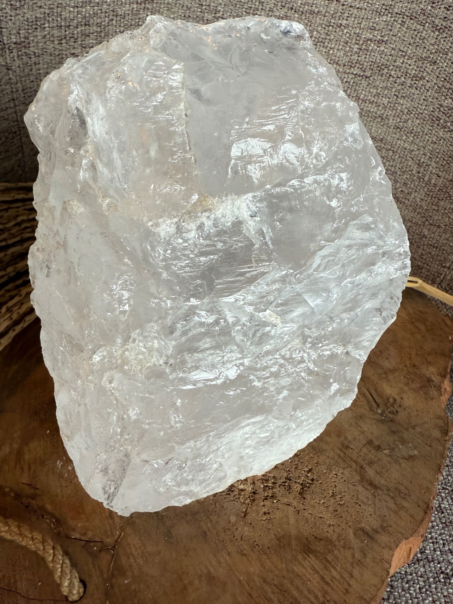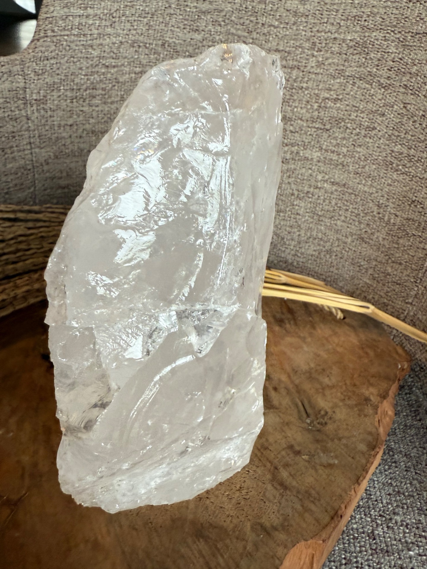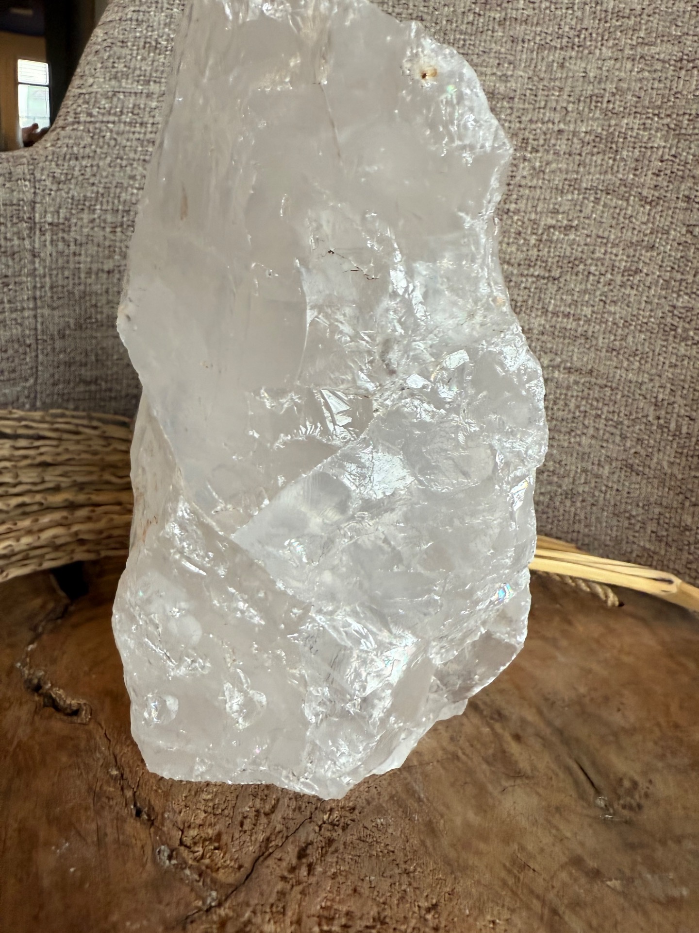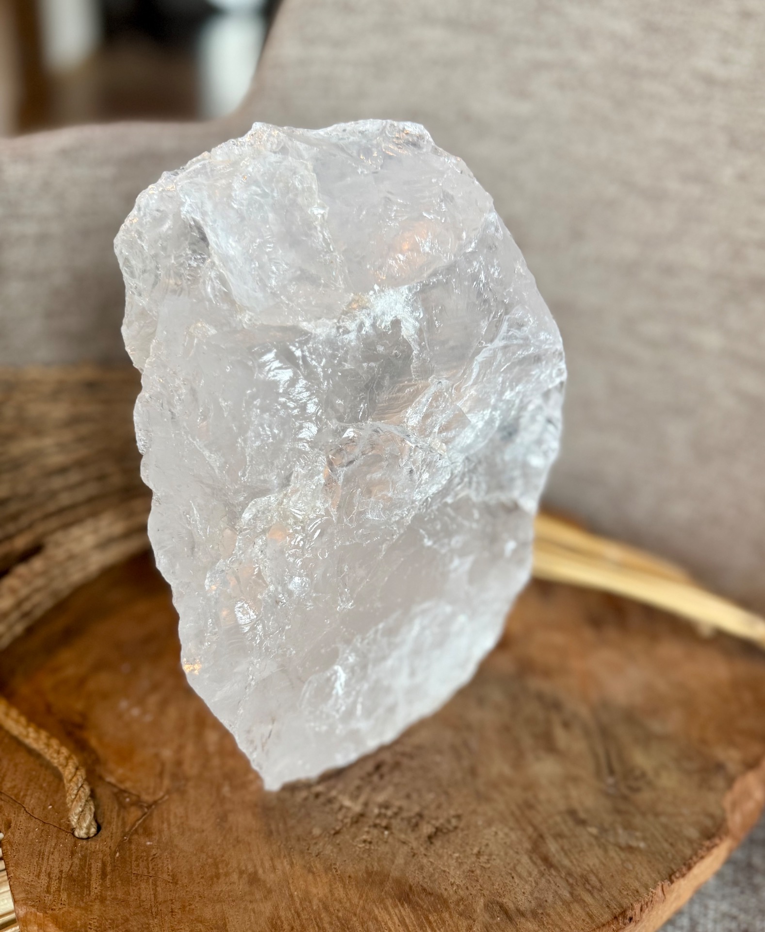 Objavte silu čistého krištáľu horského a vneste do svojho priestoru jas, svetlo a harmóniu. Tento masívny surový krištáľ (3 kg) je unikátny free form kameň, ktorý kombinuje prirodzenú surovosť s praktickou úpravou – spodná časť je brúsená, aby kameň stabilne stál, zatiaľ čo horná časť zostala v autentickom prírodnom stave.
