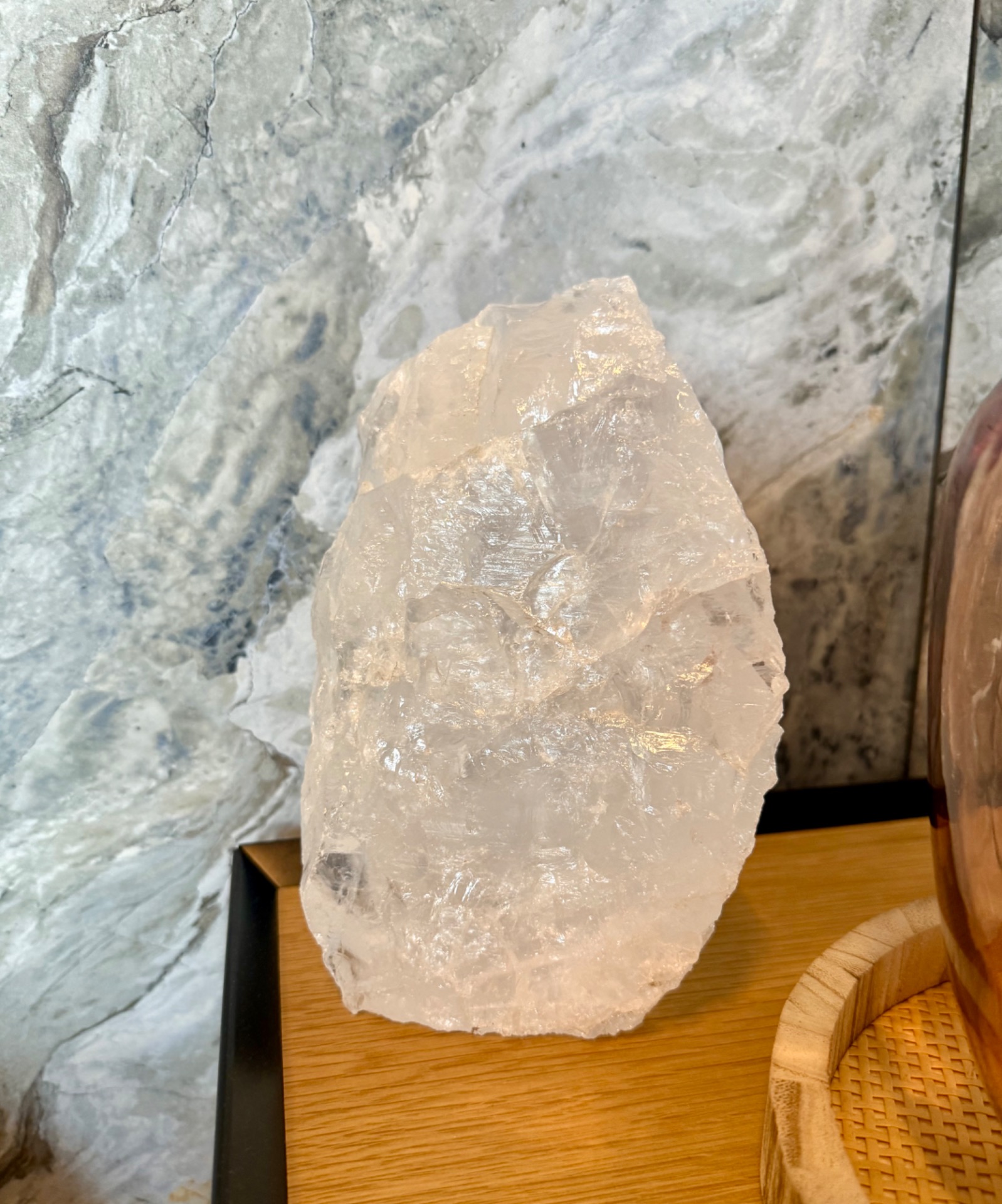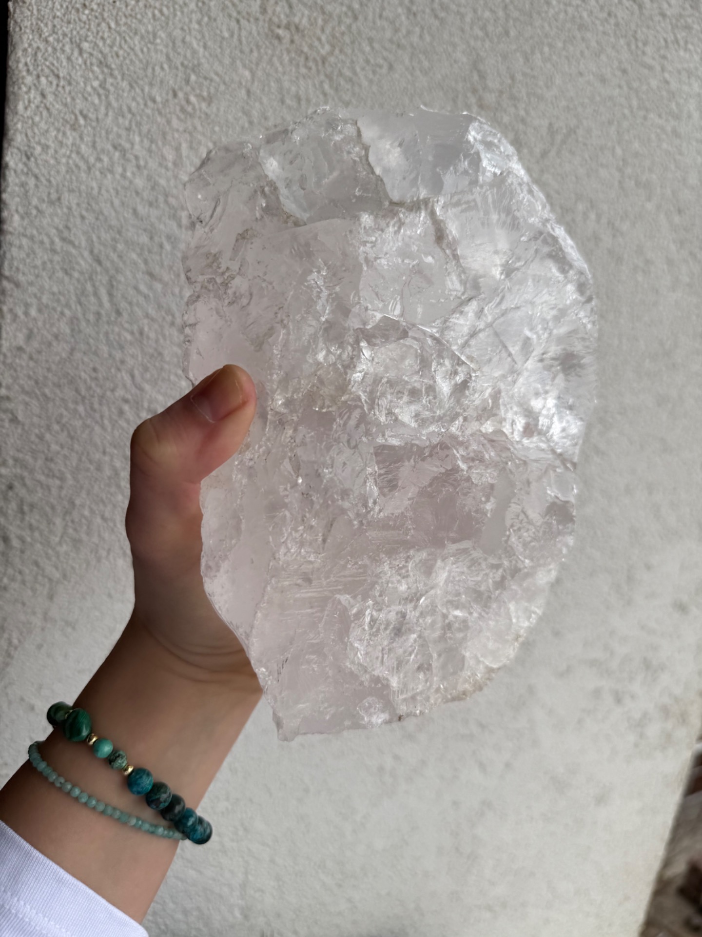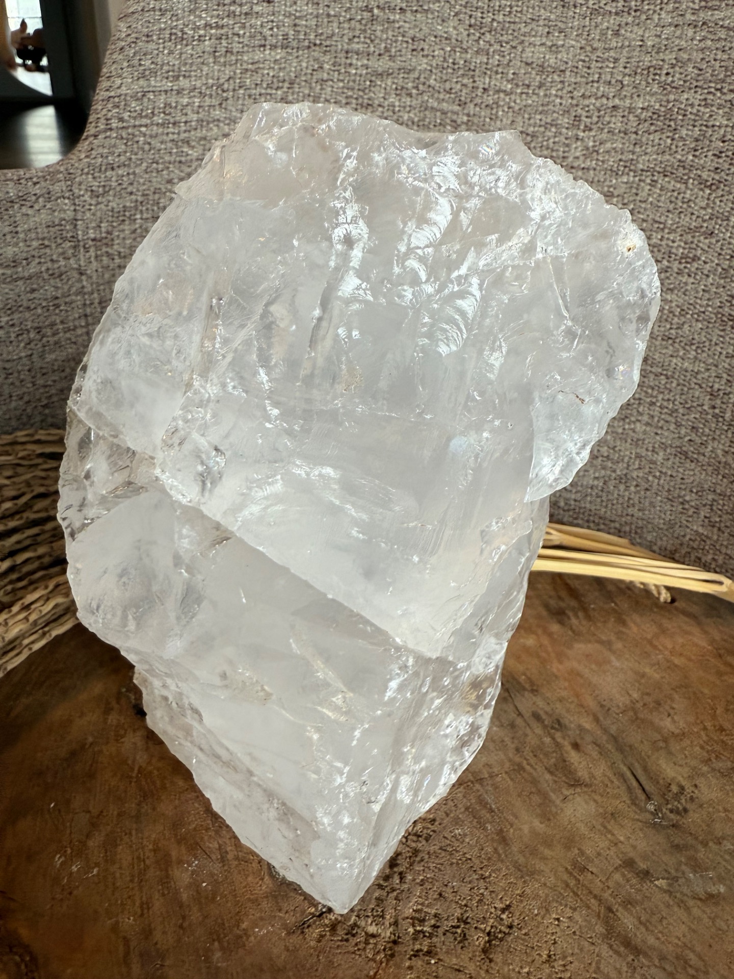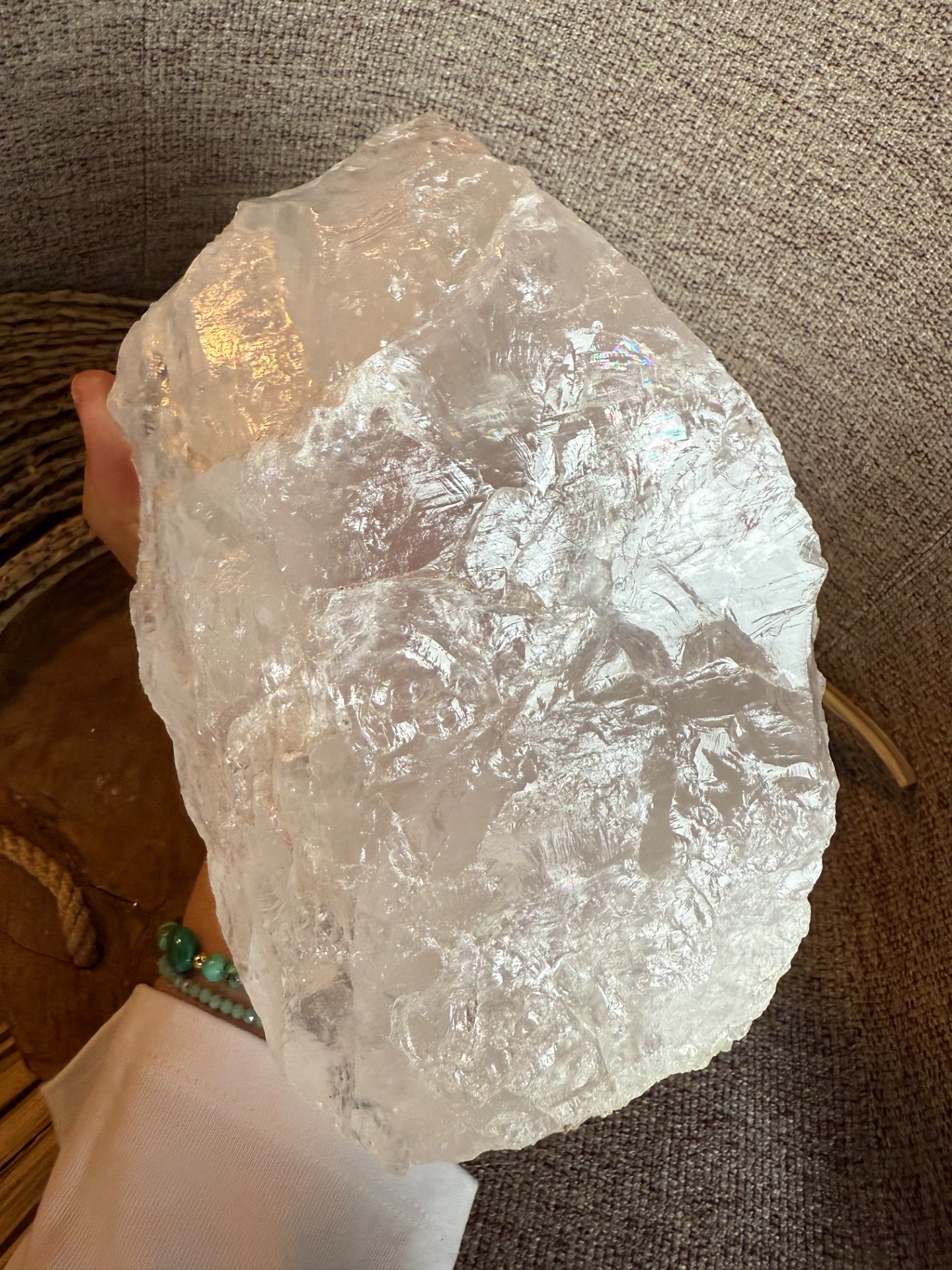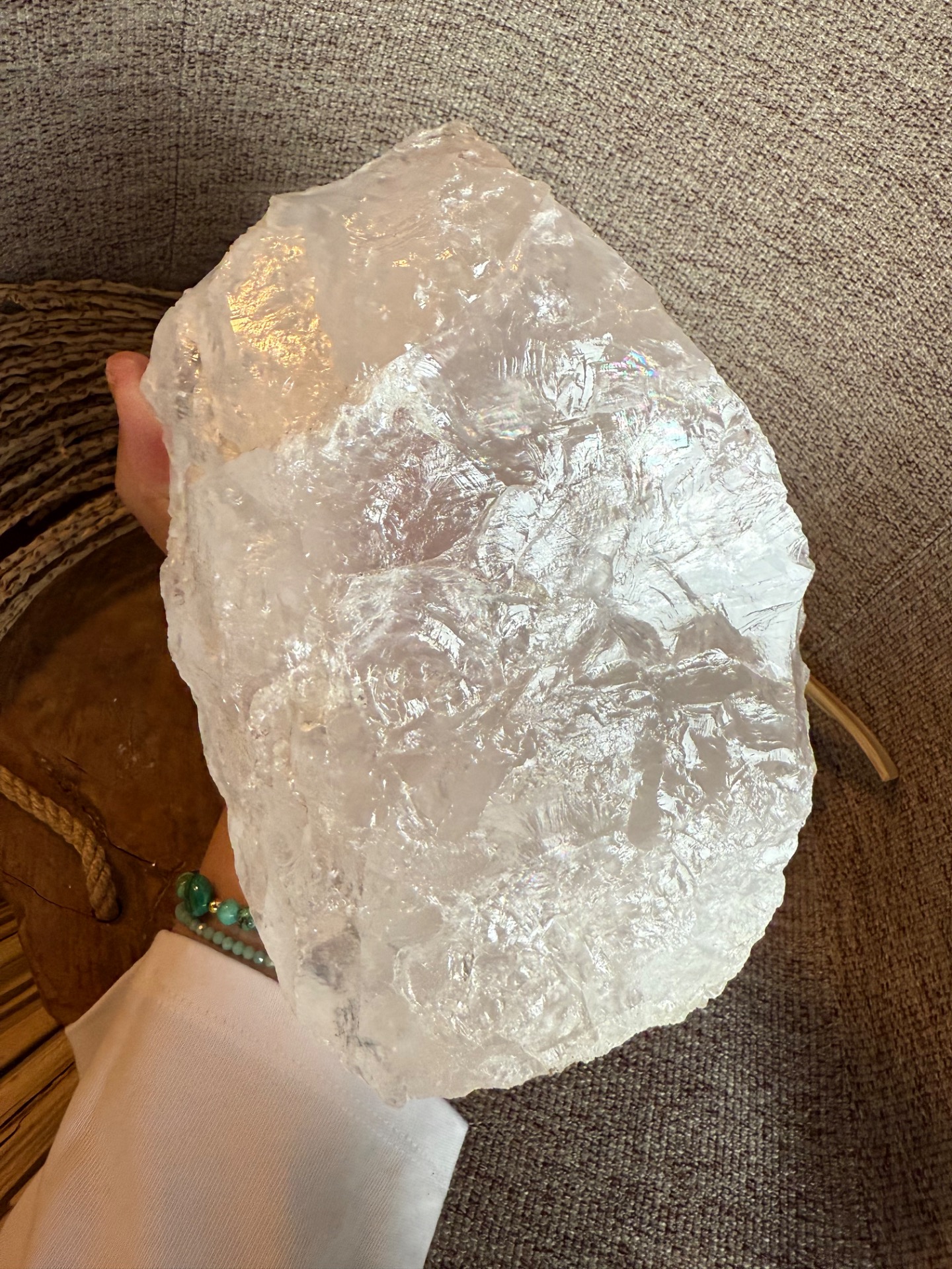 Objavte silu čistého krištáľu horského a vneste do svojho priestoru jas, svetlo a harmóniu. Tento masívny surový krištáľ (3 kg) je unikátny free form kameň, ktorý kombinuje prirodzenú surovosť s praktickou úpravou – spodná časť je brúsená, aby kameň stabilne stál, zatiaľ čo horná časť zostala v autentickom prírodnom stave.