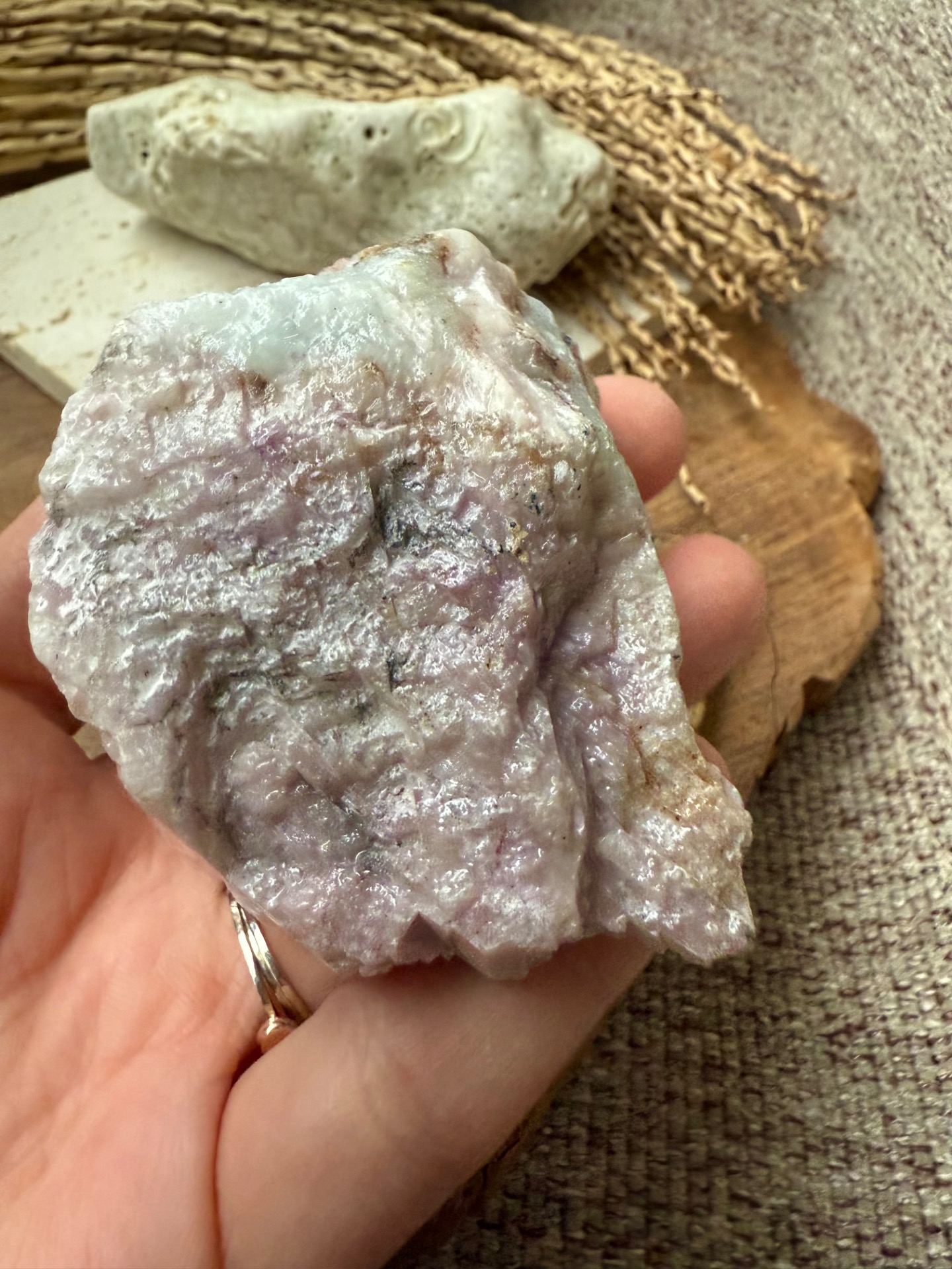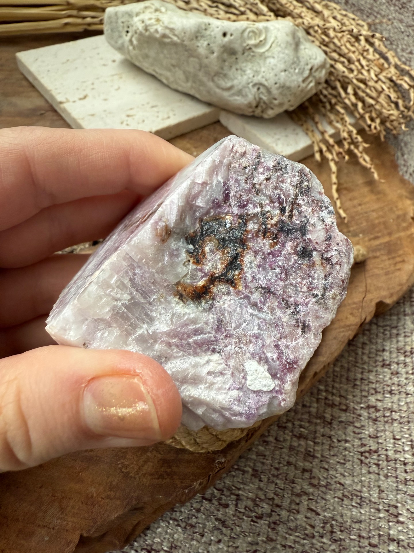 Tento surový kunzit nesie energiu jemnej, liečivej a hlboko ženskej vibrácie. Je kameňom srdca, intuície a emocionálneho uzdravenia, ktorý pomáha uvoľňovať staré rany, otvárať sa láske a prehlbovať spojenie so sebou samou.
