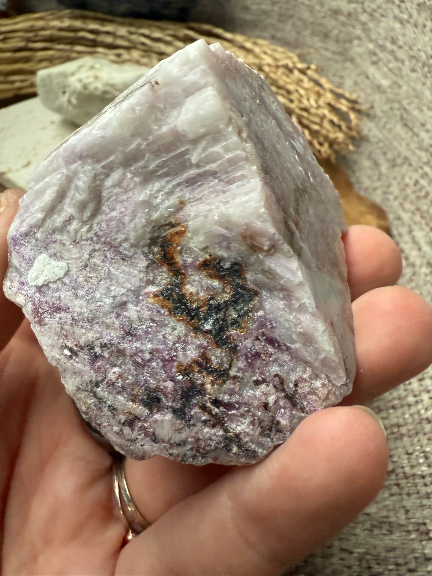 Jeho ružovo–fialové odtiene nesú vibráciu jinovej energie — mäkkej, citlivej, no zároveň hlboko silnej. Kunzit pôsobí ako energetický ochranca srdca, pomáha pri emočnom vyčerpaní, citovej bolesti aj pri otváraní sa novej láske.