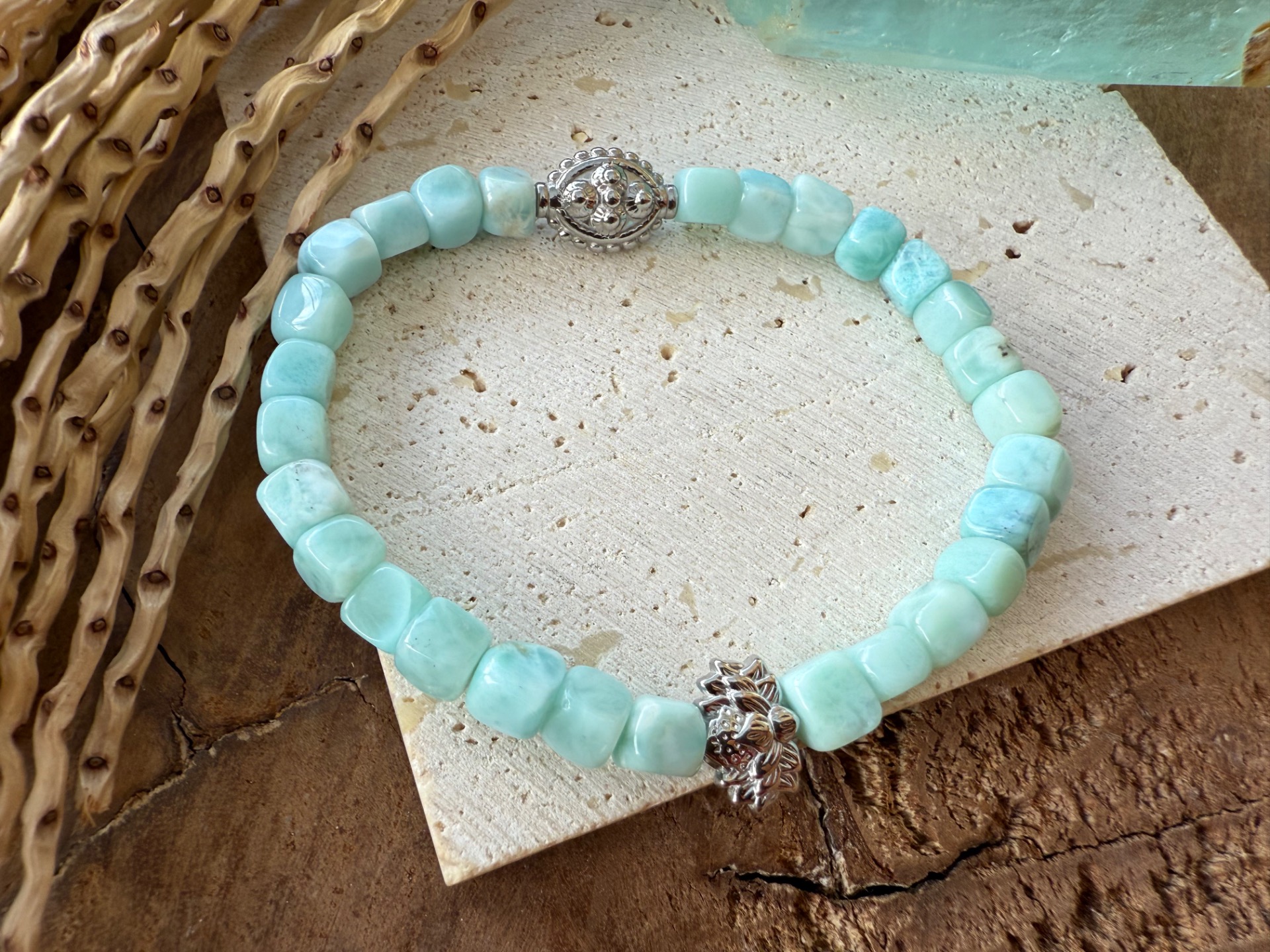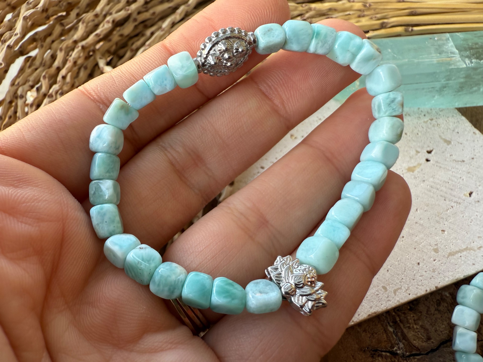 Na mentálnej úrovni zaisťuje larimar pokojné, jasné a konštruktívne premýšľanie. Podporuje tvorivé schopnosti a dodáva odvahu vrhnúť sa do prúdu udalostí a plávať s ním.