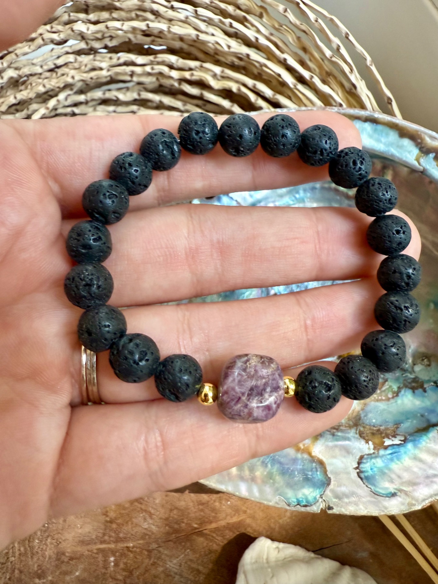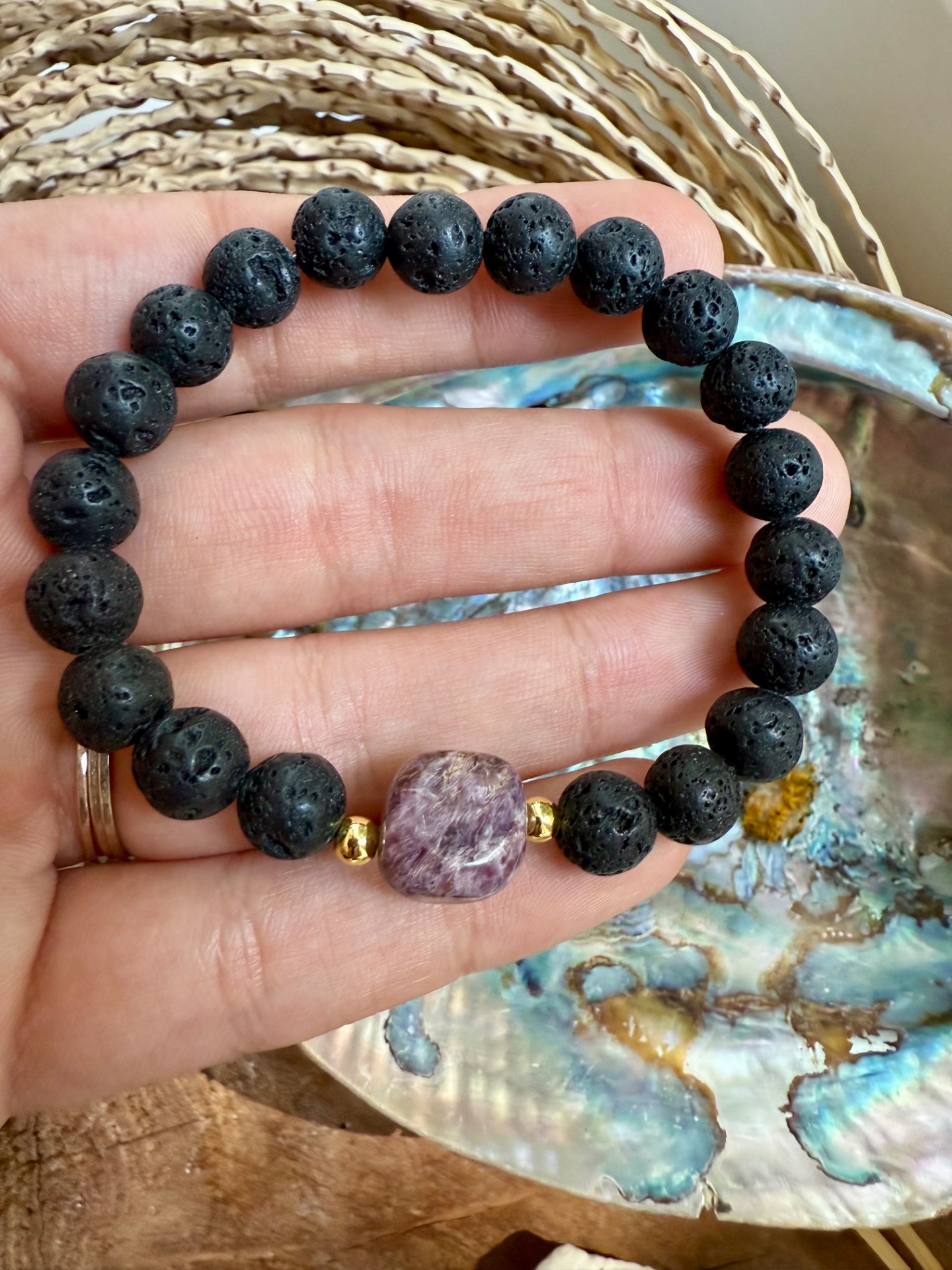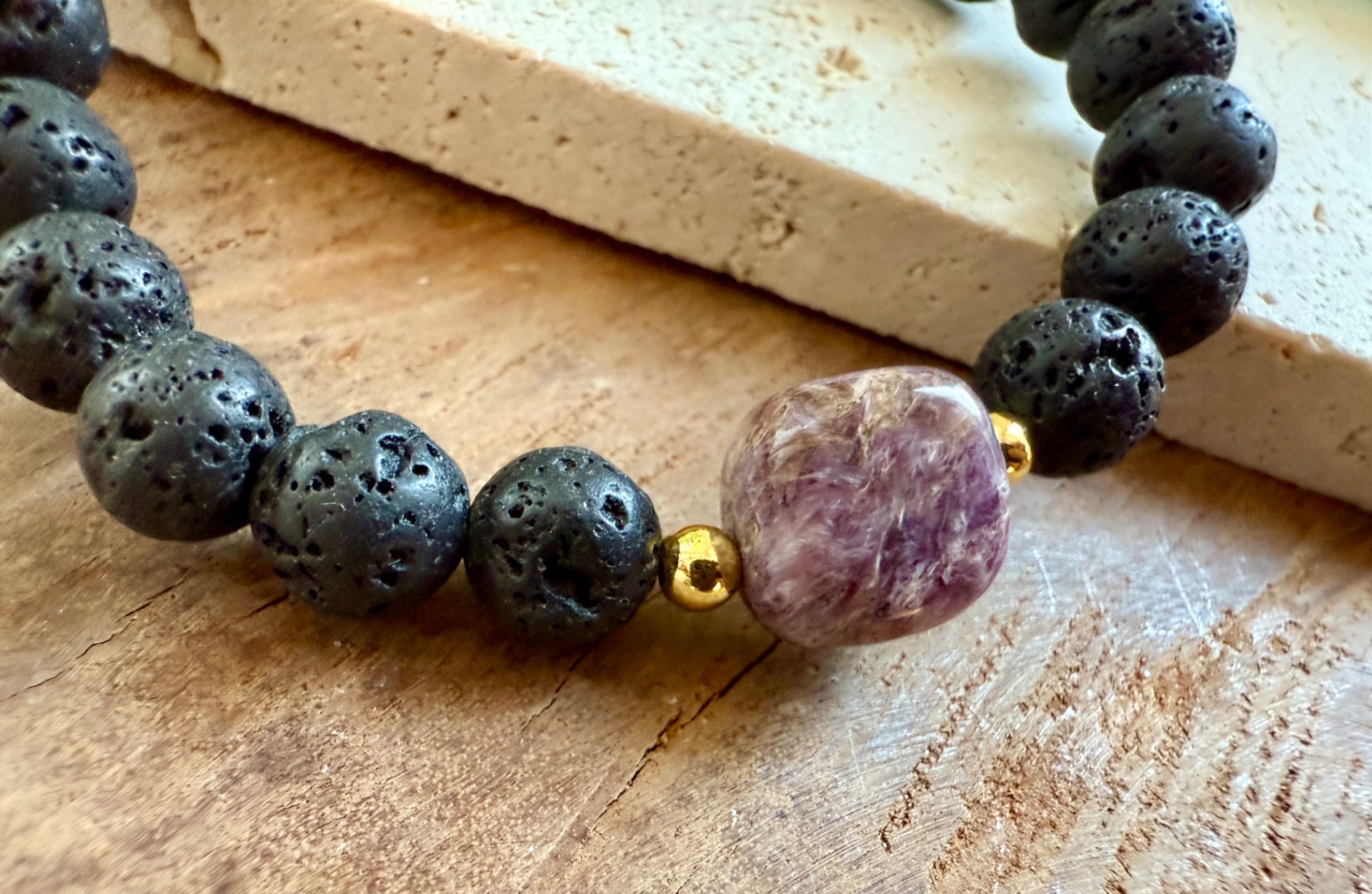 Šamanka – dámsky náramok z čaroitu a lávového kameňa (8 mm)