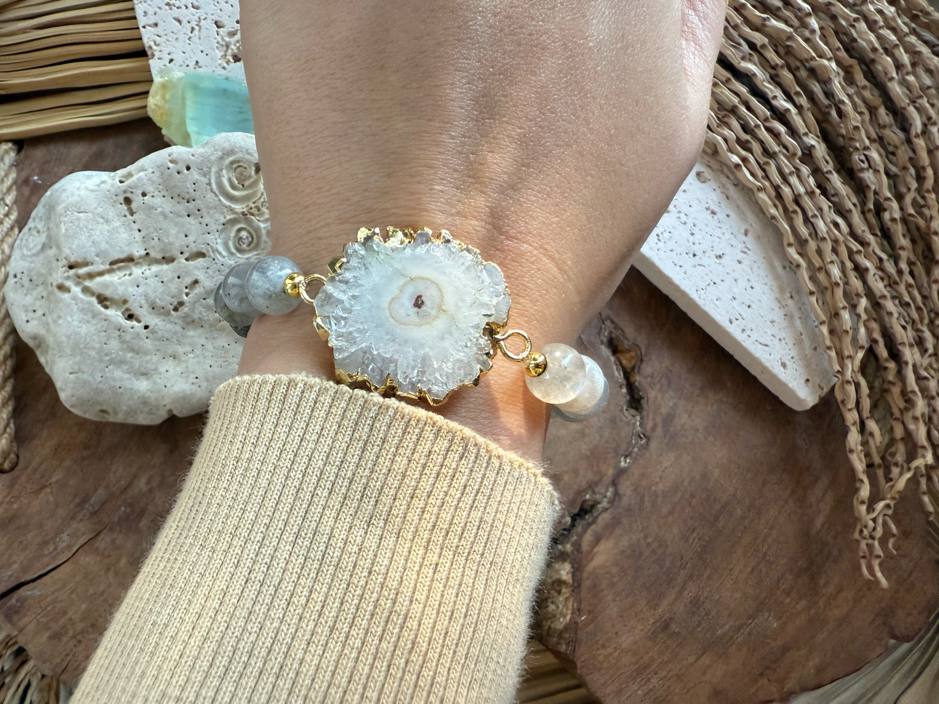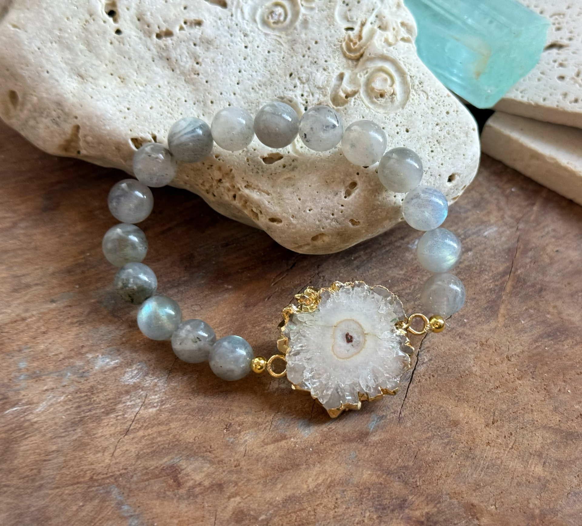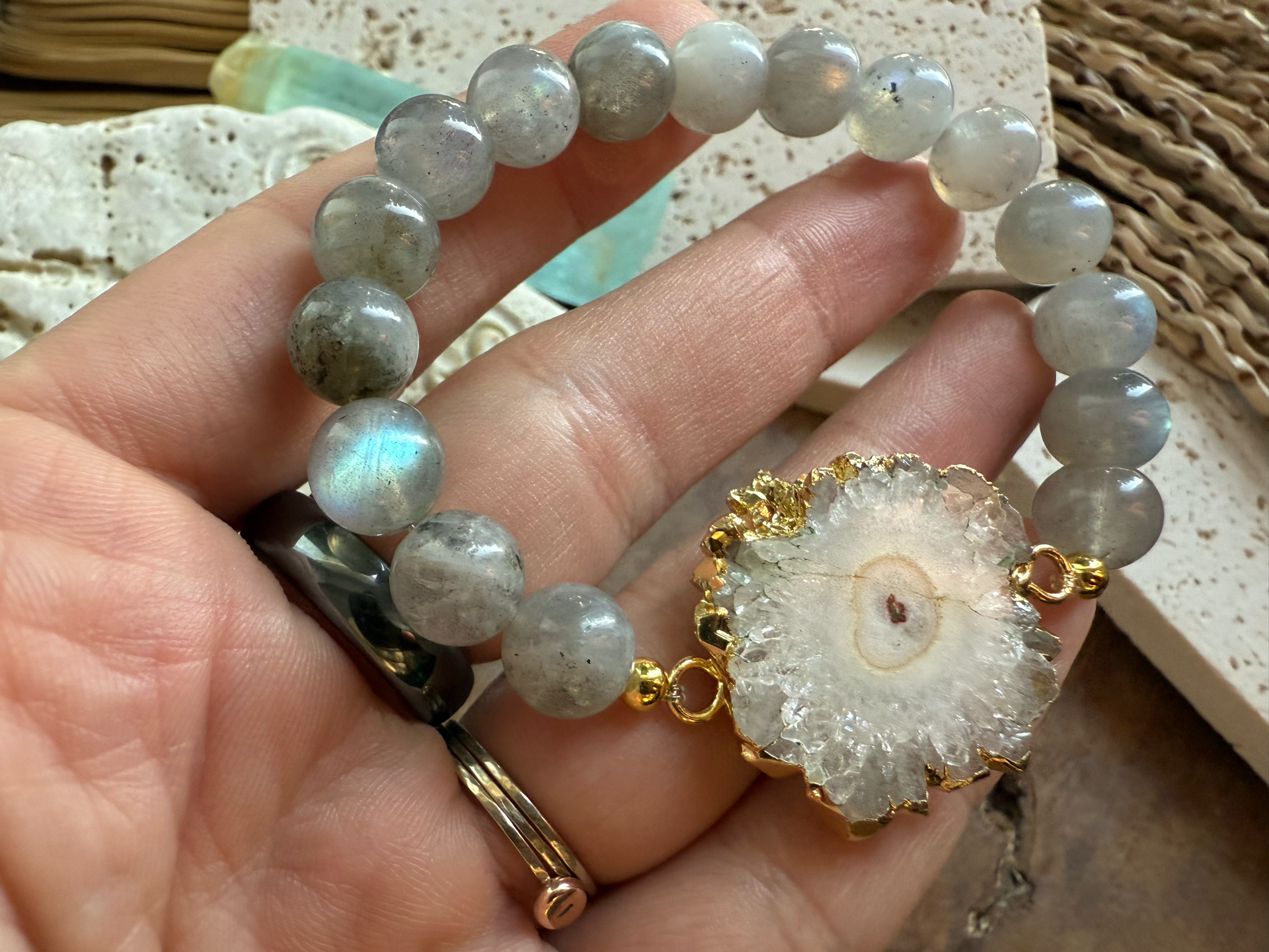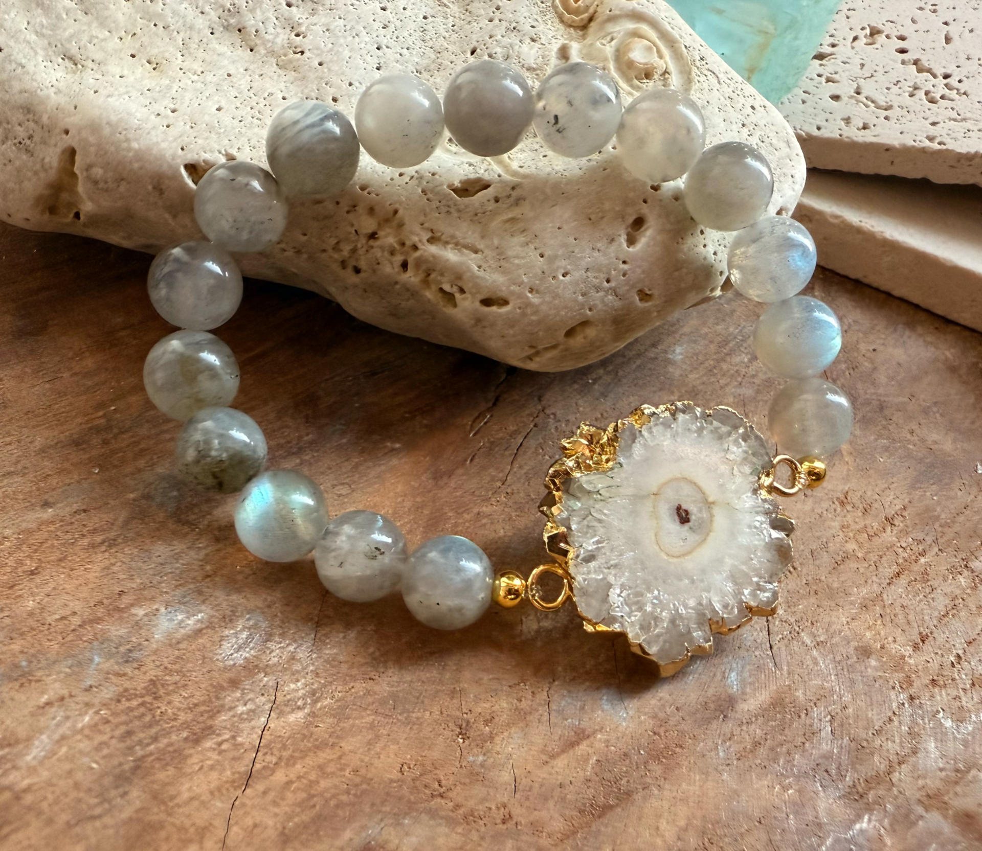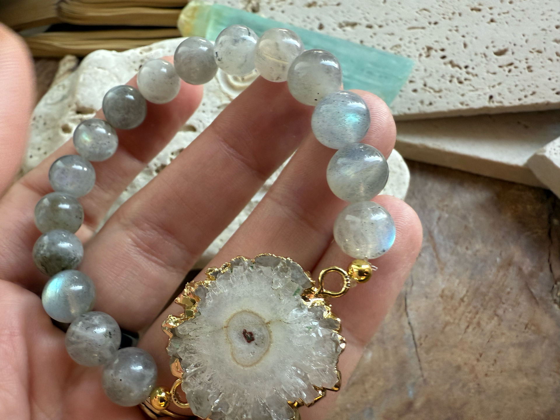 Náramok z labradoritu a bielej achátovej drúzy – Svetlo v tme