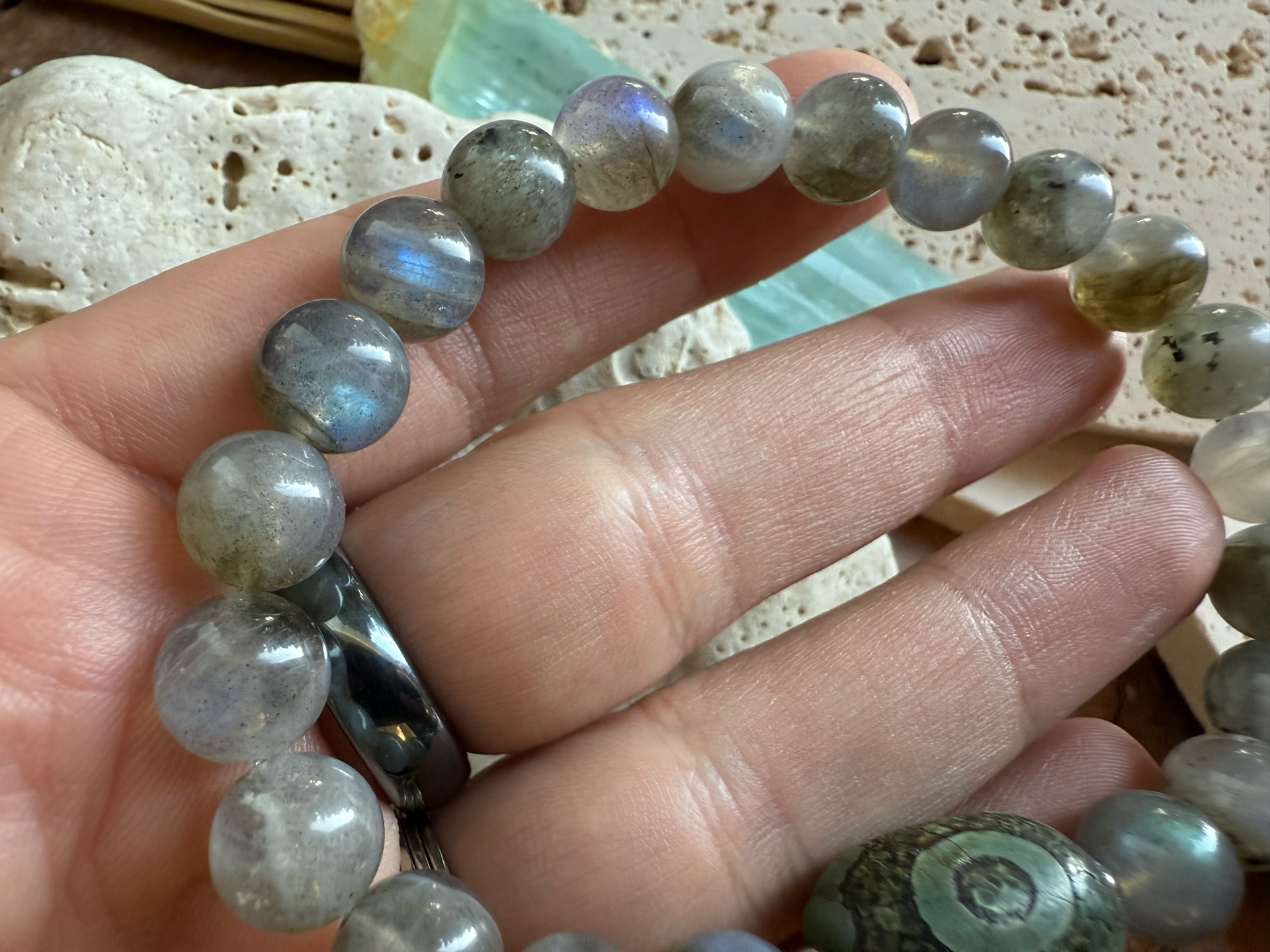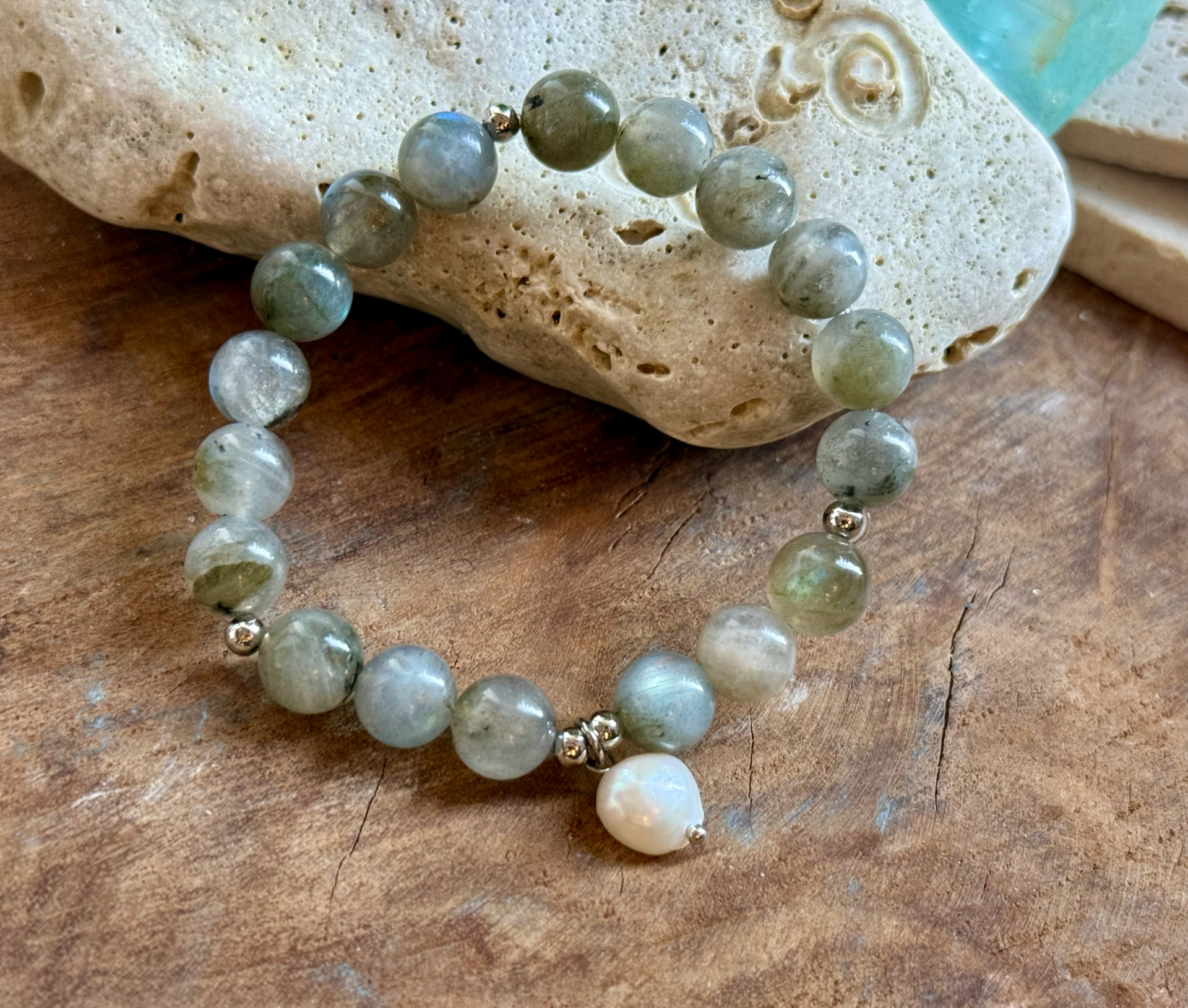 Náramok z dúhového labradoritu a riečnej perly – Uzdravenie