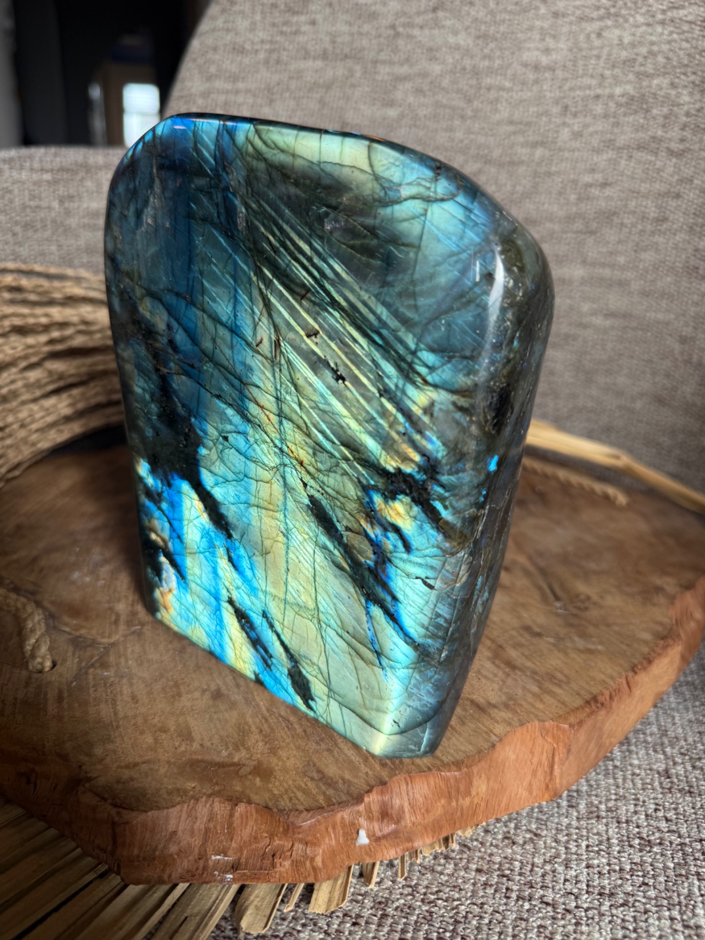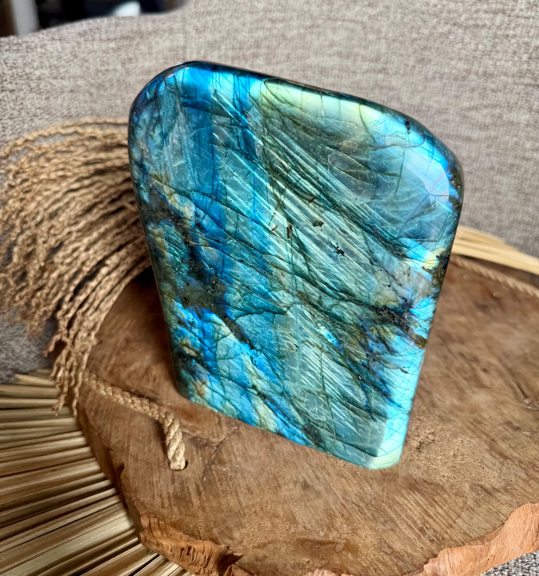 Tento Labradorit AAA free form – Portál medzi svetmi je ideálny pre spirituálnu prácu, meditácie, ochranu, transformáciu a zberateľov, pričom slúži aj ako impozantný a energeticky silný solitér do priestoru.