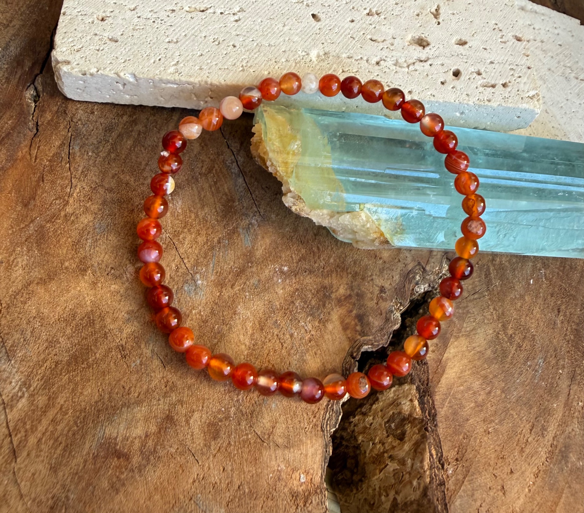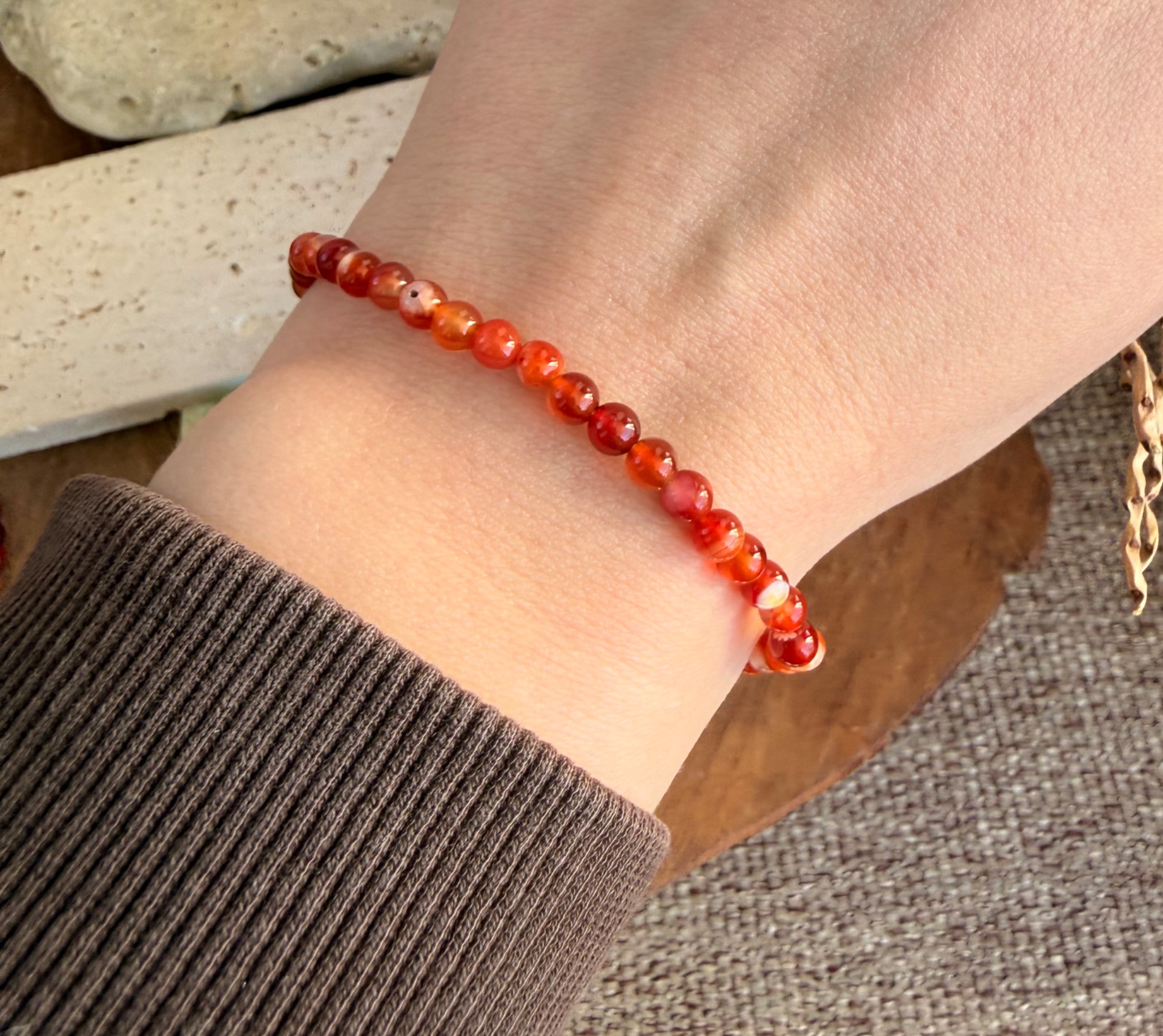 Náramok z karneolu 4 mm – "Vitalita" (17 cm)