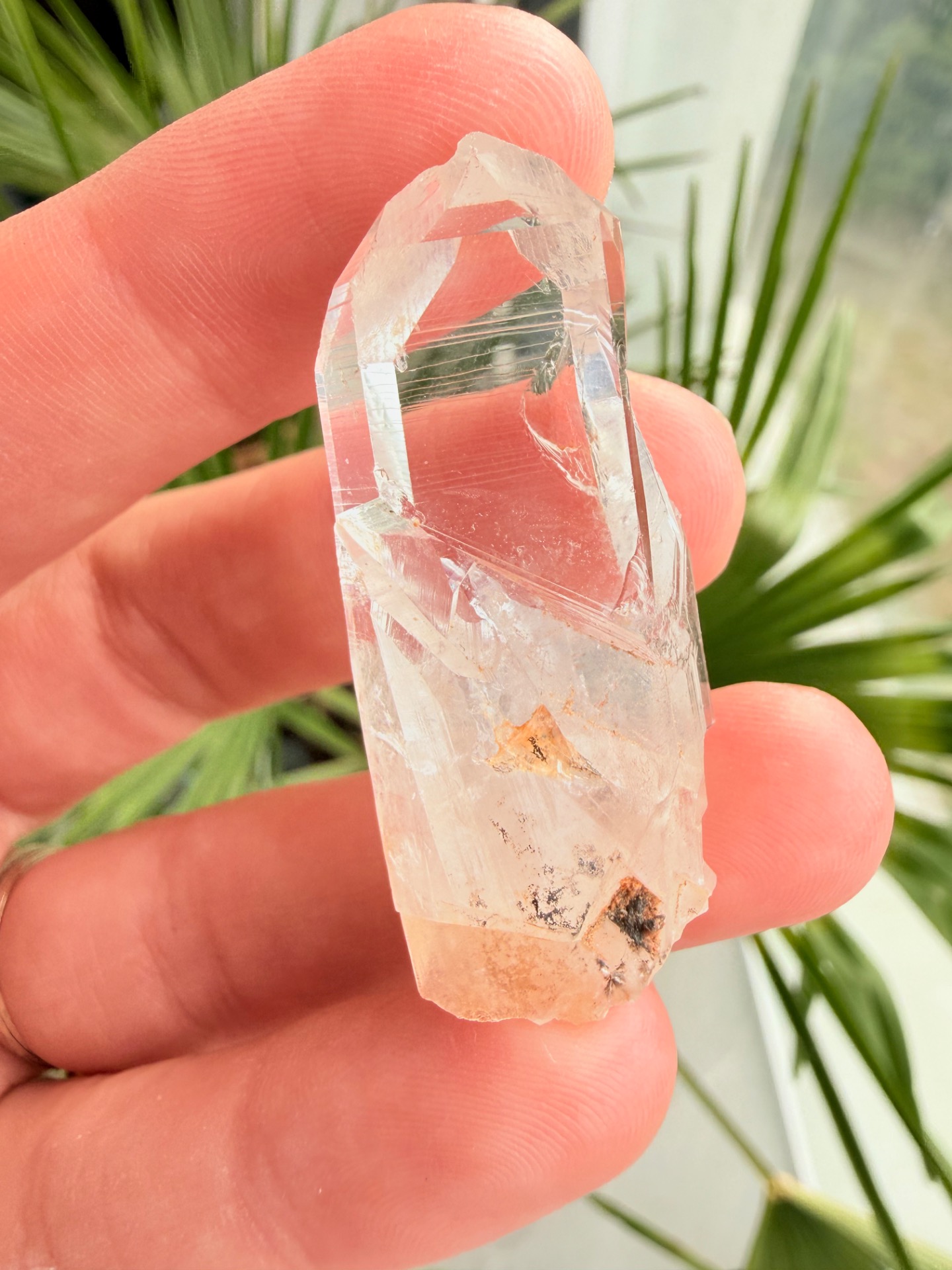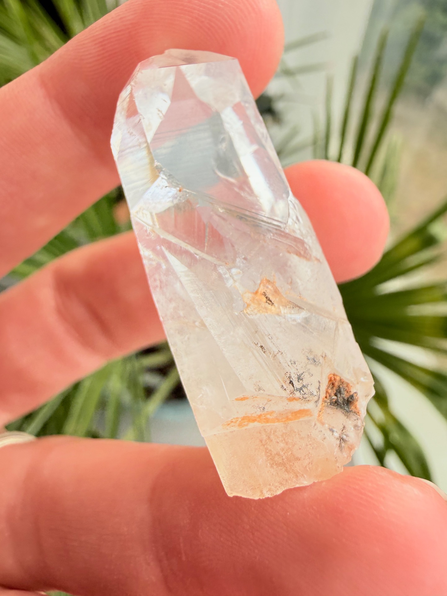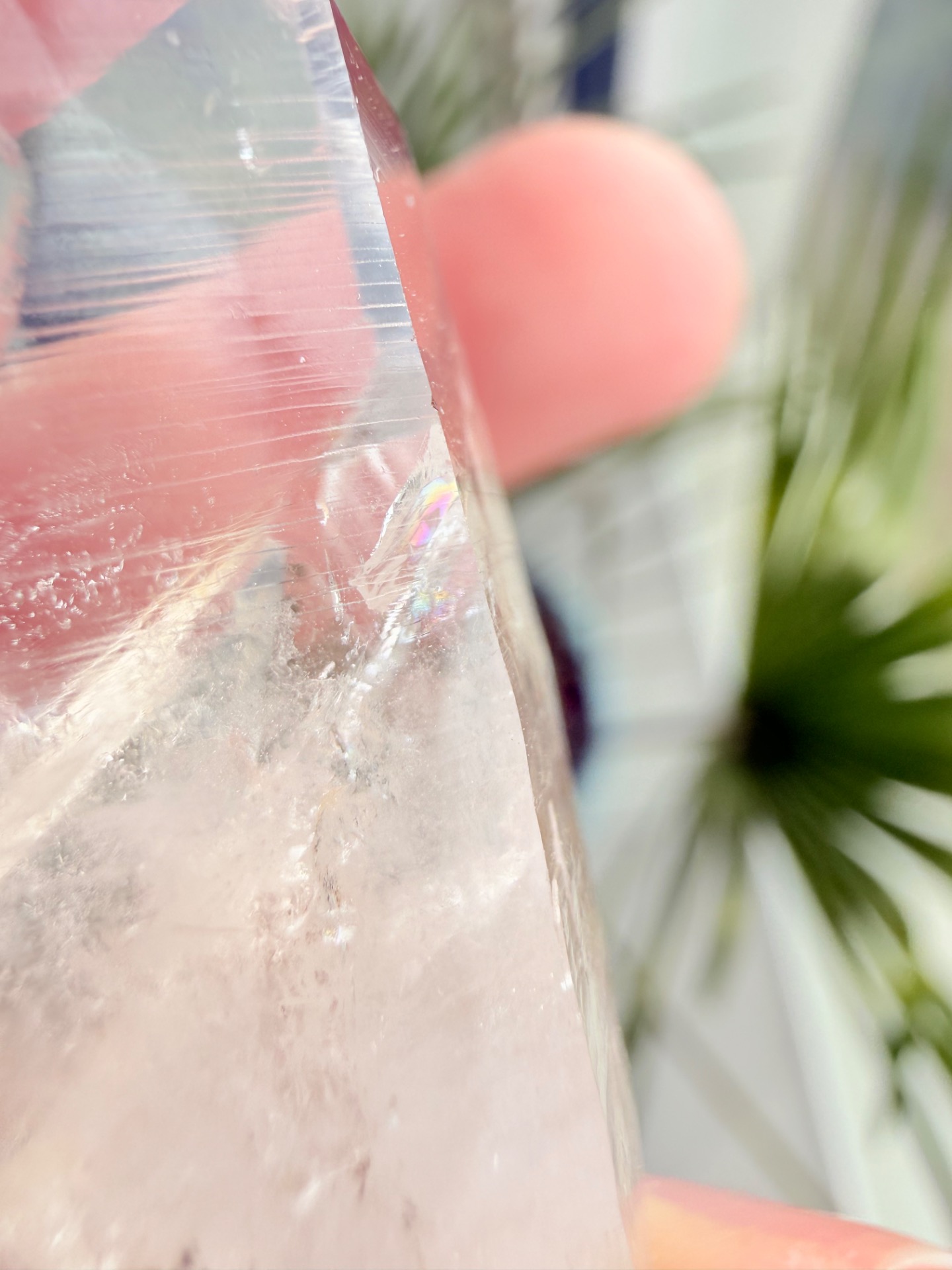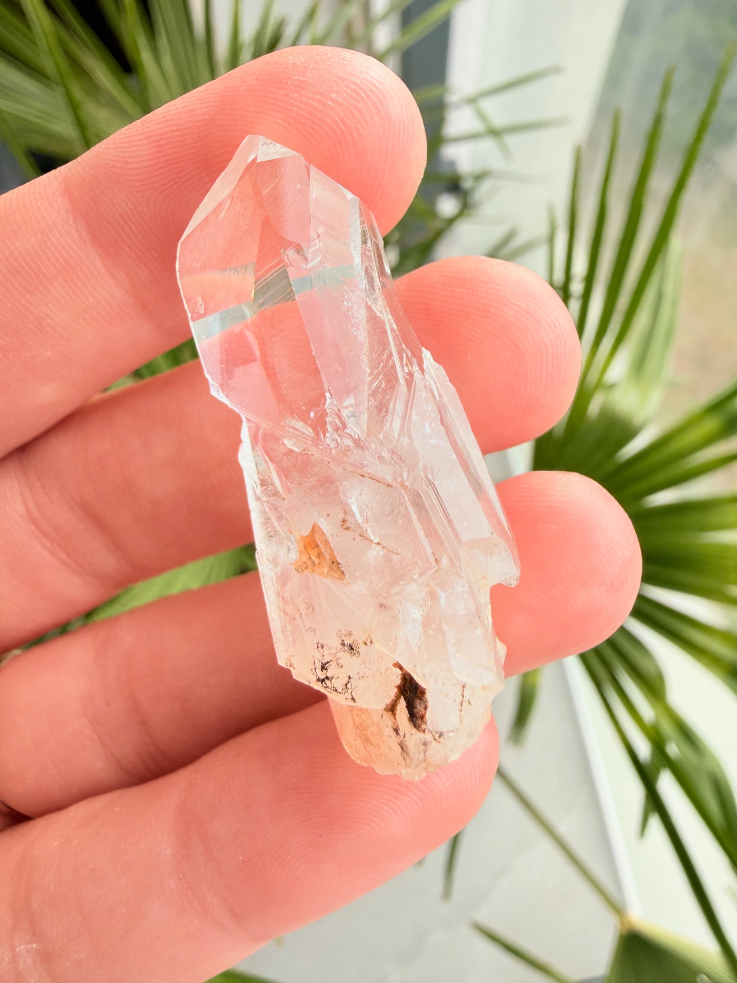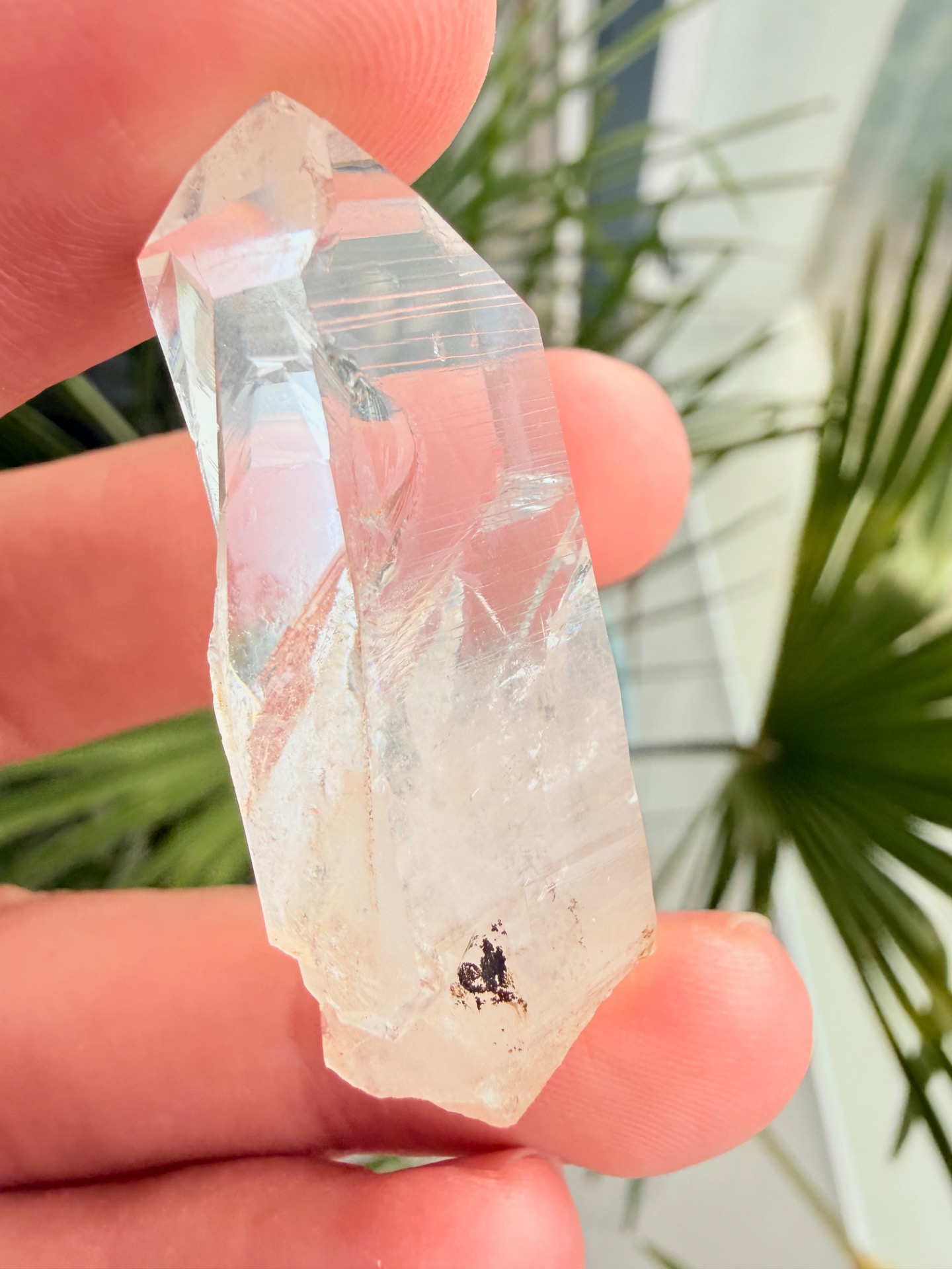 Tento výnimočný lemurský krištálik, známy aj ako Lemurian Seed Quartz, je nádherným príkladom prírodného majstrovstva. Jeho typickým znakom sú jemné horizontálne ryhy (tzv. "lemurské kódy") na povrchu kryštálu, ktoré mu dodávajú jedinečný vzhľad aj hlboký symbolický význam.