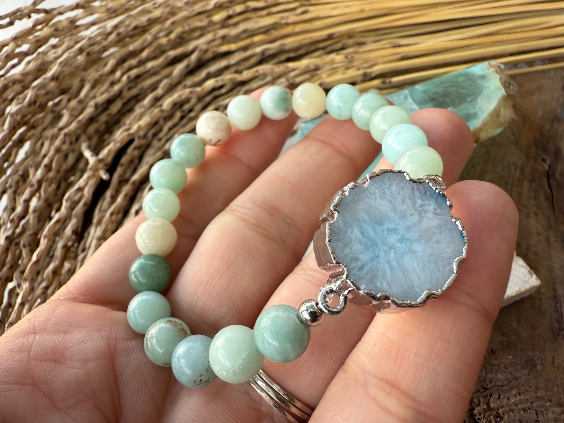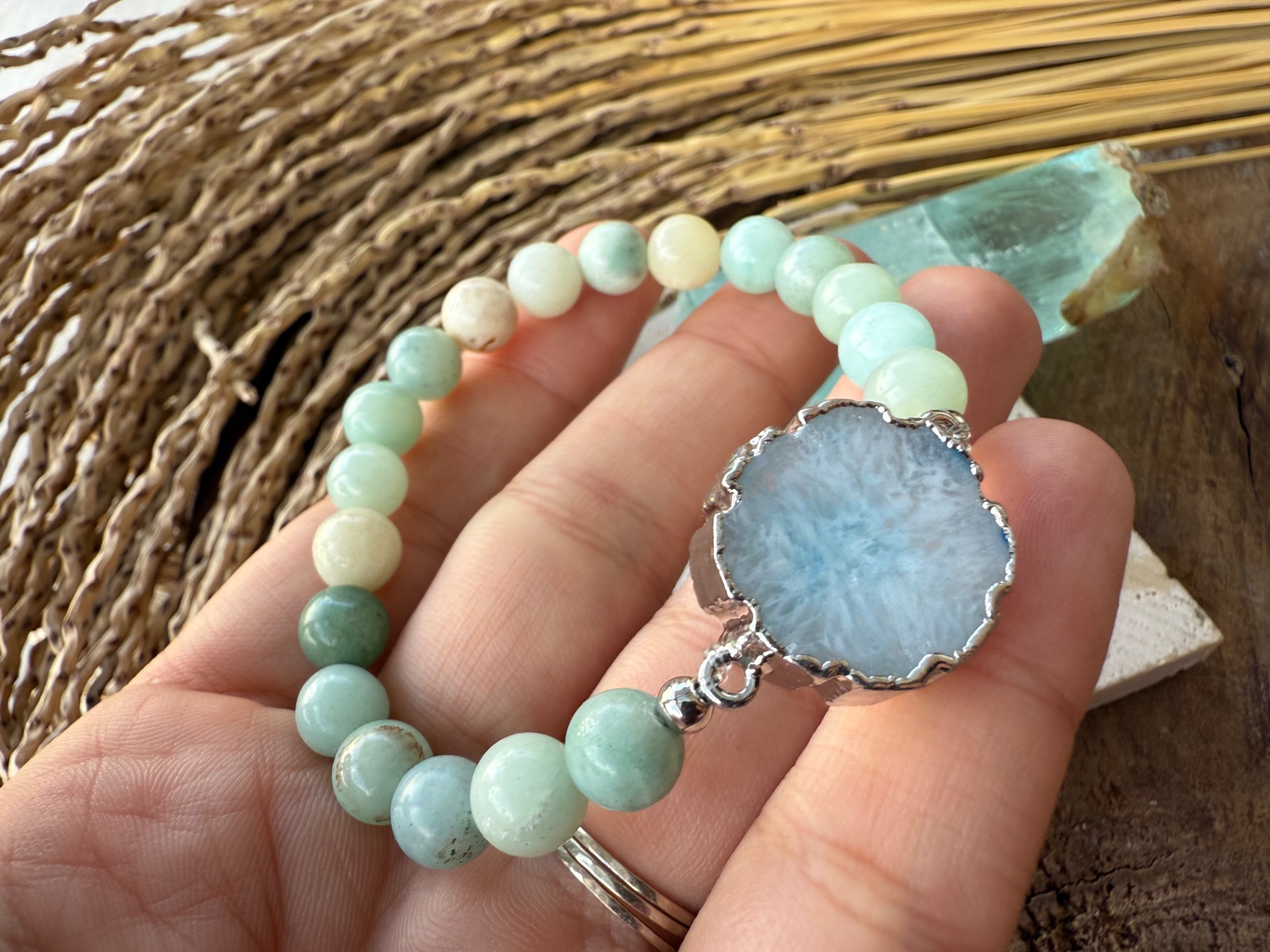 Doplnený 8mm kamienkami z minerálu amazonit multicolor.