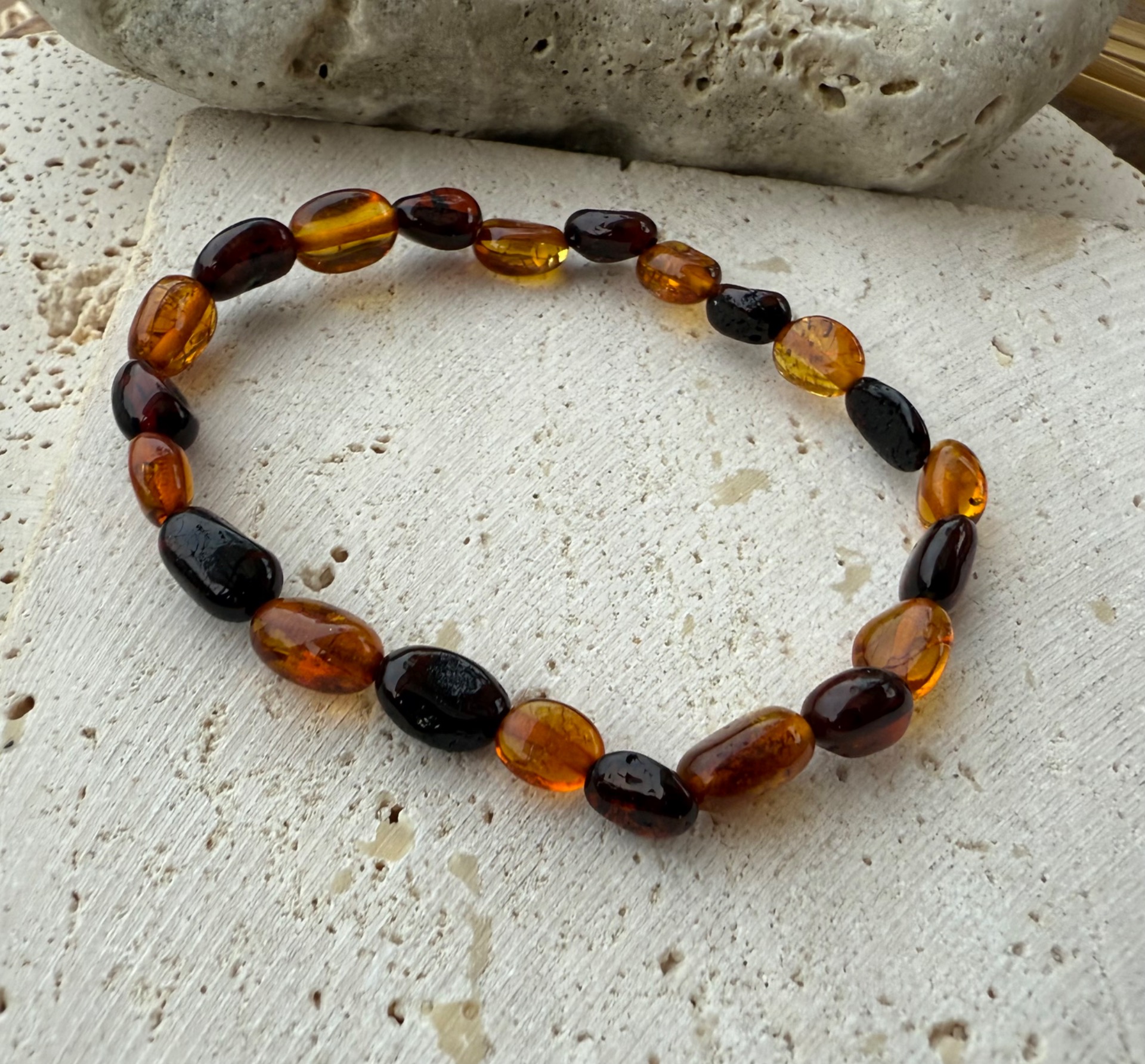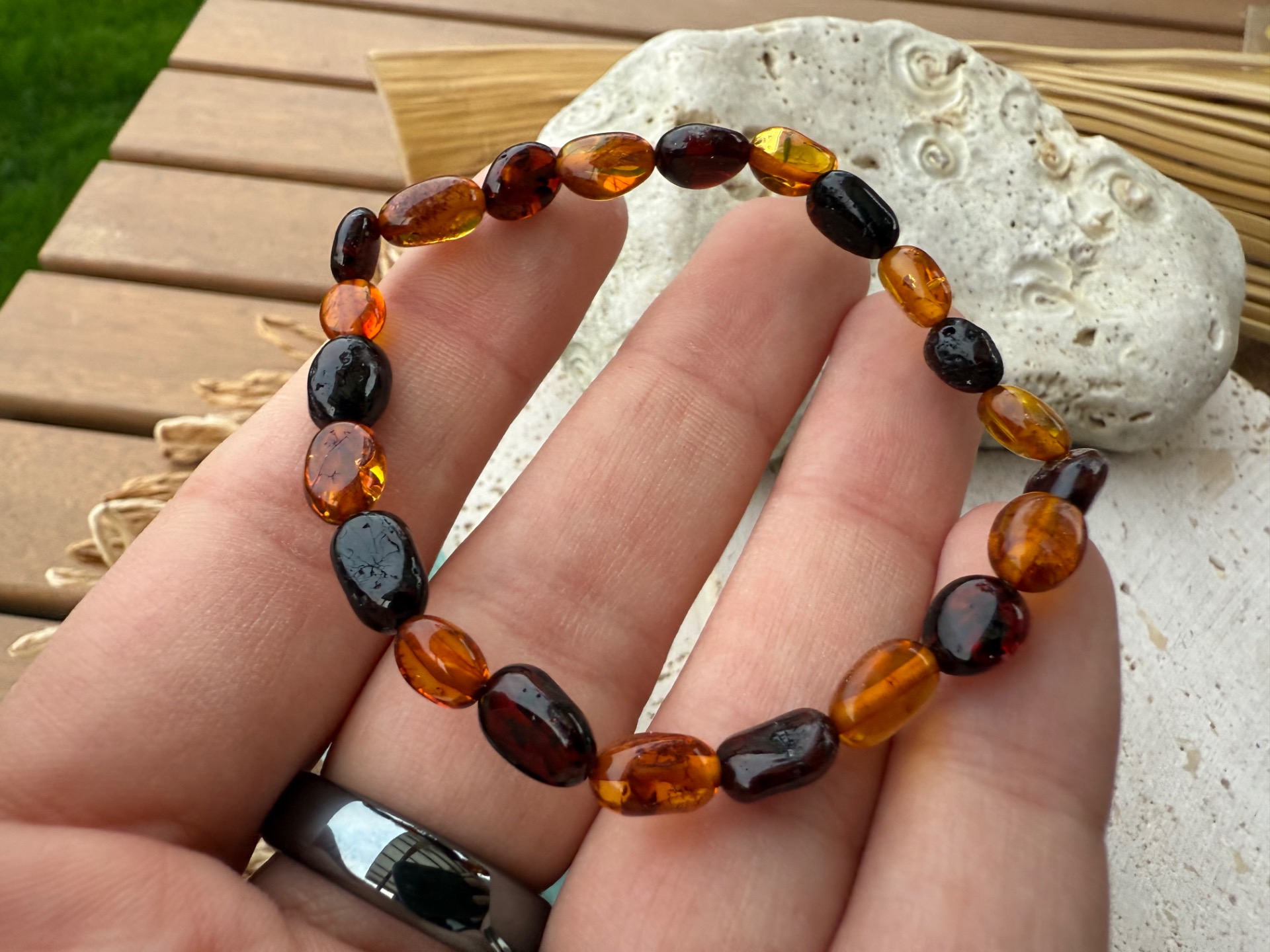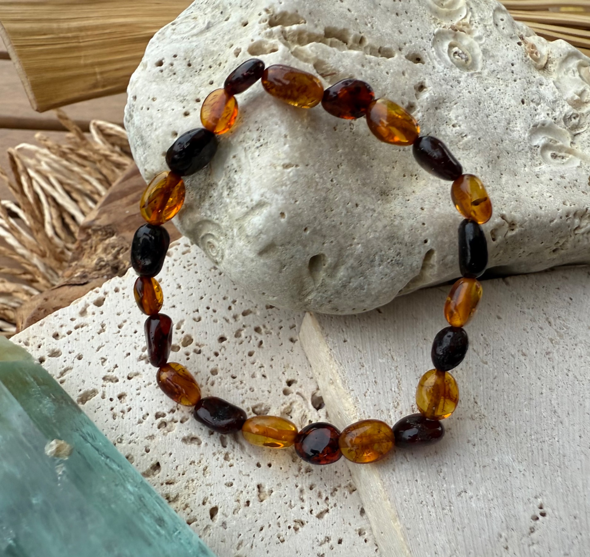 • najznámejší je svojím priaznivým pôsobením na bolesť zubov – detský jantárový náramok pomáha pri prerezávaní prvých zúbkov. Niektoré mamičky dávajú deťom aj prívesok z jantáru, slúžiaci ako hryzátko