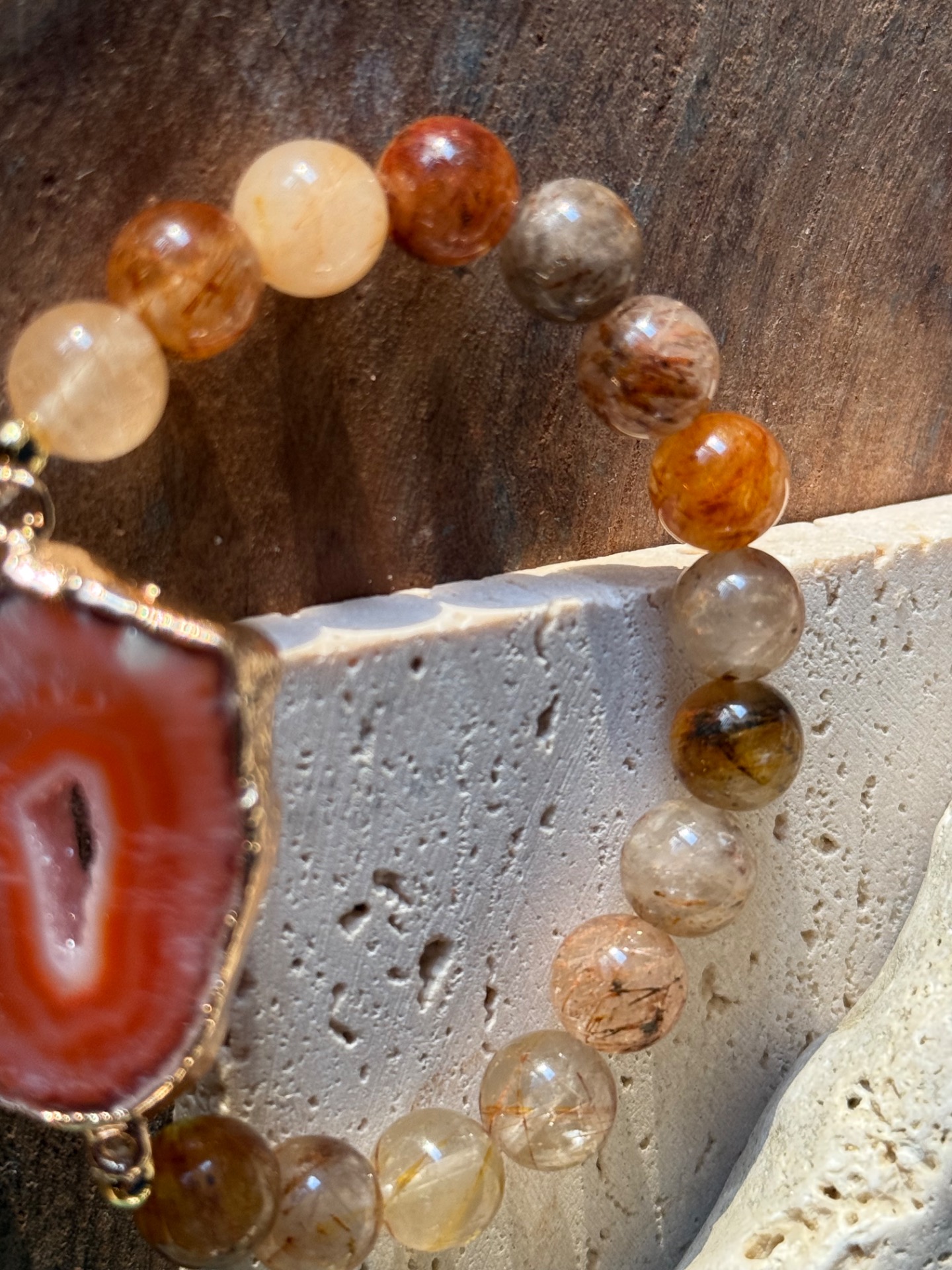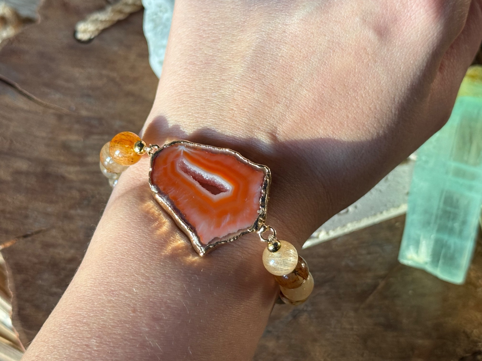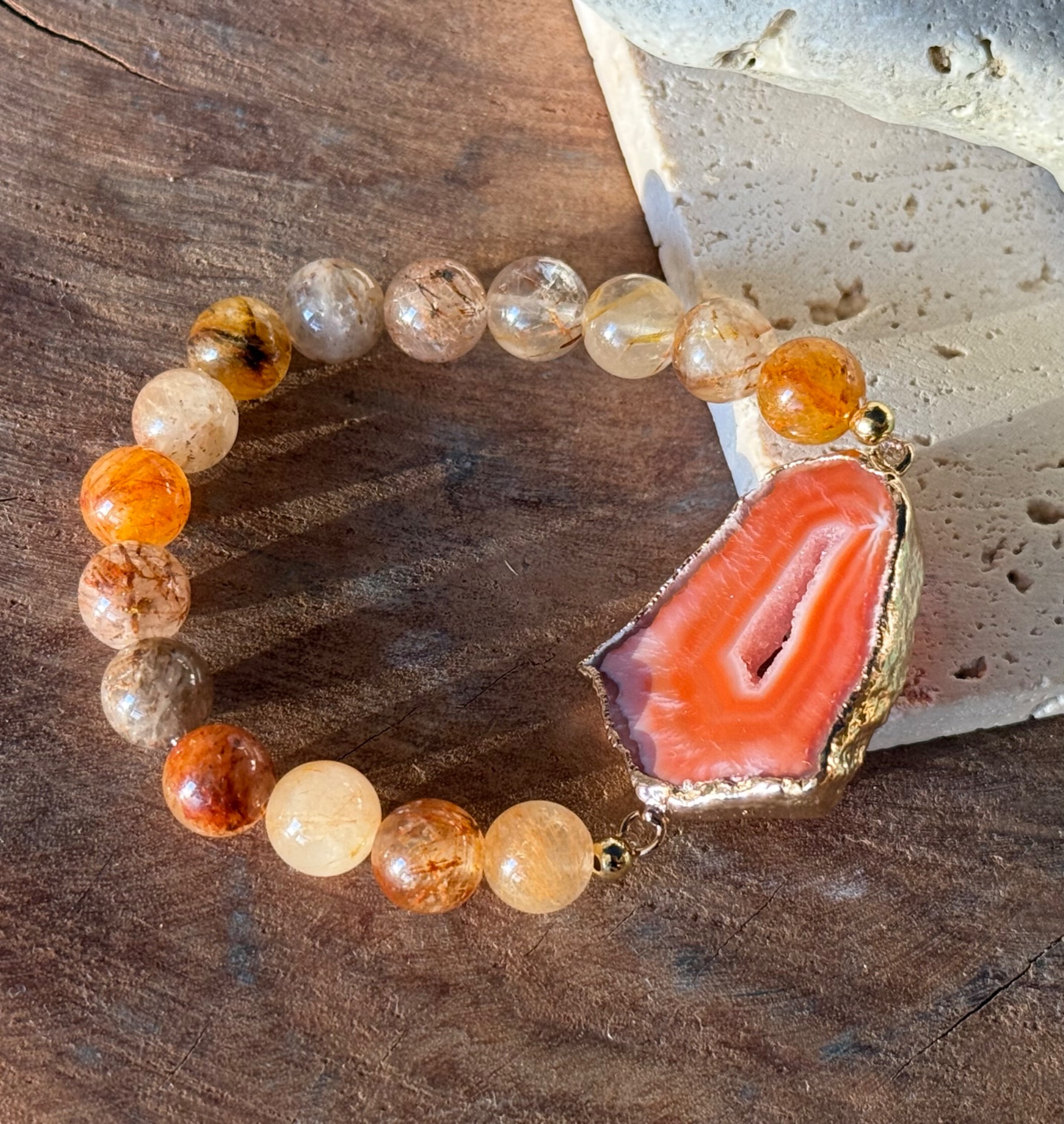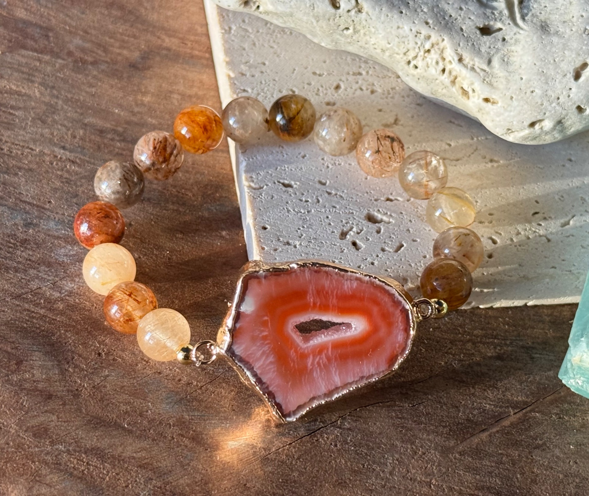 Náramok achátová drúza & rutilový krištáľ | Hlboké liečenie