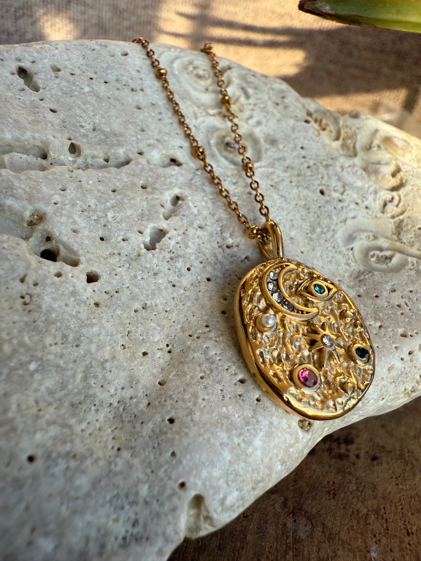 Medailón je krásnym darčekom pre každého, kto miluje mystiku, hviezdy a energiu vesmíru, alebo ako osobný talizman na podporu vlastných snov a vízií.