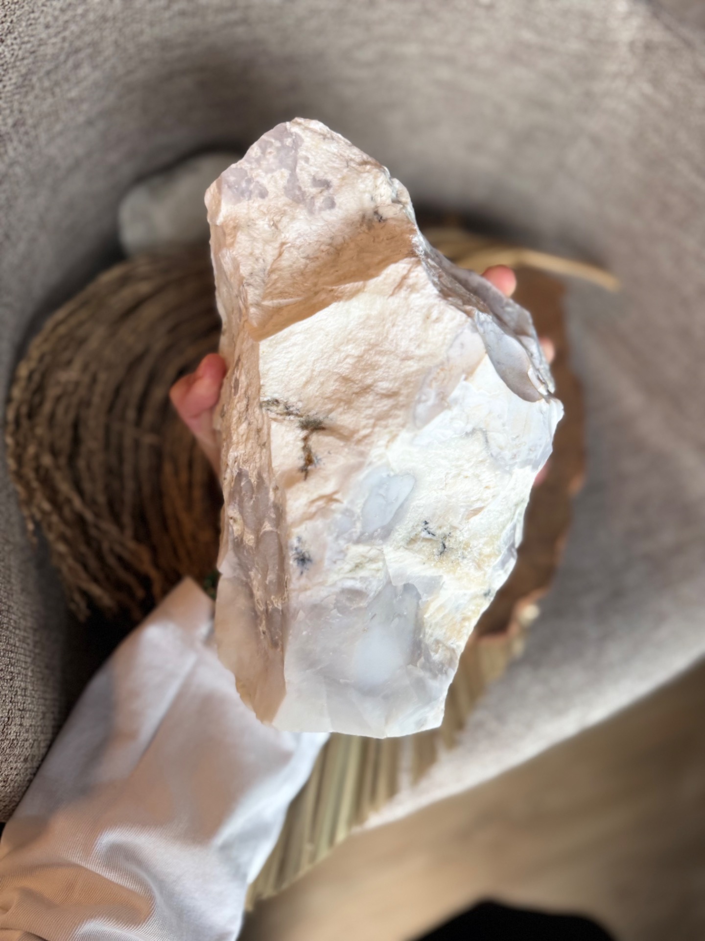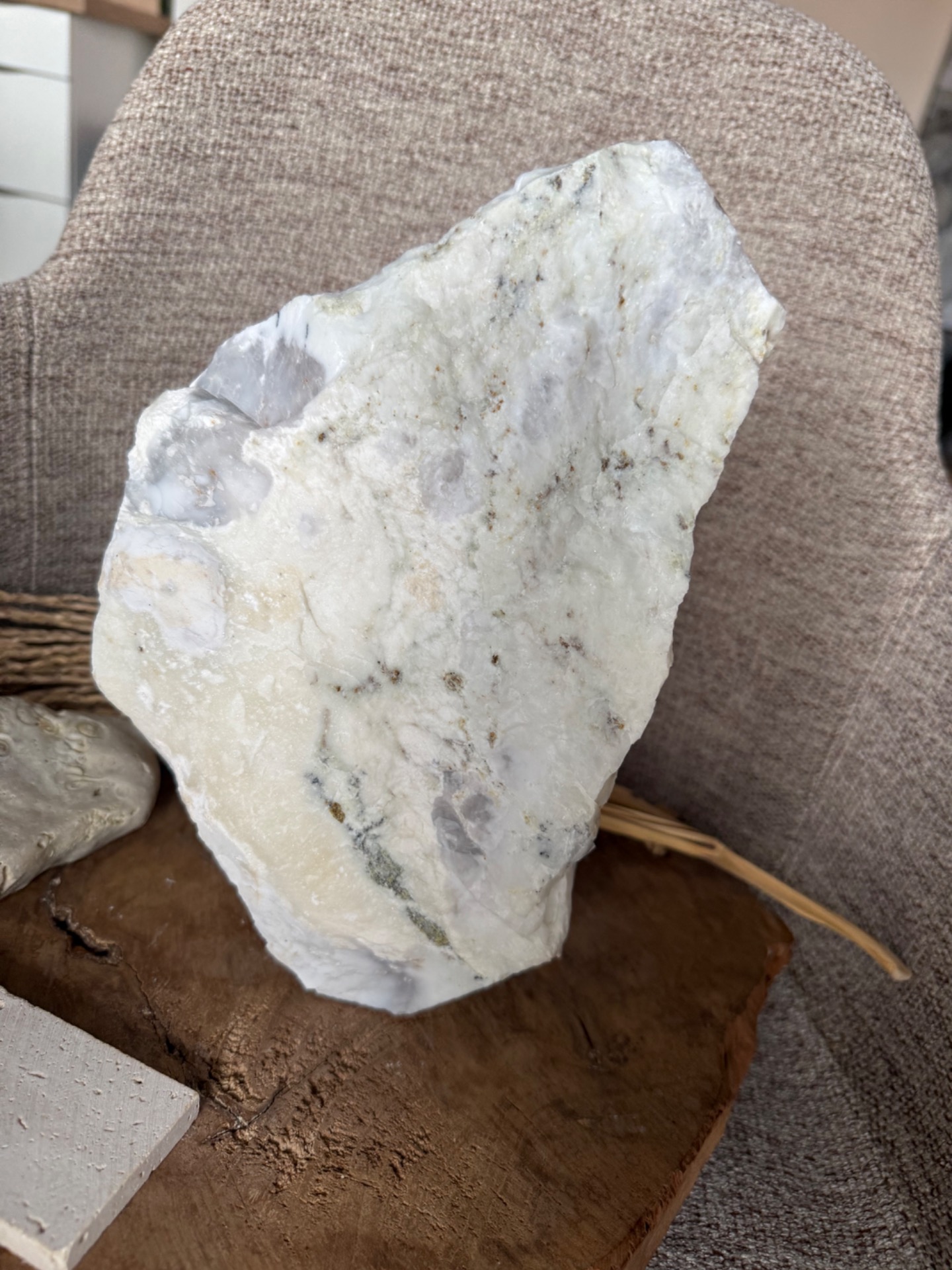 Vizualita a úprava: Kameň je ponechaný v autentickom surovom free form tvare, ktorý zdôrazňuje jeho prirodzenú krásu a silu. Každý detail je jedinečný – presne tak, ako ho vidíte na fotografiách.