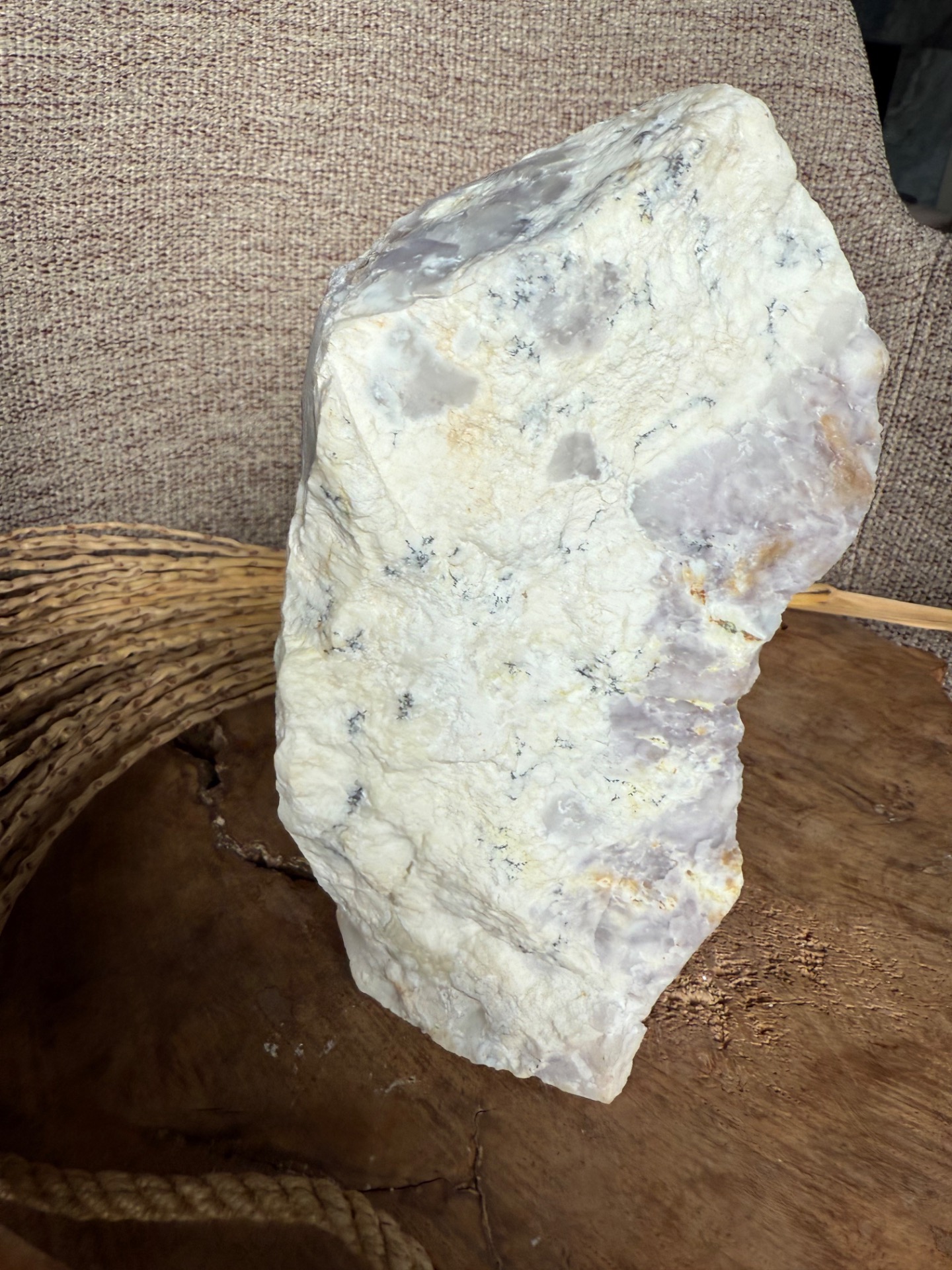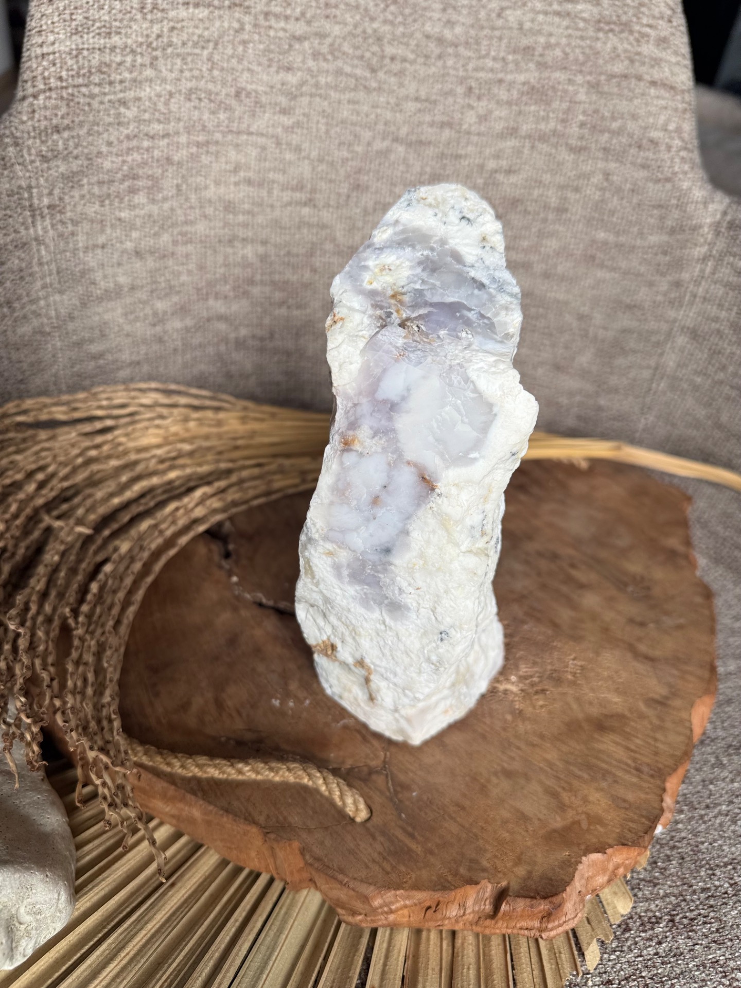 Objavte jemnú galaktickú energiu s týmto surovým merlinitom free form, ktorý nesie v sebe unikátne bledo fialové časti a názov Andromeda Code. Zachováva autentickú surovú štruktúru minerálu a prináša do priestoru čistotu, jas a spirituálnu harmóniu.
