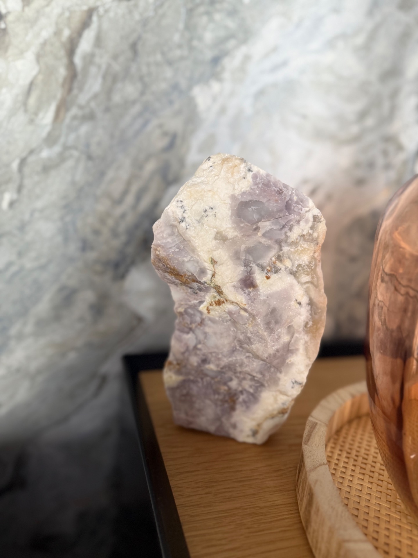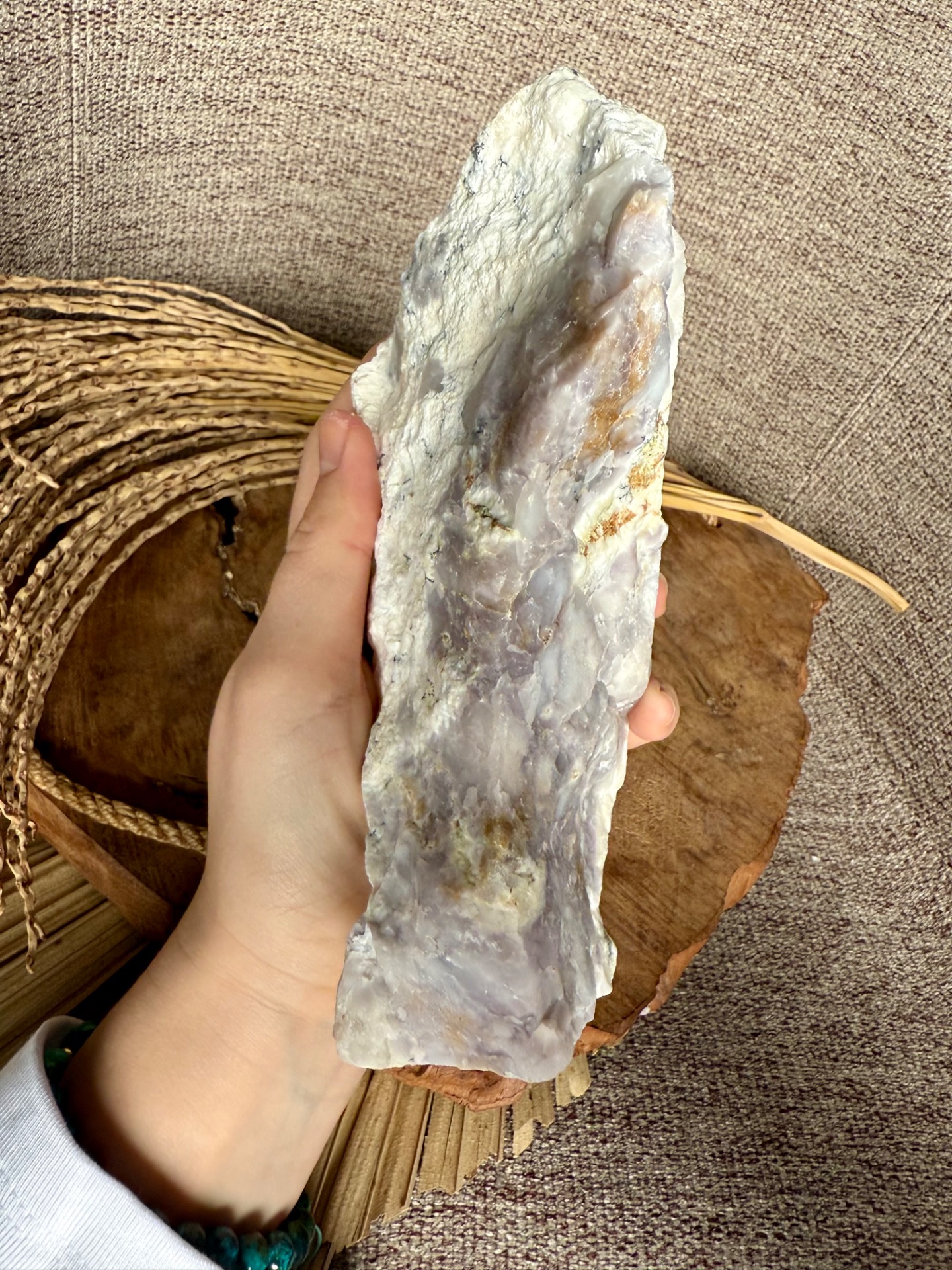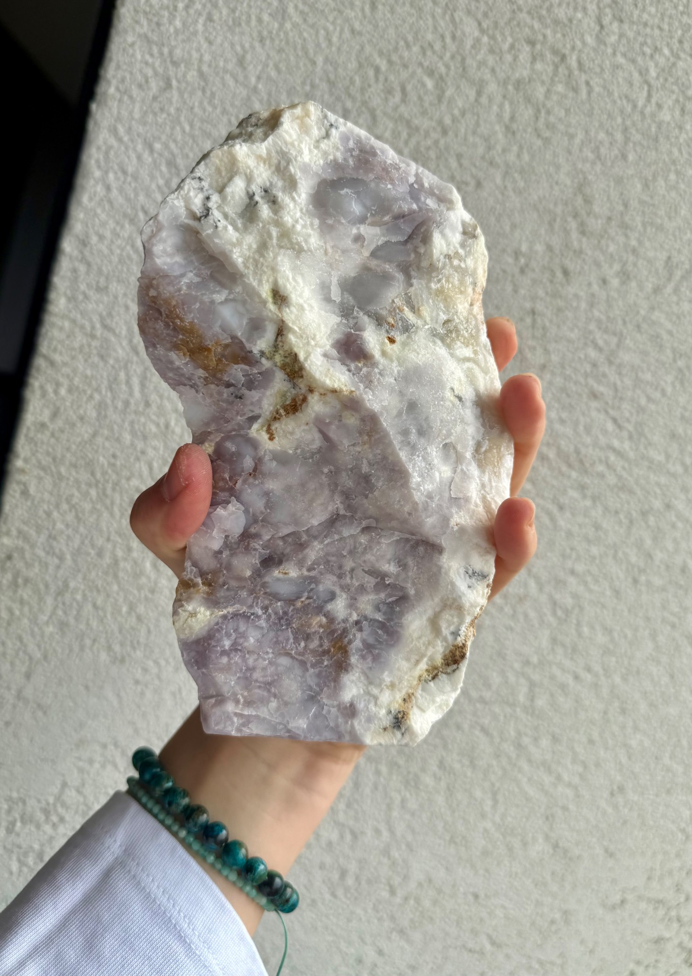 Vizualita a úprava: Kameň je ponechaný v autentickom surovom free form tvare, aby vynikla jeho prirodzená krása a jedinečné odtiene fialovej. Každý kus je originál – presne tak, ako ho vidíte na fotografiách.