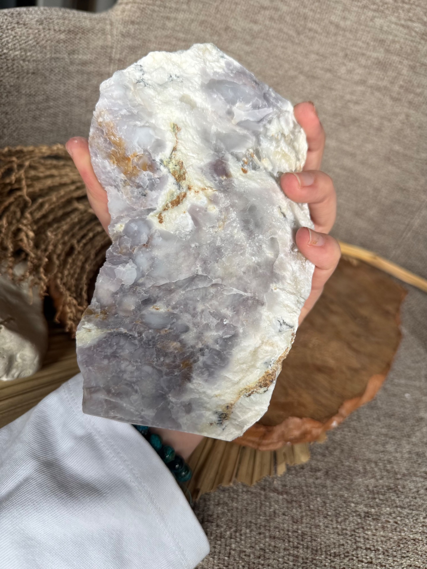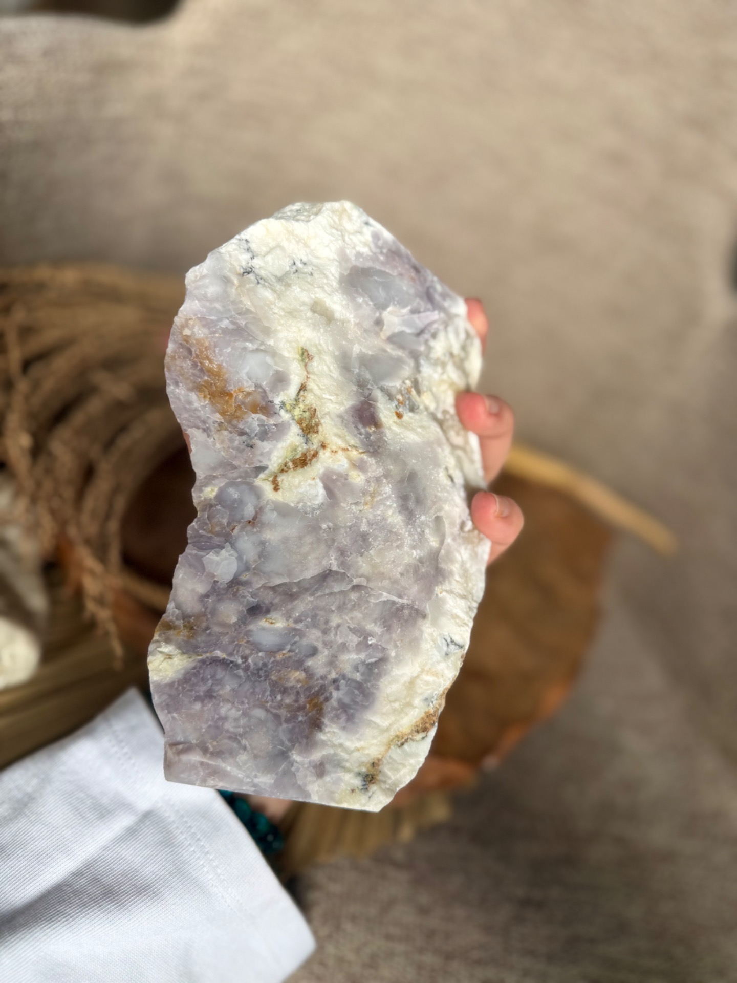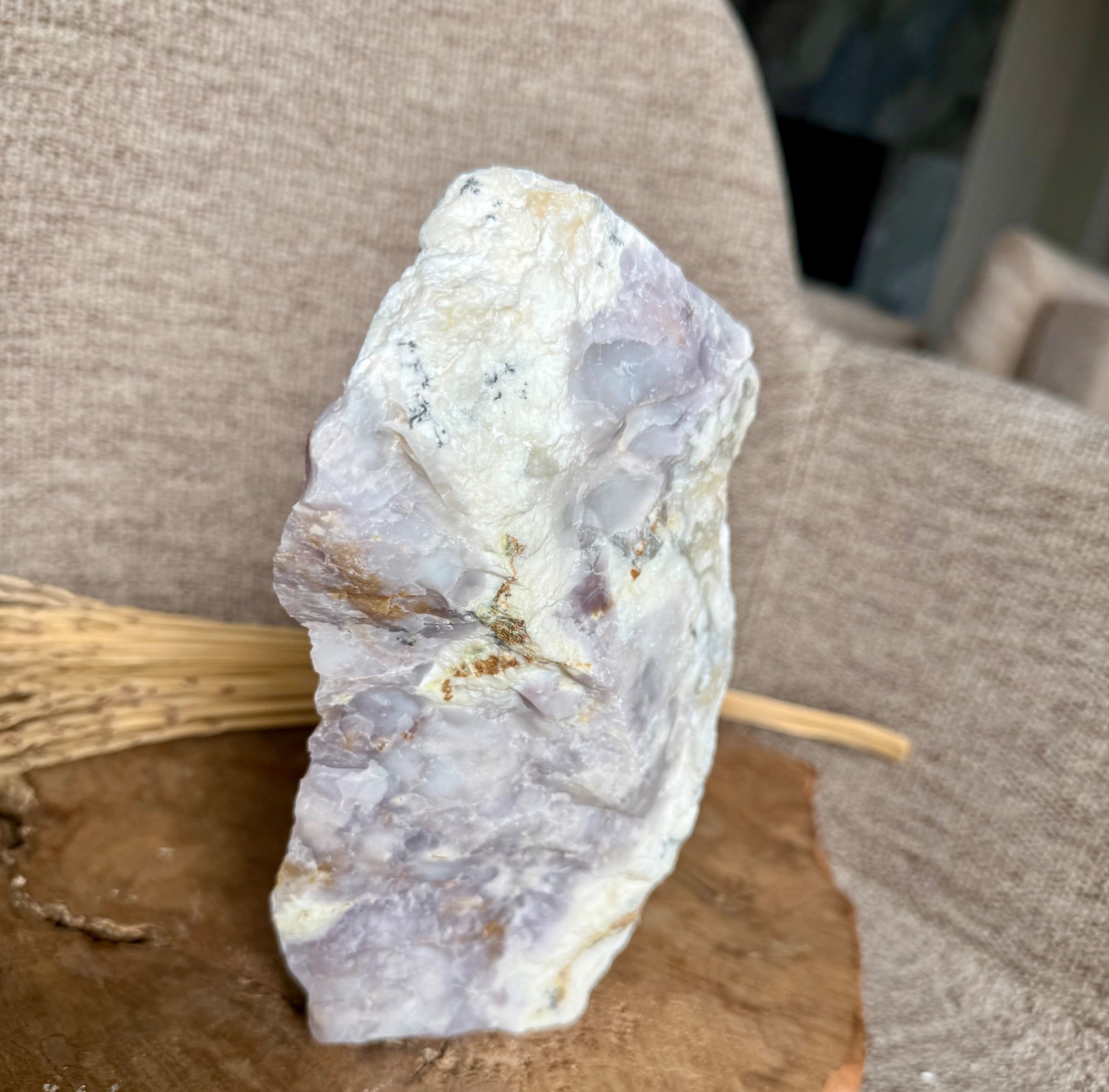 Vizualita a úprava: Kameň je ponechaný v autentickom surovom free form tvare, aby vynikla jeho prirodzená krása a jedinečné odtiene fialovej. Každý kus je originál – presne tak, ako ho vidíte na fotografiách.