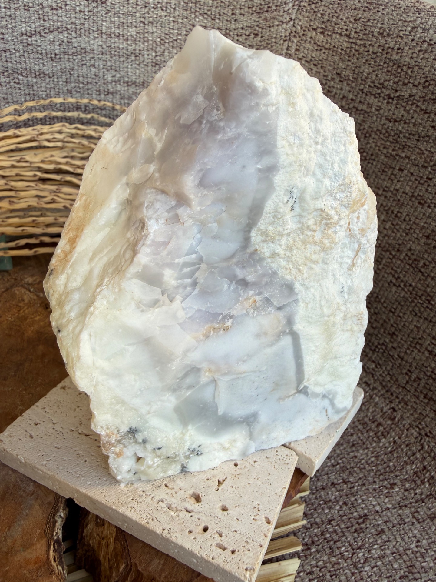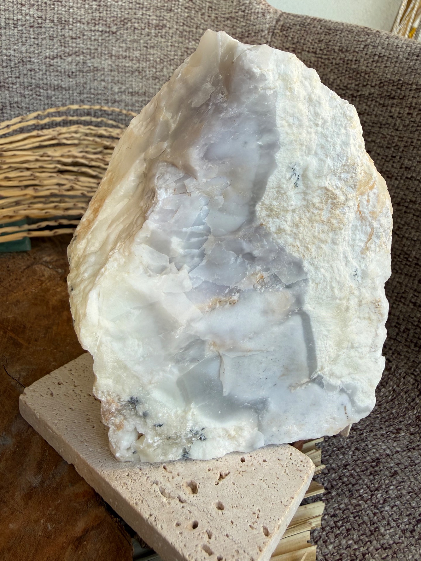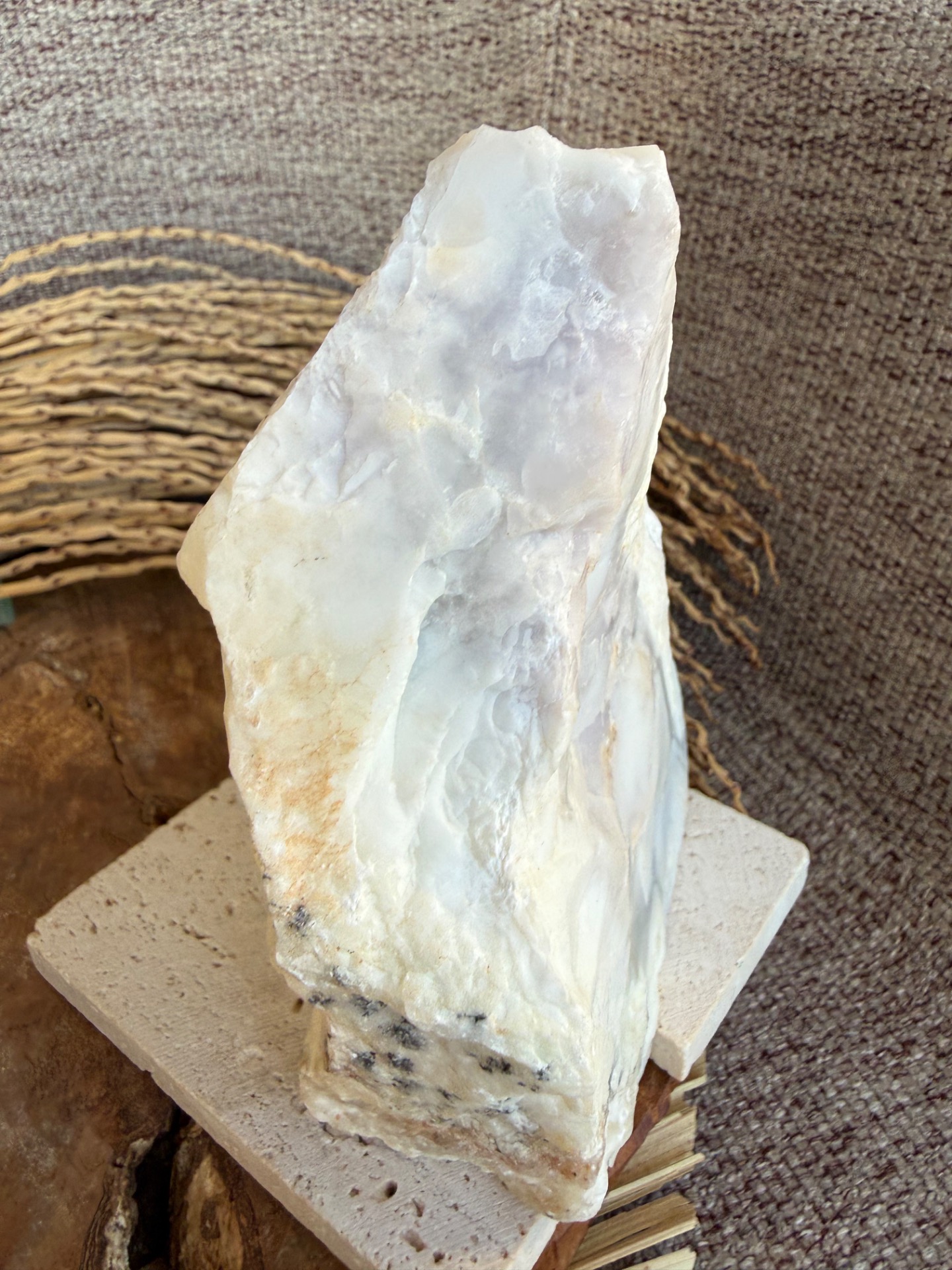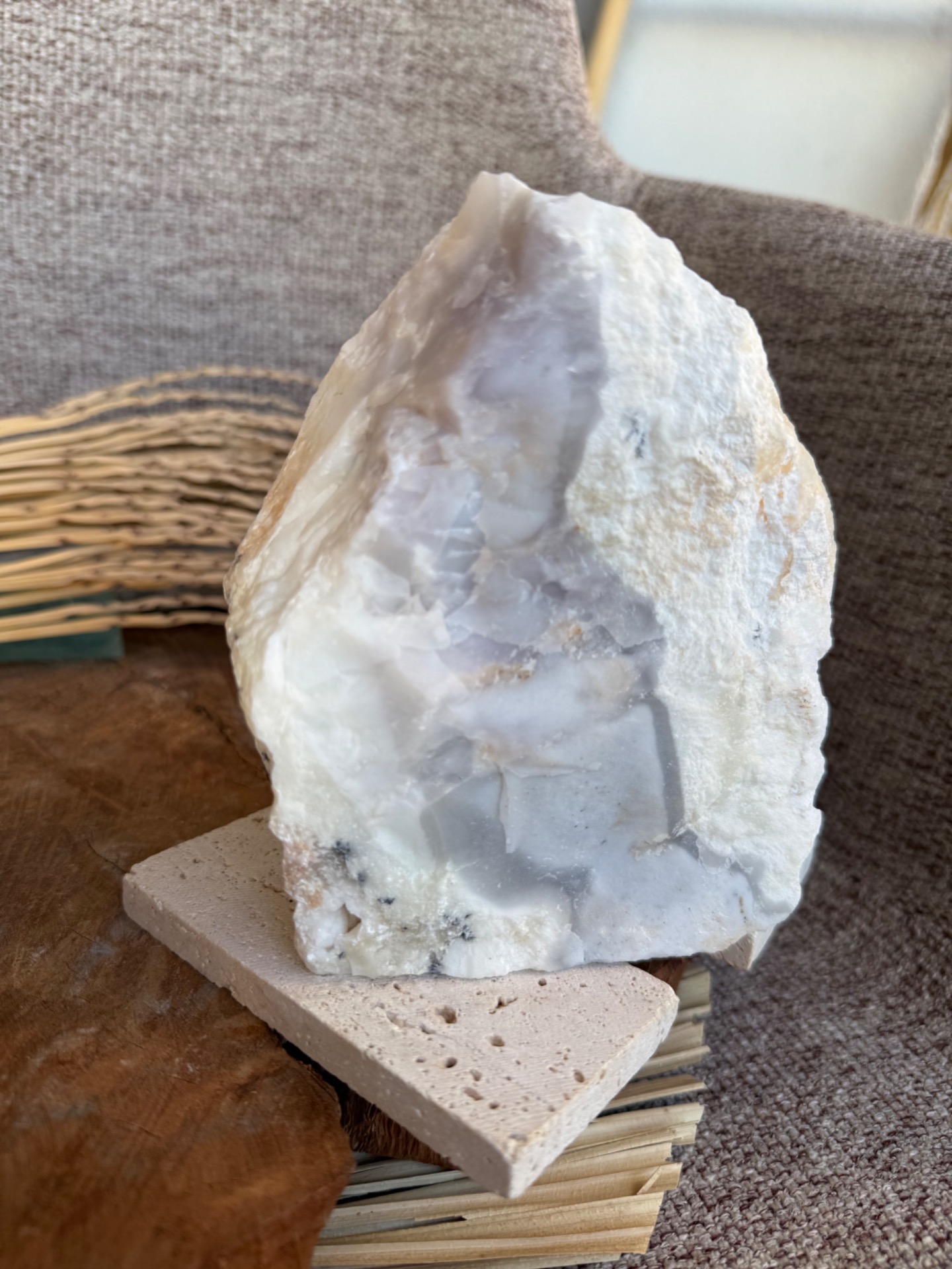 Objavte jemnú galaktickú energiu s týmto surovým merlinitom free form, ktorý nesie v sebe unikátne bledo fialové časti a názov Andromeda Code. Zachováva autentickú surovú štruktúru minerálu a prináša do priestoru čistotu, jas a spirituálnu harmóniu.