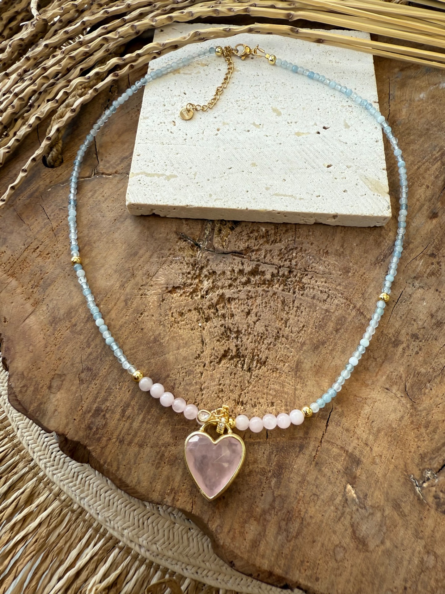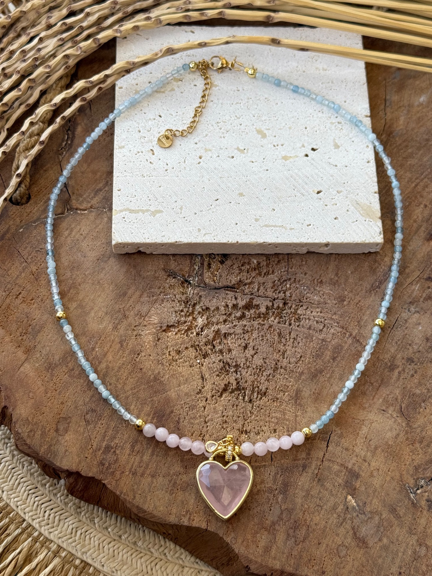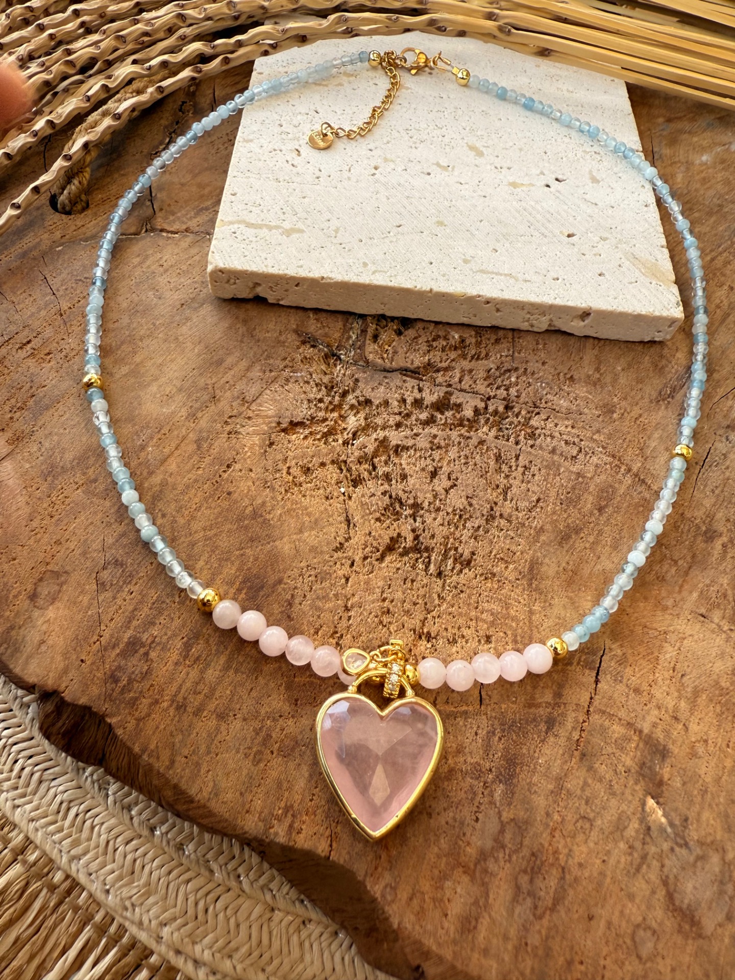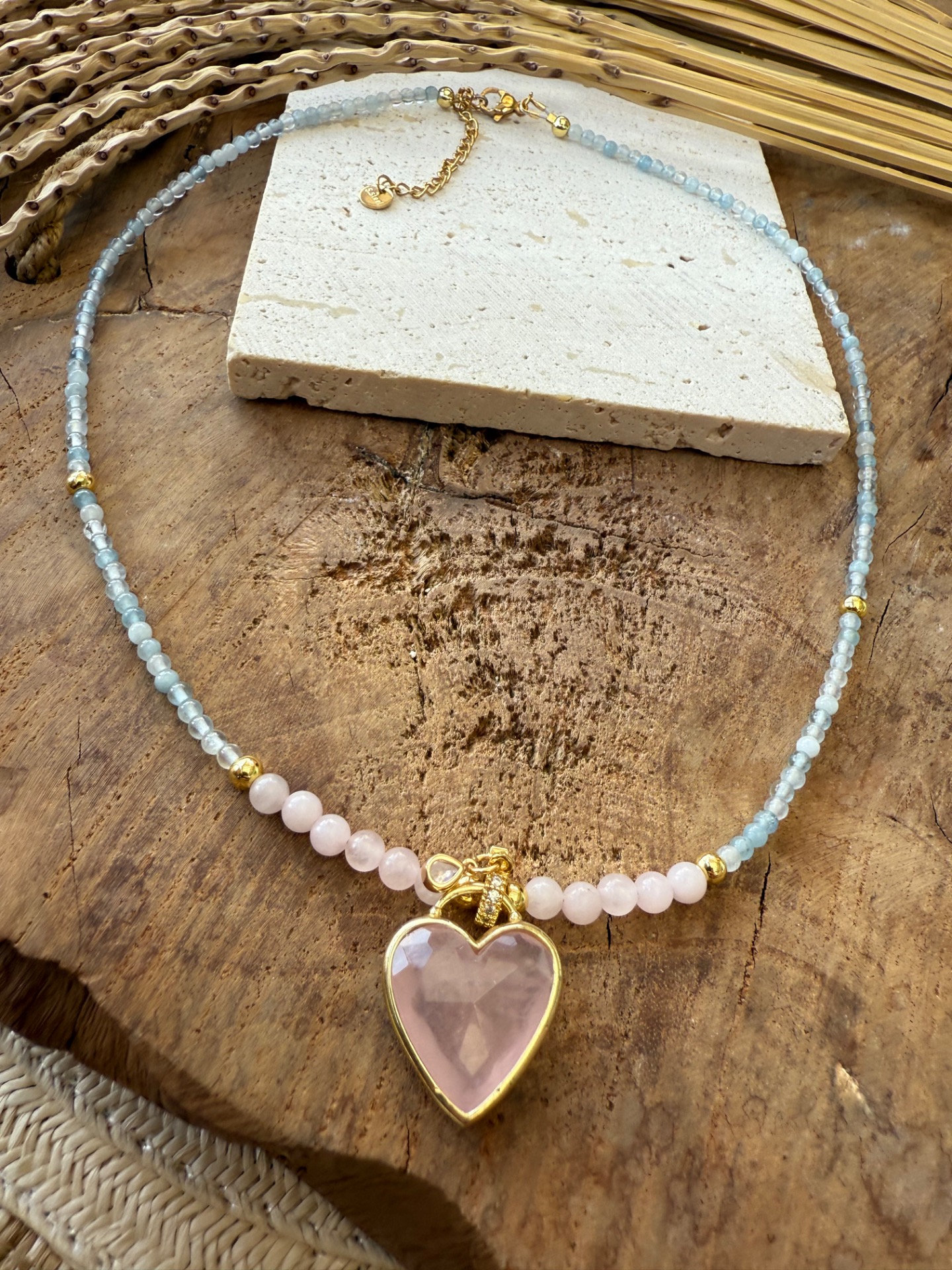 Ruženín & Akvamarín – Náhrdelník srdce oceánu