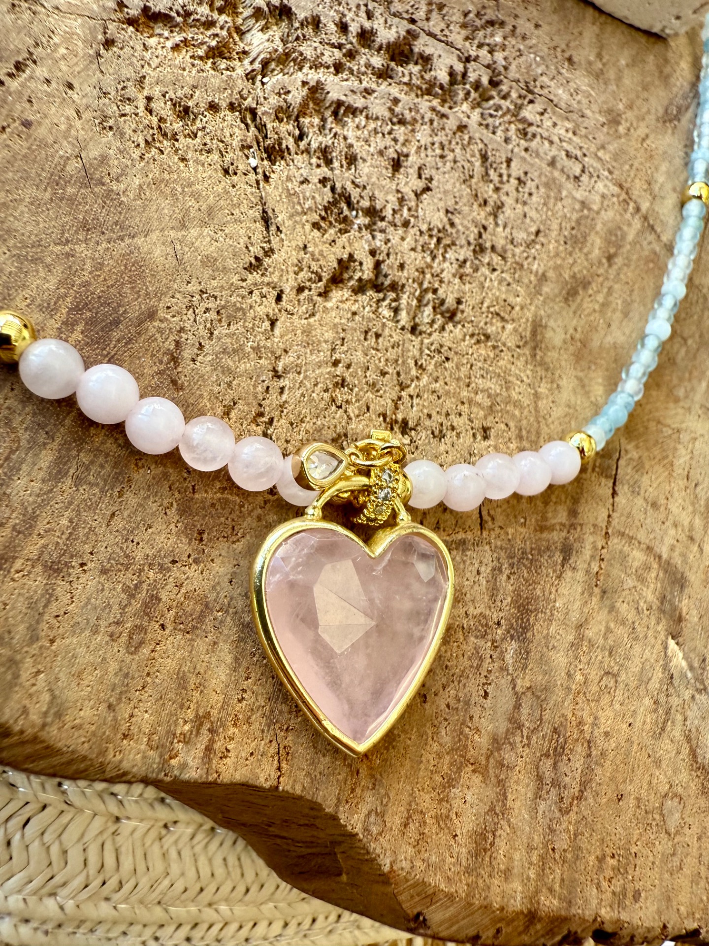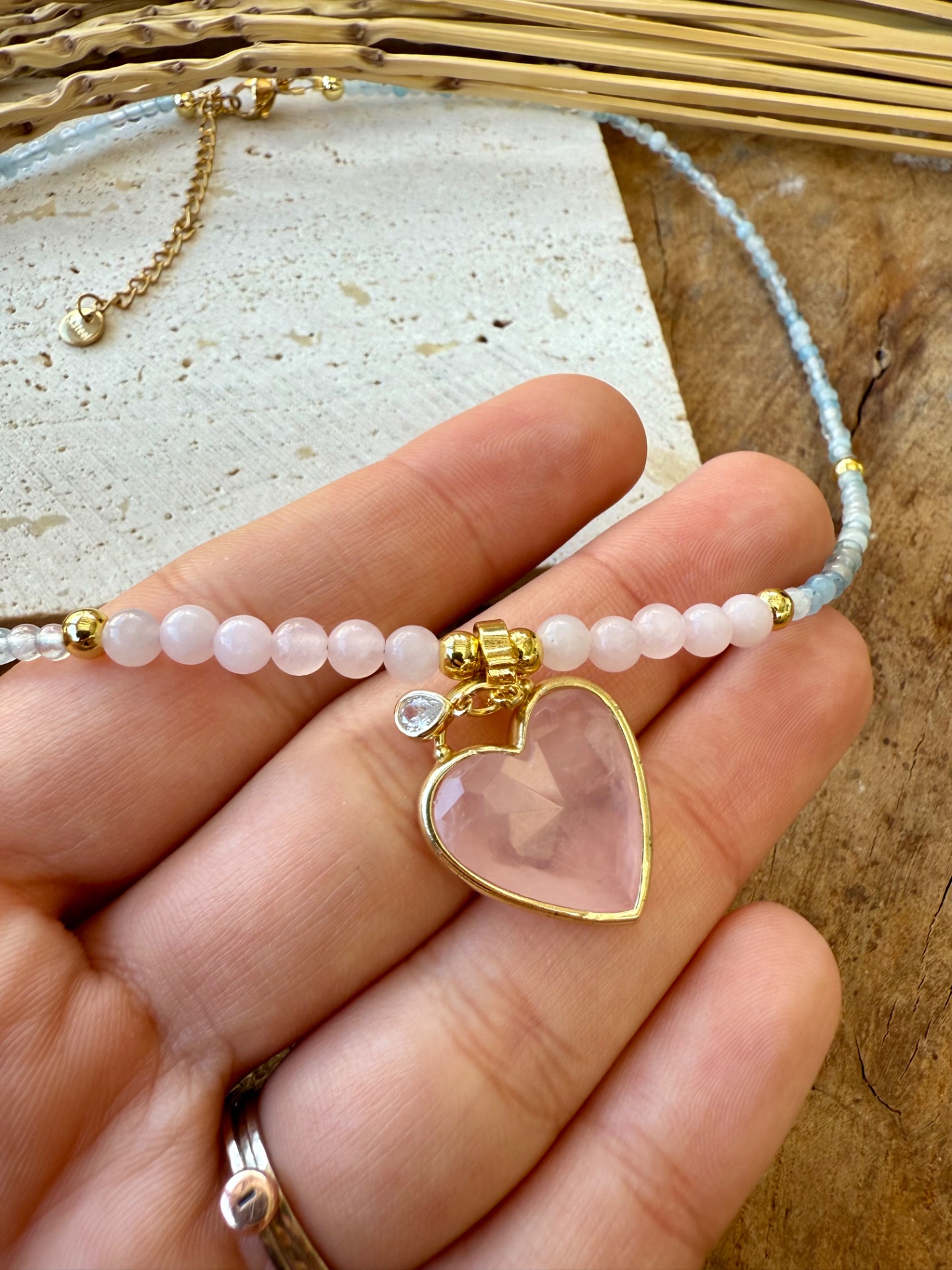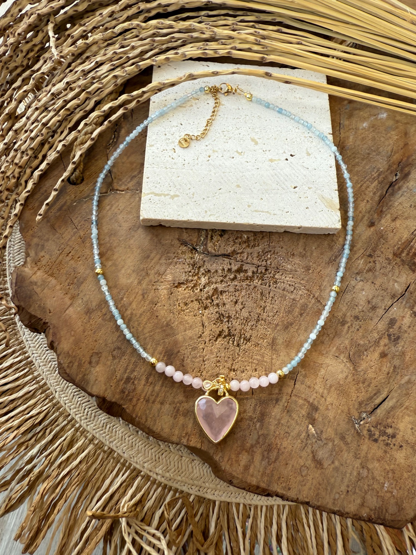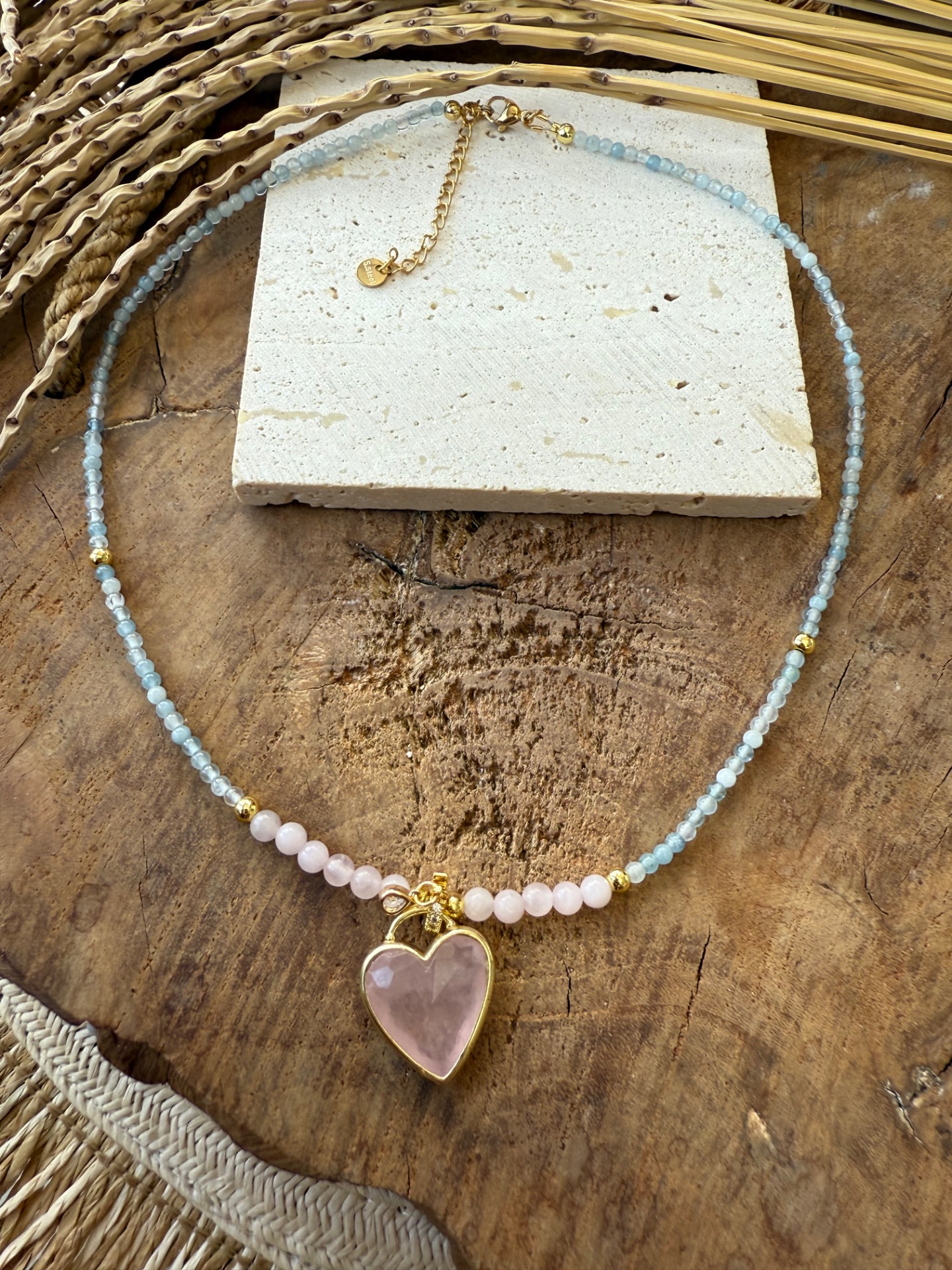Ruženín & Akvamarín – Náhrdelník srdce oceánu