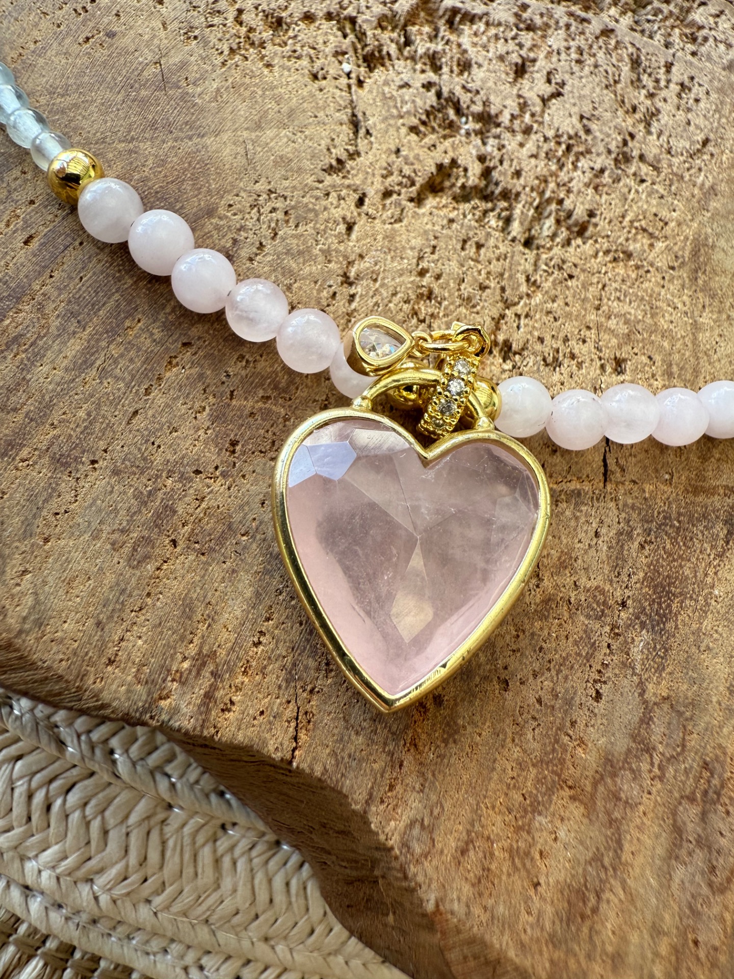 V strede sa nachádza srdiečko z ruženínu v zlatom okove, symbol otvoreného srdca a prijatia samej seba.