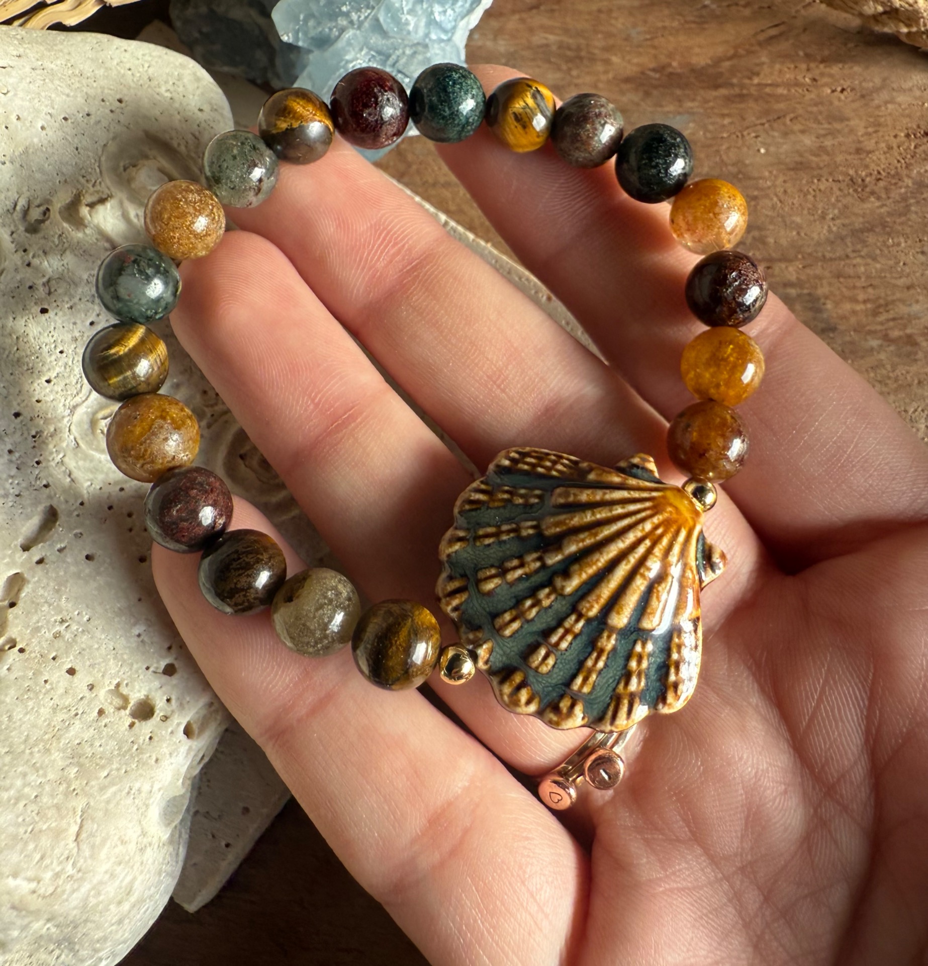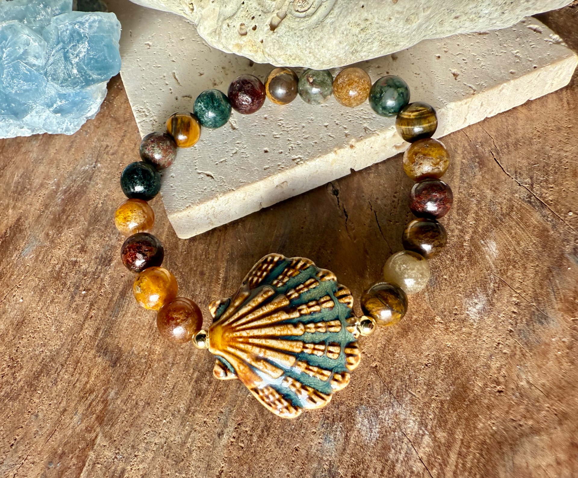 Zažite spojenie zeme a mora v jednom náramku! Tento unikátny kúsok kombinuje: