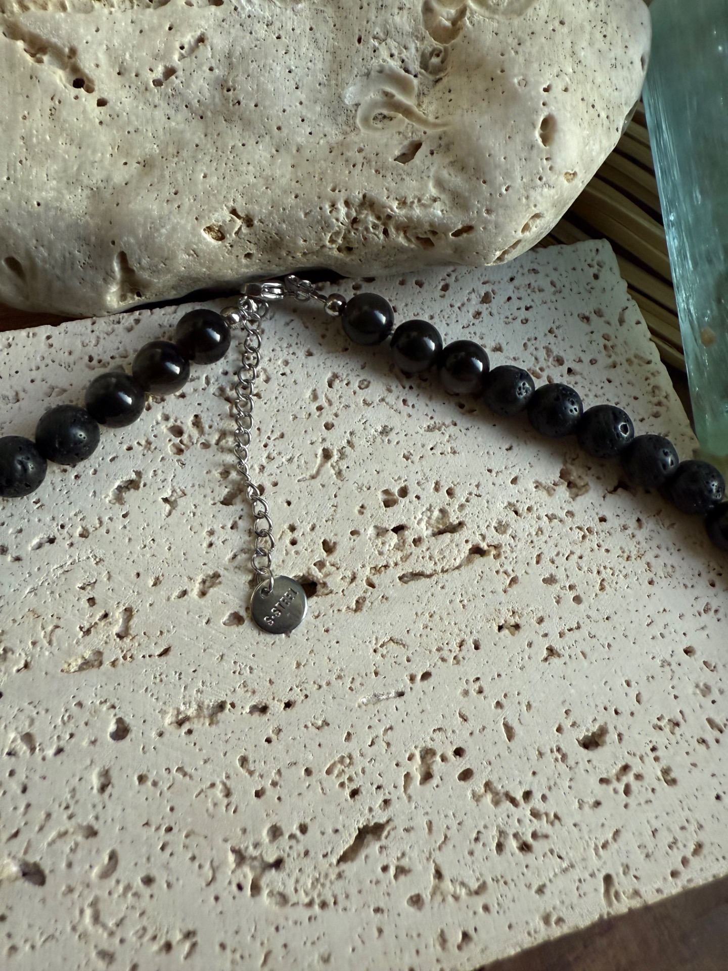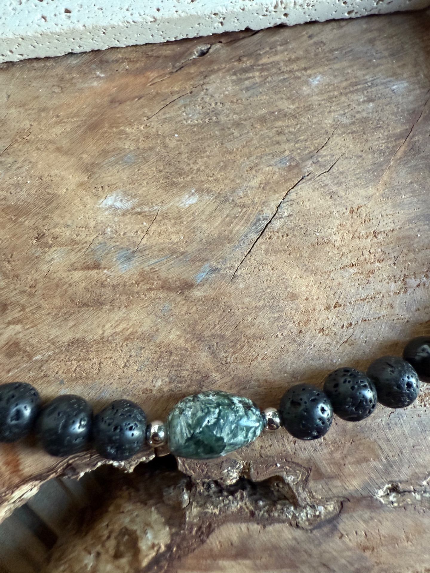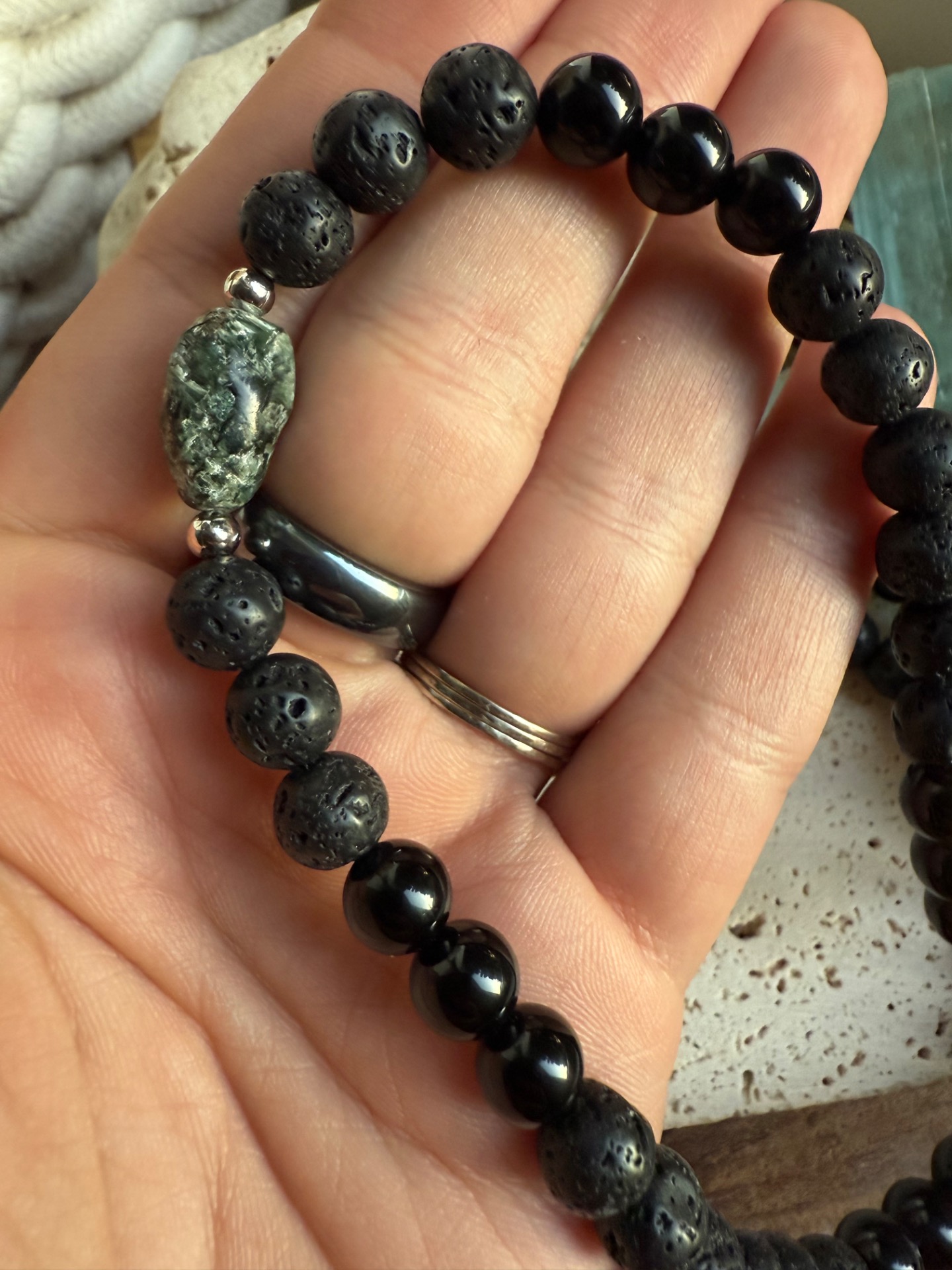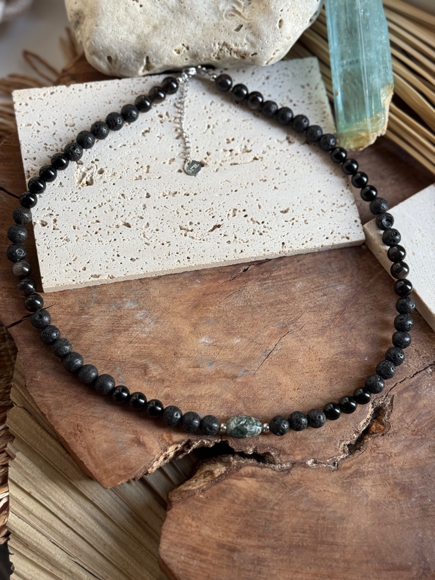 Pánsky náhrdelník zo serafinintu, lávového kameňa, obsidiánu a ónyxu (8 mm)