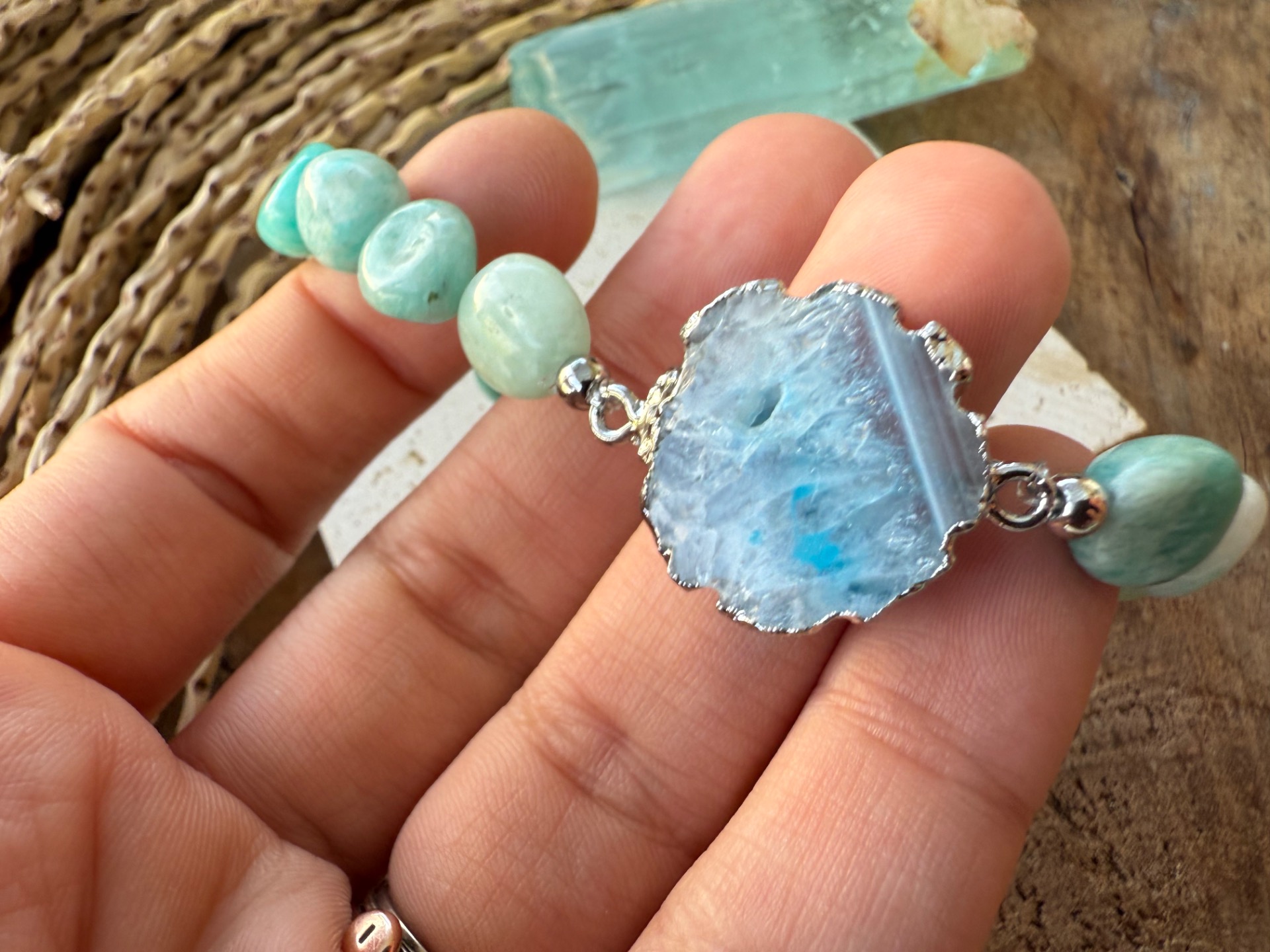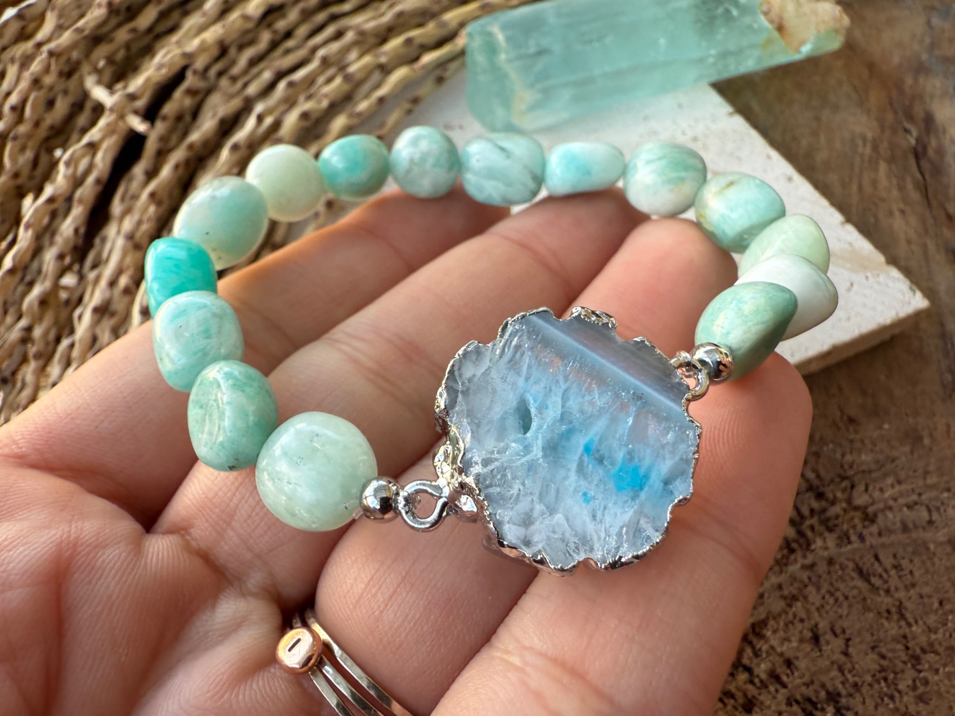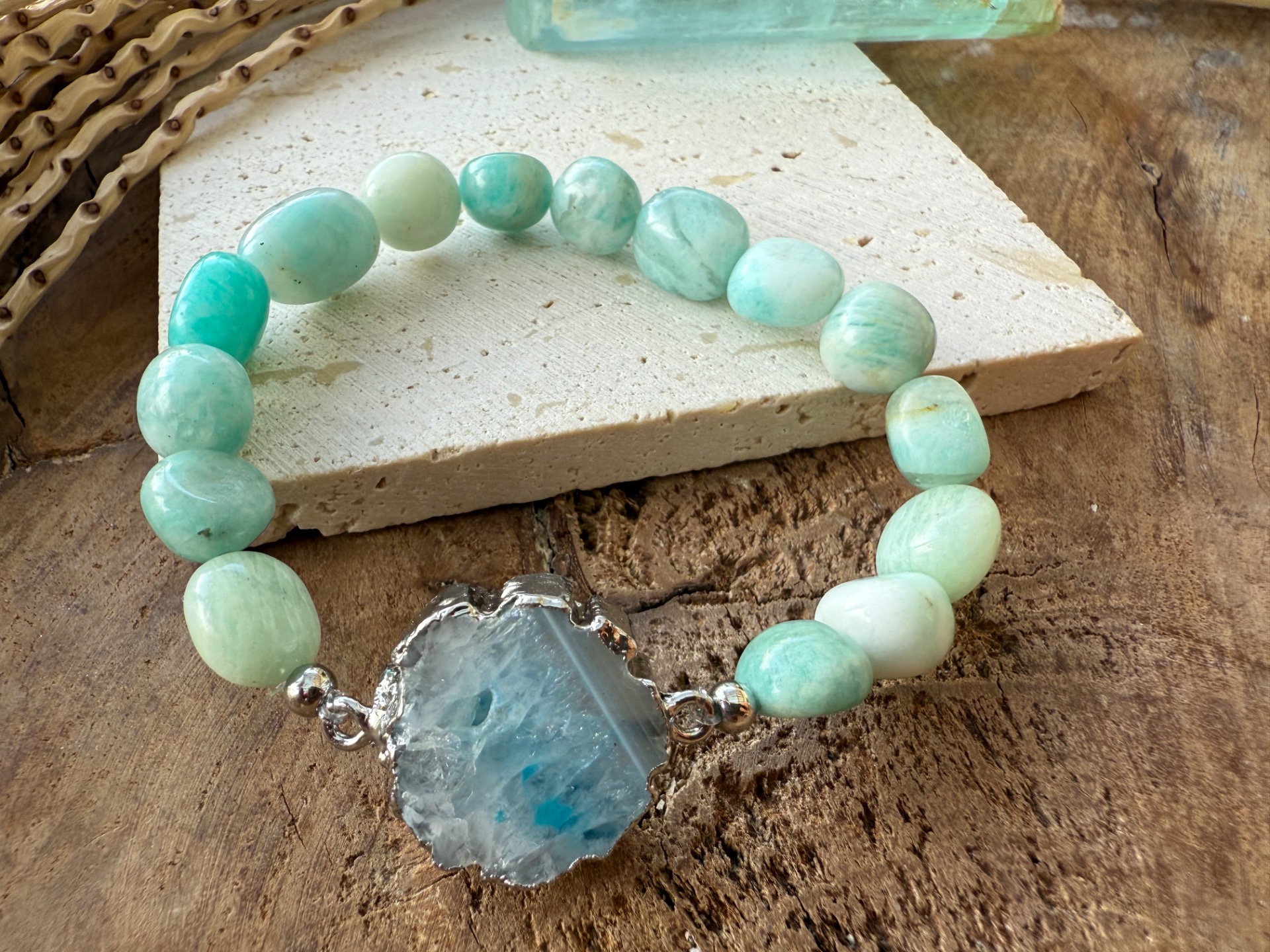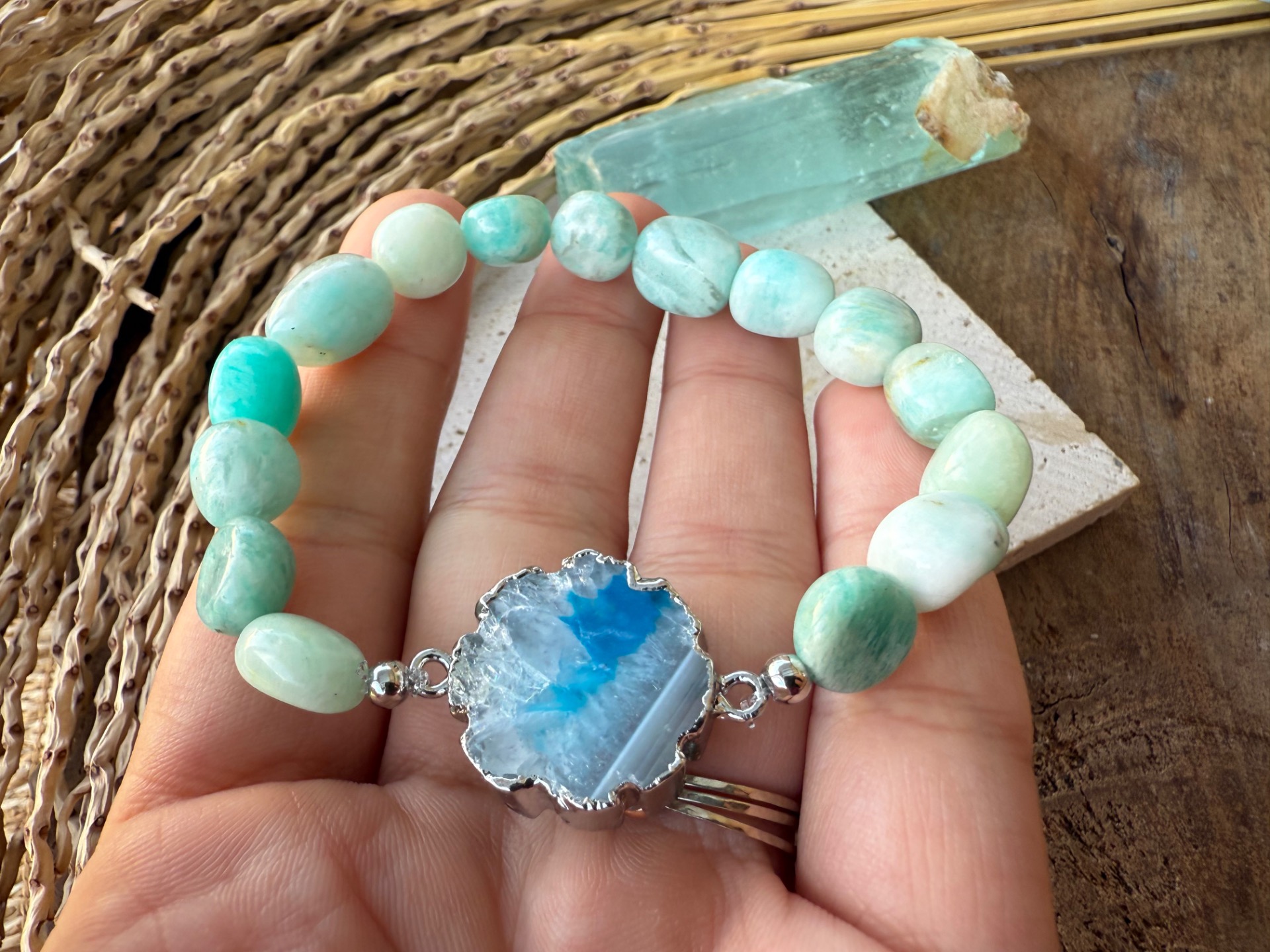 Náramok z dvojkombinácie minerálov achát drúza unikátny obojstranný vzor.