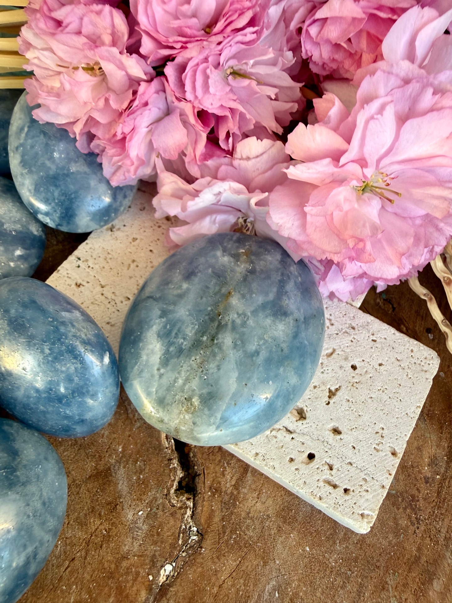 Modrý kalcit vzniká prirodzenou kryštalizáciou vápencových minerálov v sedimentárnych horninách. Jeho jemné sfarbenie je výsledkom prírodných minerálnych inklúzií, ktoré mu dodávajú typický pastelovo-modrý odtieň.