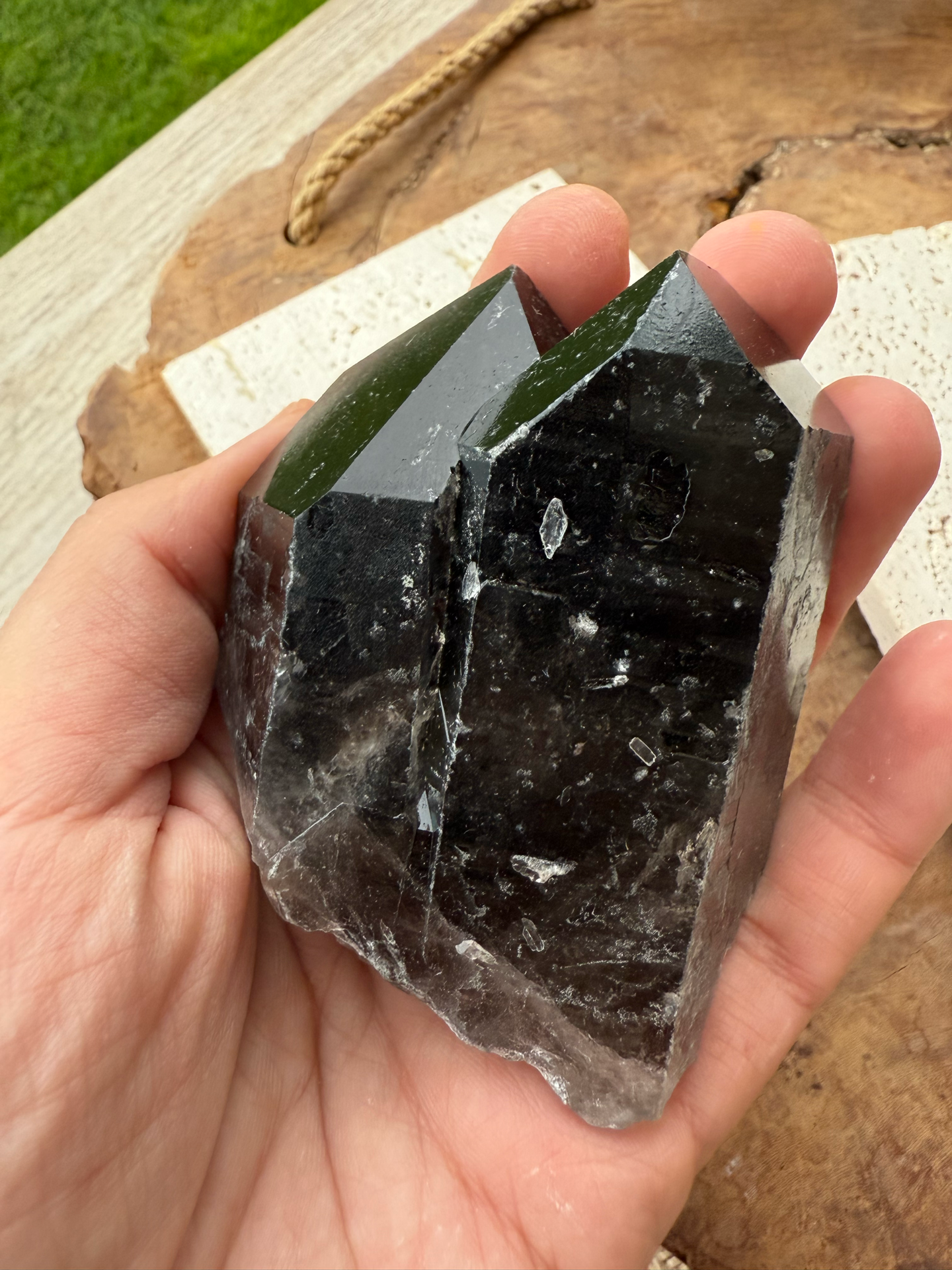 Záhneda je kameňom harmónie. Ako dymovo hnedý krištál vnáša najsilnejšiu svetelnú energiu do života, poslúži najmä hľadajúcim, ktorí sa nevedia odpútať od hmotného chápania sveta, ale na druhej strane tiež pomôže pochopiť zákonitosti materiálneho sveta. Prehlbuje našu zodpovednosť a odhaľuje problémy našej existencie či už spoločenského alebo materiálneho charakteru. Pripomína nám, že si máme zachovať dôstojnosť v rámci pozemskej púte a že o chrám duše, teda telo sa musíme dôkladne starať. V symbolickej rovine ide o spojenie neba a zeme. Záhneda je výborný kameň proti depresiám a ďalším negatívnym emóciám. Zaháňa strach a dodáva silu pri rozhodovaní. Je to uzemňujúci a ochranný kameň, pohlcuje elektrosmog, podporuje detoxikáciu, potlačuje nočné mory, zvyšuje sústredenie a pomáha pri problémoch s komunikáciou. Očisťuje myseľ pri meditácií, čistí a harmonizuje základnú prvú čakru. Záhneda sa používa proti skľúčenosti a proti depresiám. Odstraňuje nervozitu, posilňuje schopnosť koncentrácie - symbol symbiózy, pomáha dosiahnuť harmóniu, opustiť a oželieť všetko, čo nás zaťažuje.