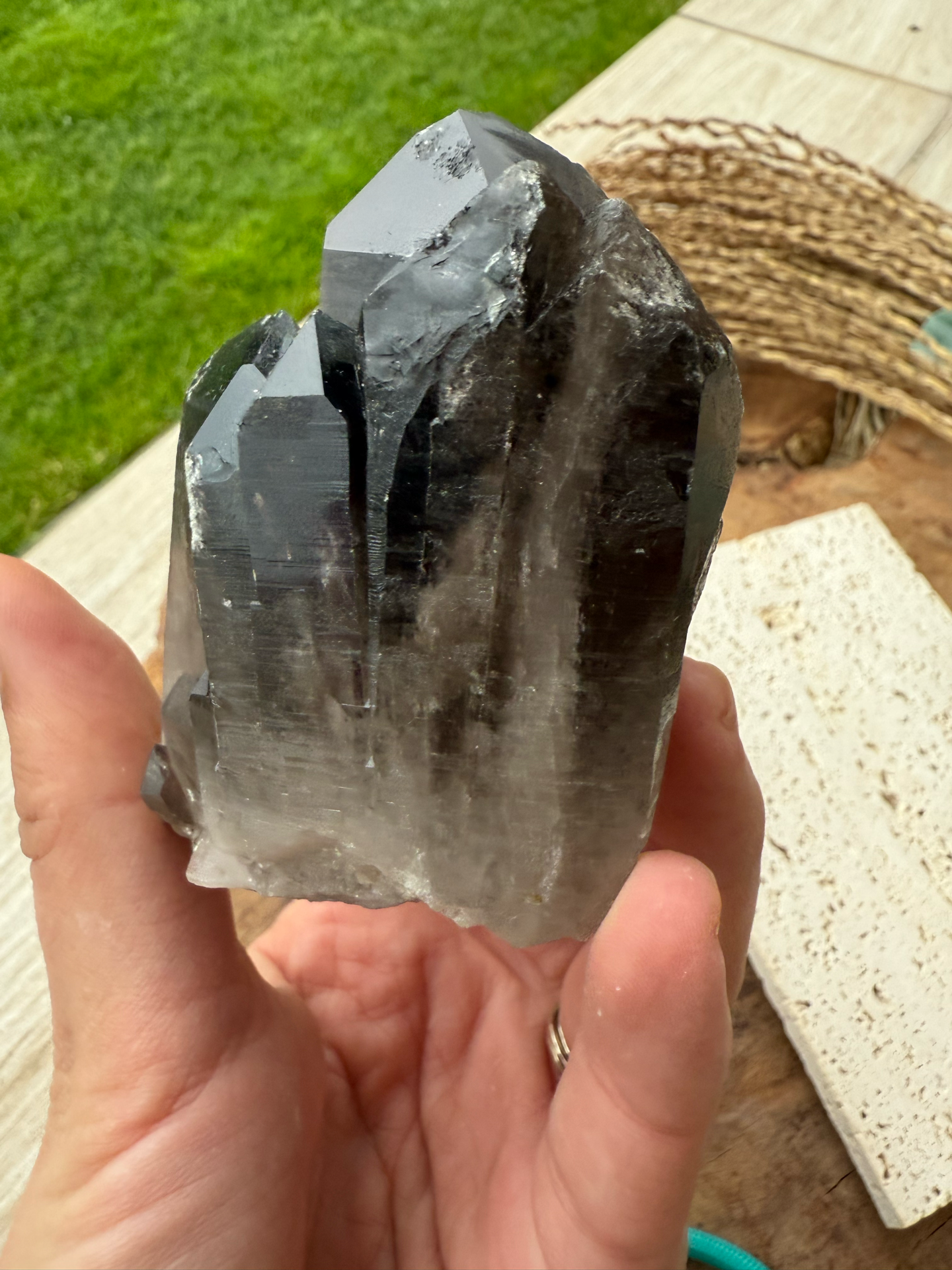 Záhneda je kameňom harmónie. Ako dymovo hnedý krištál vnáša najsilnejšiu svetelnú energiu do života, poslúži najmä hľadajúcim, ktorí sa nevedia odpútať od hmotného chápania sveta, ale na druhej strane tiež pomôže pochopiť zákonitosti materiálneho sveta. Prehlbuje našu zodpovednosť a odhaľuje problémy našej existencie či už spoločenského alebo materiálneho charakteru. Pripomína nám, že si máme zachovať dôstojnosť v rámci pozemskej púte a že o chrám duše, teda telo sa musíme dôkladne starať. V symbolickej rovine ide o spojenie neba a zeme. Záhneda je výborný kameň proti depresiám a ďalším negatívnym emóciám. Zaháňa strach a dodáva silu pri rozhodovaní. Je to uzemňujúci a ochranný kameň, pohlcuje elektrosmog, podporuje detoxikáciu, potlačuje nočné mory, zvyšuje sústredenie a pomáha pri problémoch s komunikáciou. Očisťuje myseľ pri meditácií, čistí a harmonizuje základnú prvú čakru. Záhneda sa používa proti skľúčenosti a proti depresiám. Odstraňuje nervozitu, posilňuje schopnosť koncentrácie - symbol symbiózy, pomáha dosiahnuť harmóniu, opustiť a oželieť všetko, čo nás zaťažuje.