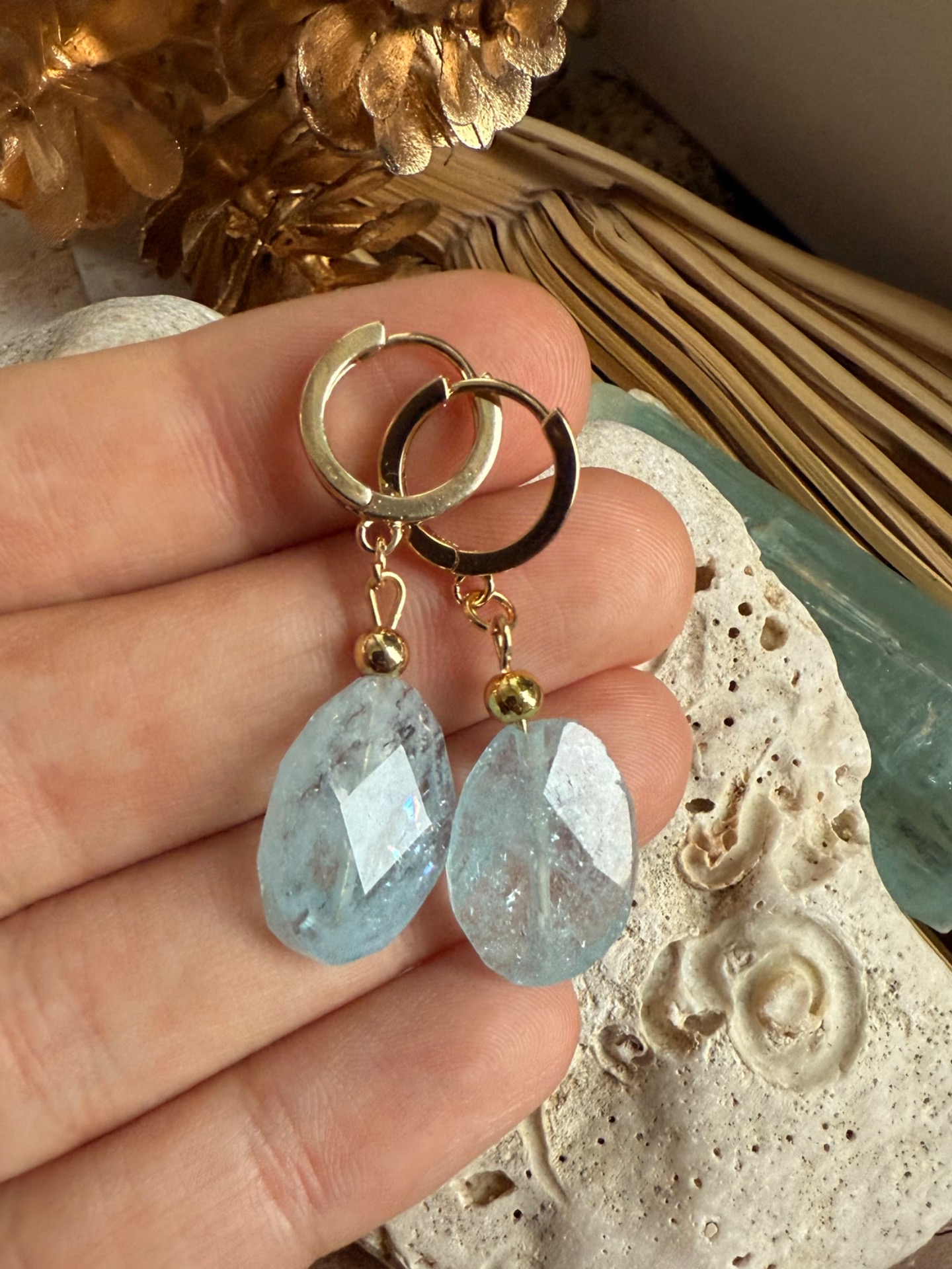 Elegantné náušnice z kvalitného akvamarínu v AA triede, ktorý svojimi jemnými modrými tónmi pripomína pokojné more a čisté nebo.