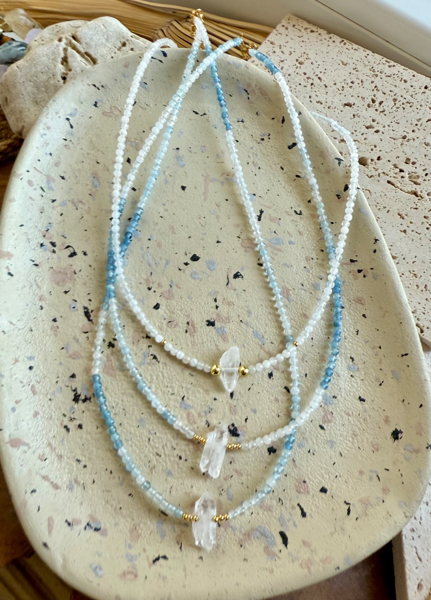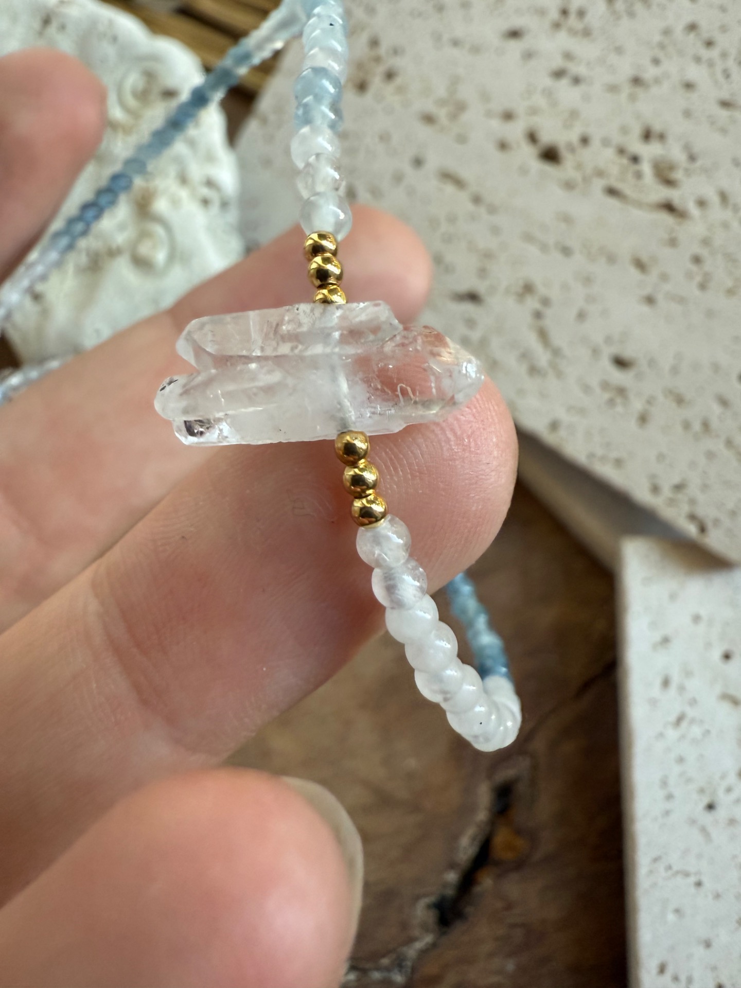Akvamarín & krištáľ – Náhrdelník pokojnej sily