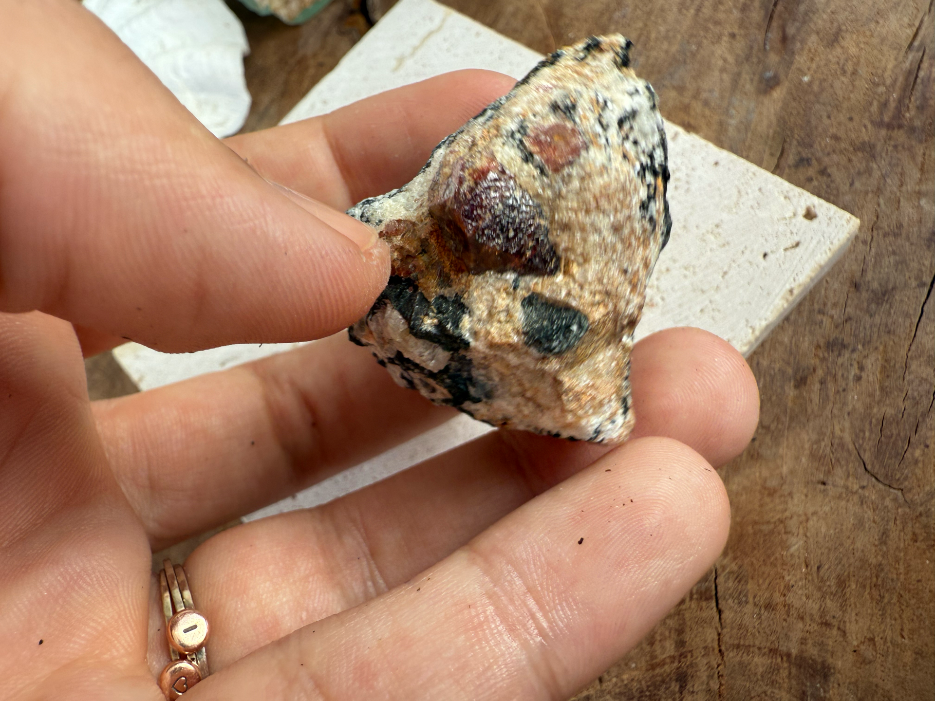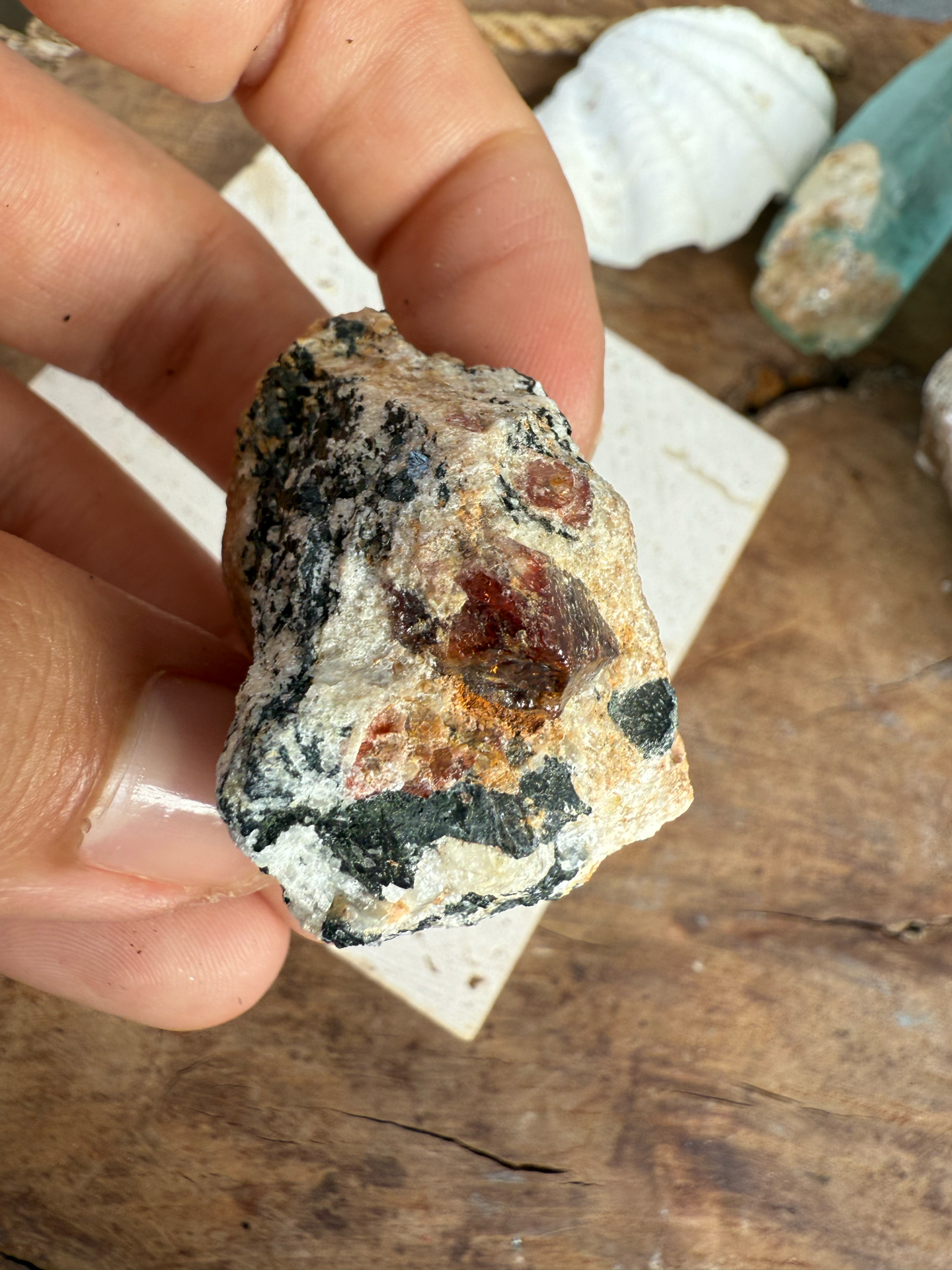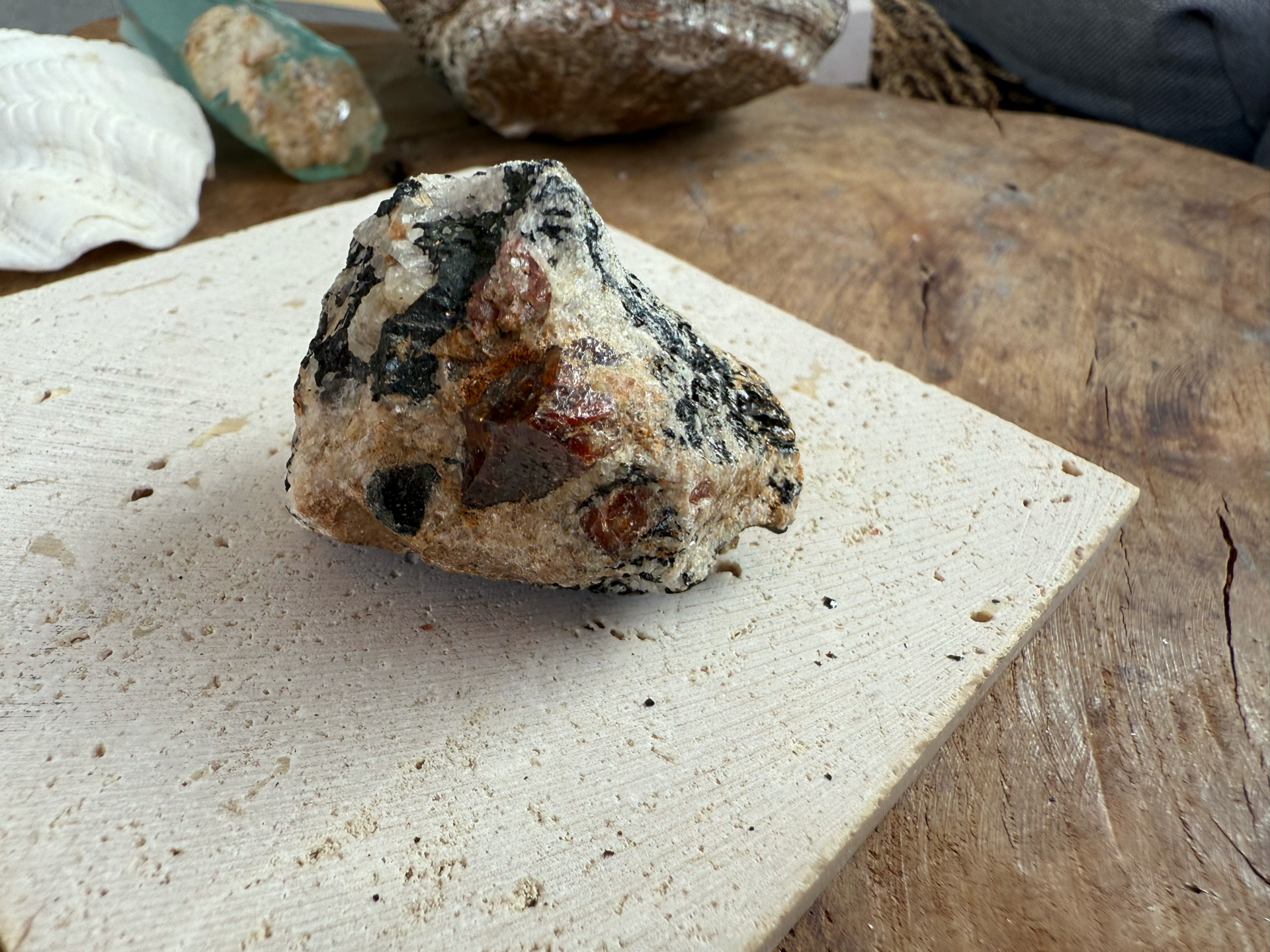 Jeho sýte červeno-krvavé odtiene žiaria v kontraste s horninou, z ktorej sa zrodil. Tento minerál v matrici pôsobí mimoriadne surovo, silno a pravdivo – ako by v sebe niesol samotný dych Zeme.