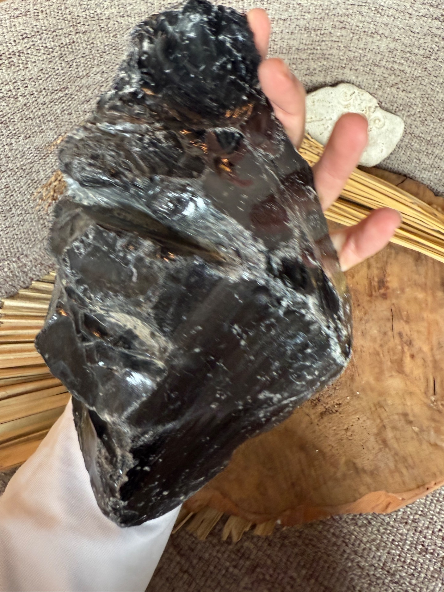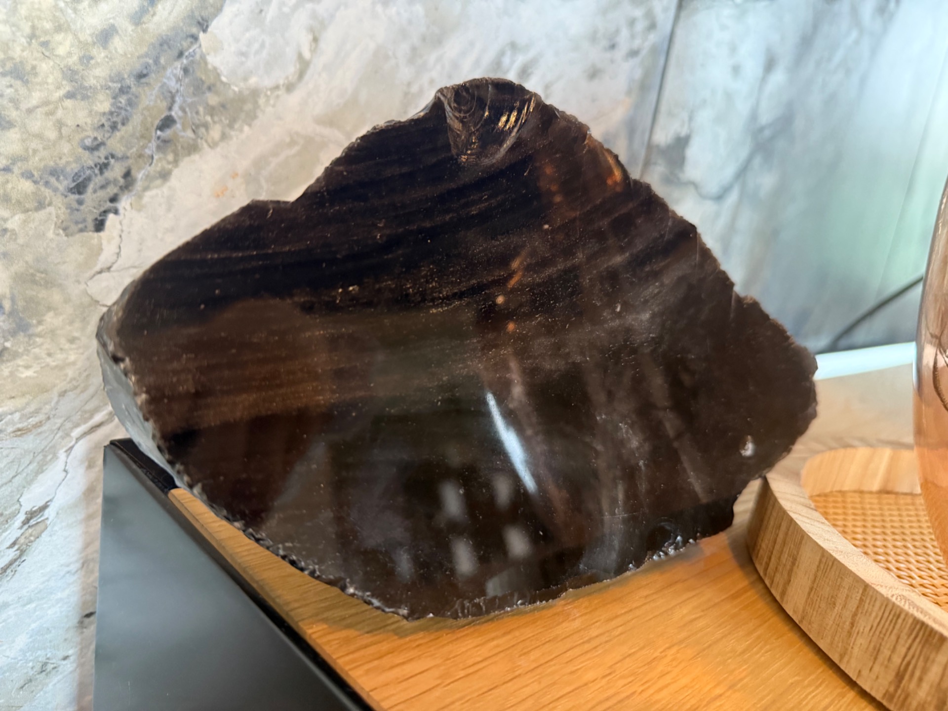 Vizualita a úprava: Jedna strana je leštená, aby vynikol charakteristický strieborný lesk (silver sheen), ostatná časť je ponechaná v prírodnom stave, takže vidíte textúru a autentickosť kameňa. Každý kameň je unikát – presne tak, ako ho vidíte na fotografiách.