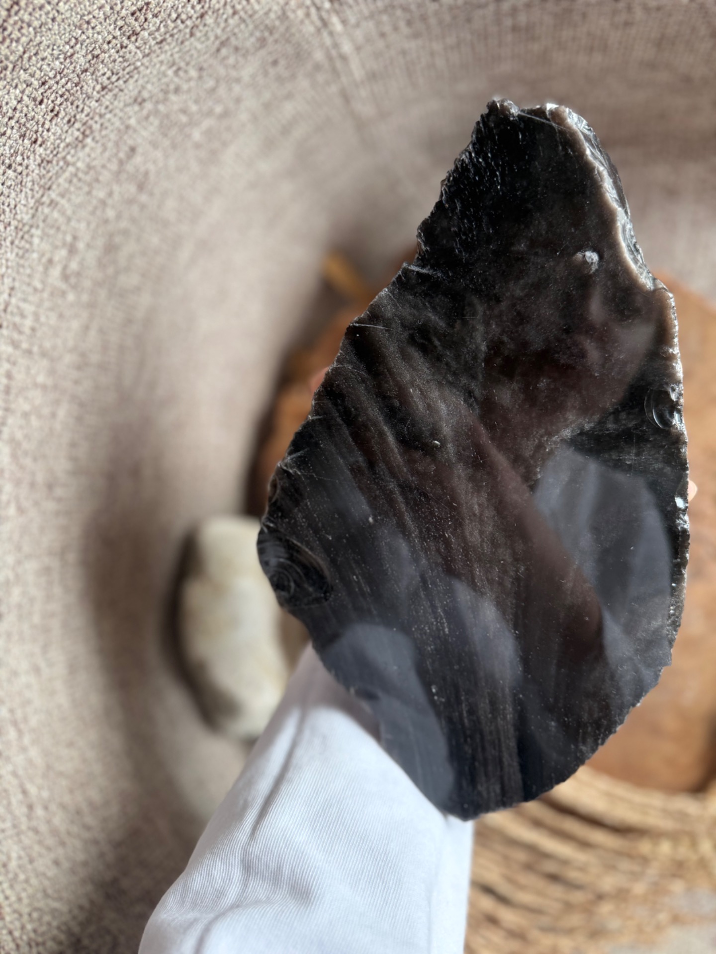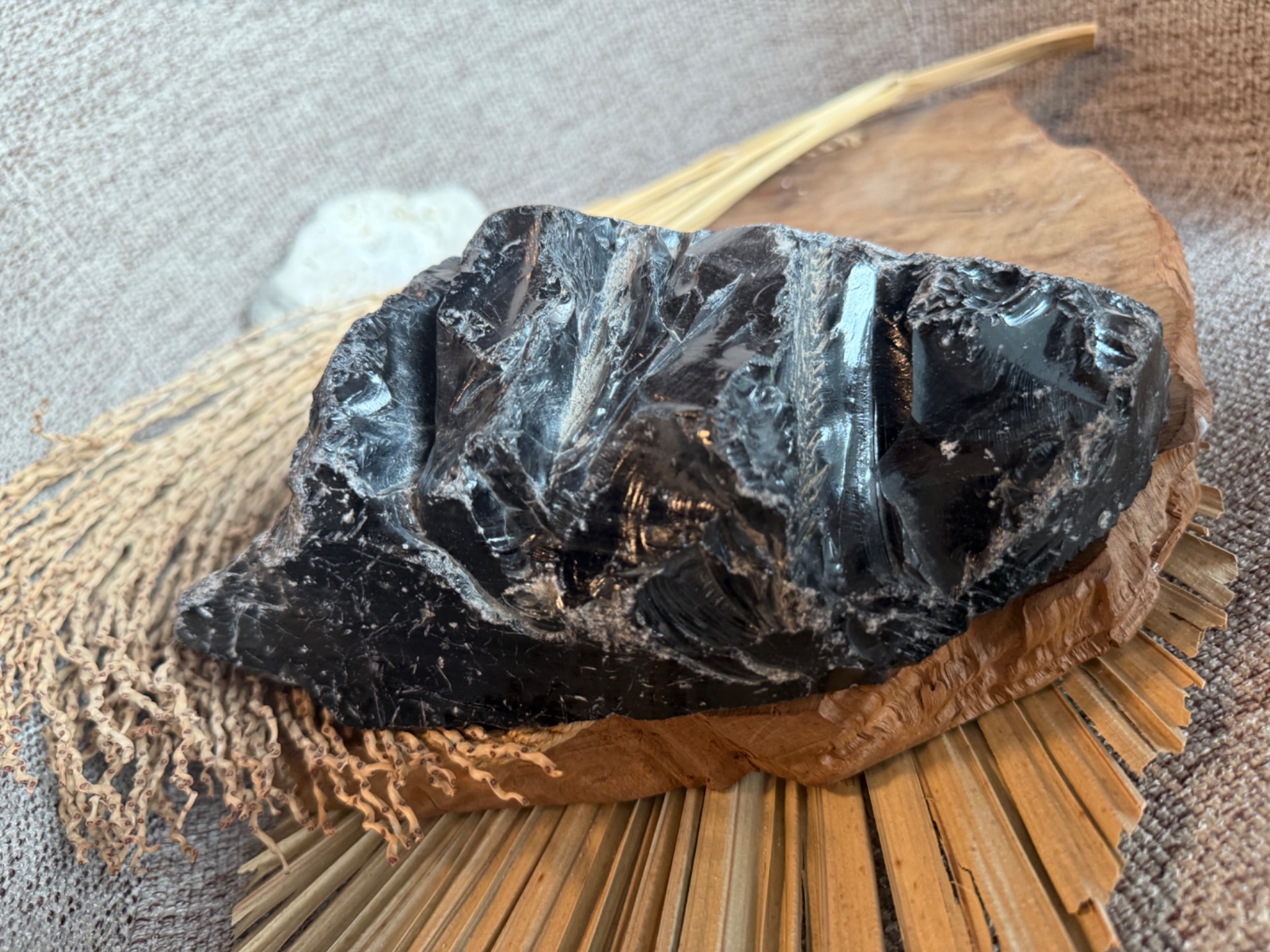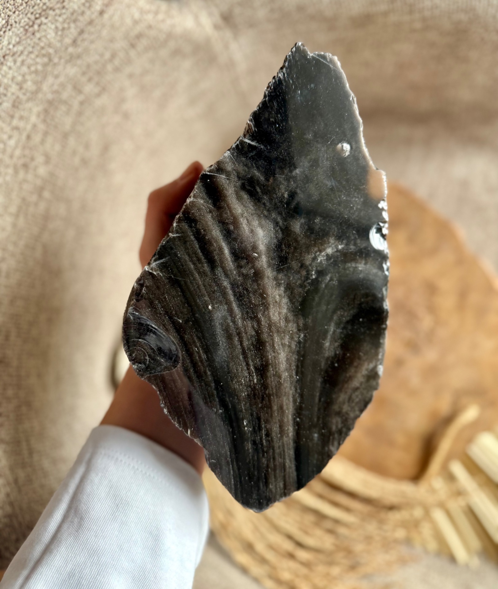 Pôvod a vznik: Tento obsidián vznikol z vulkanického skla, ktoré sa ochladilo pri vyvrení lávy a zachytilo energiu ohňa a zeme. Je to kameň s prastarou silou, používaný od staroveku pre ochranu a jasnosť mysle.
