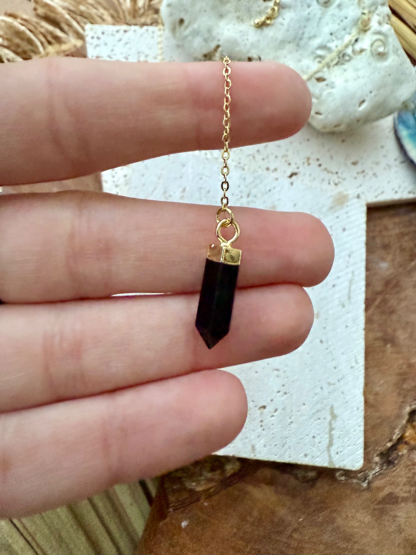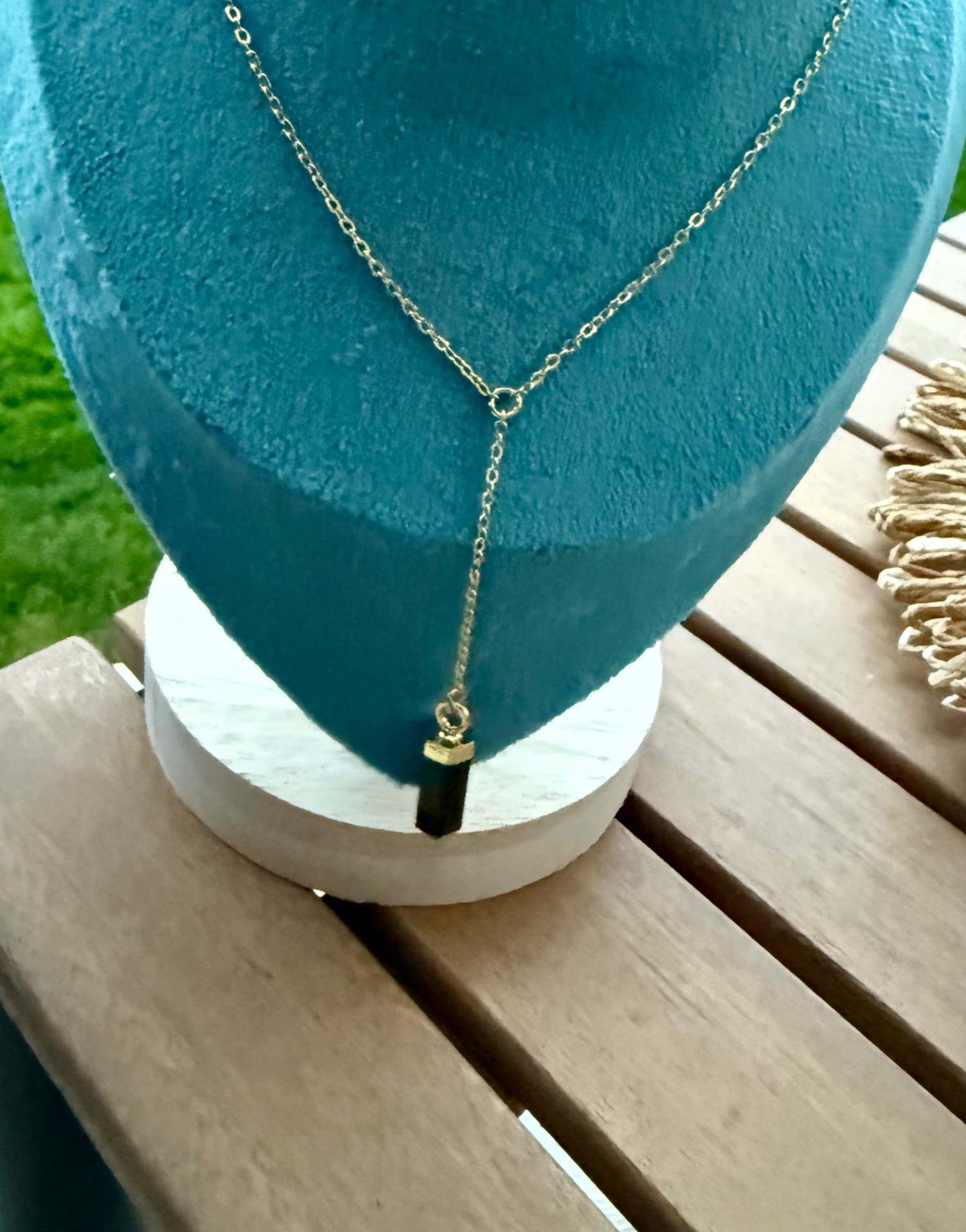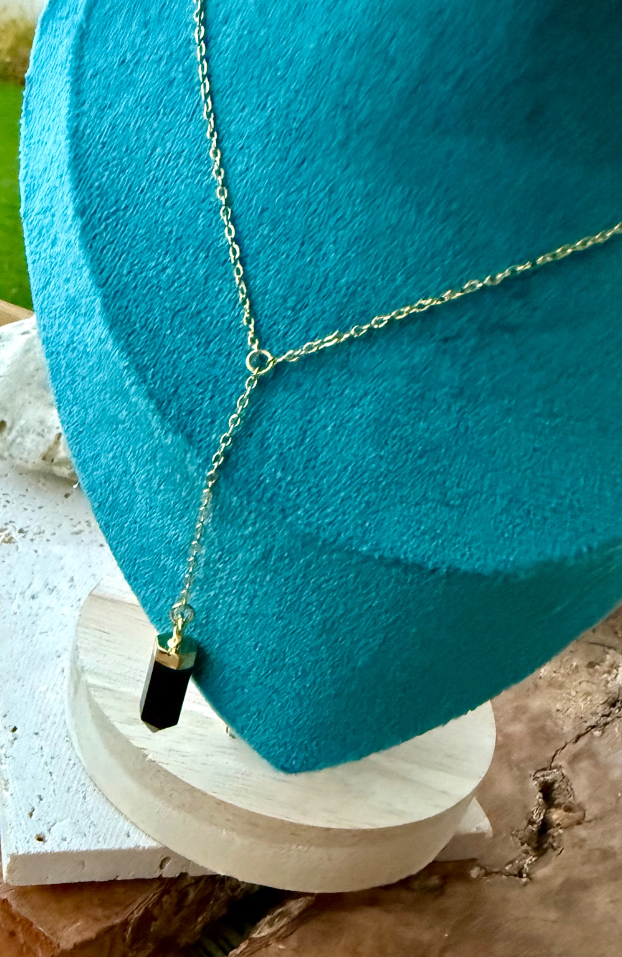Elegantná Y retiazka s jemným zlatým leskom 18k gold plated prináša do každého dňa sofistikovanú eleganciu a energiu. Na jej konci visiaci hrot čierneho ónyxu posilňuje vnútornú silu, odvahu a stabilitu, pričom dodáva šperku elegantný a zároveň výrazný akcent.