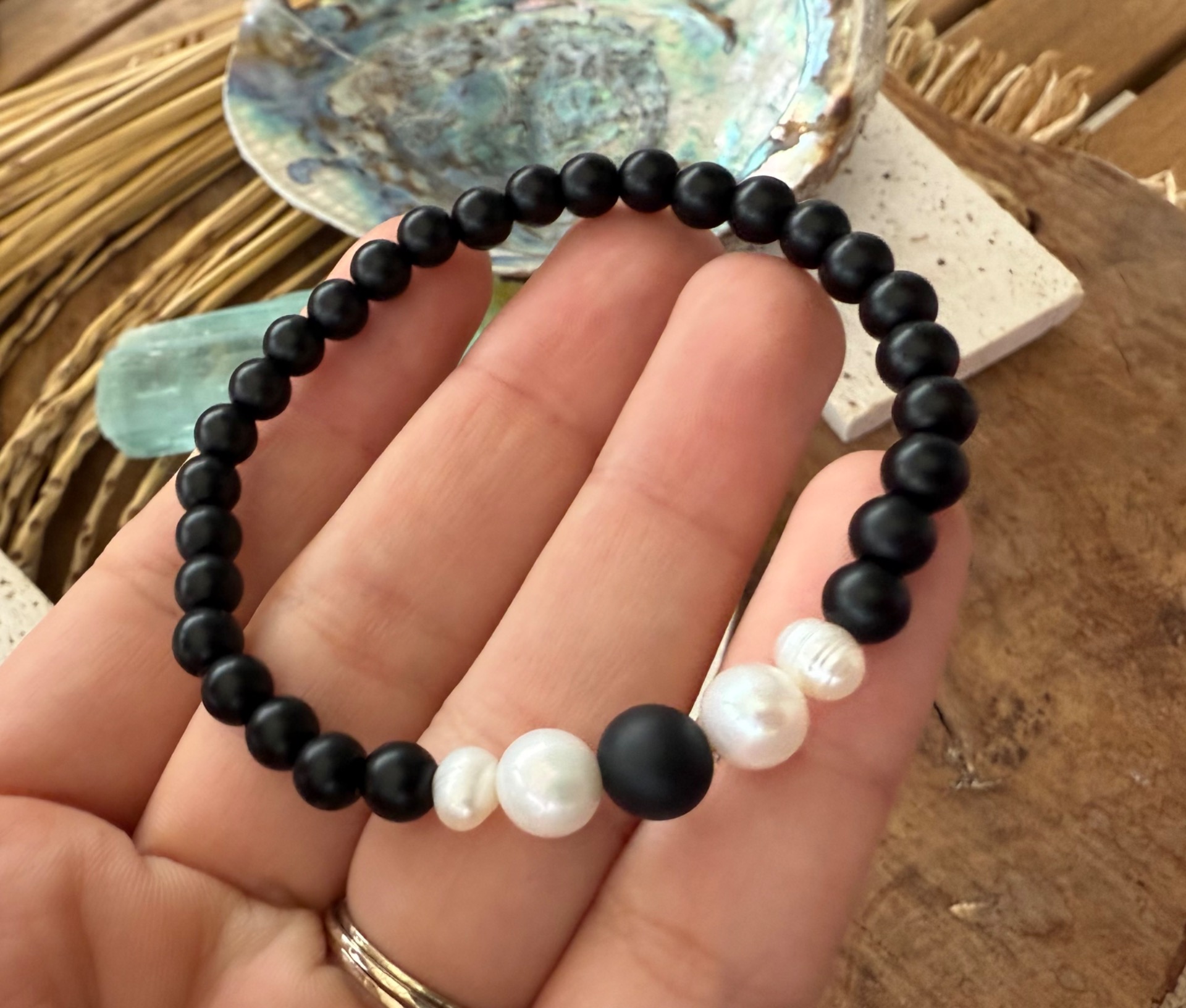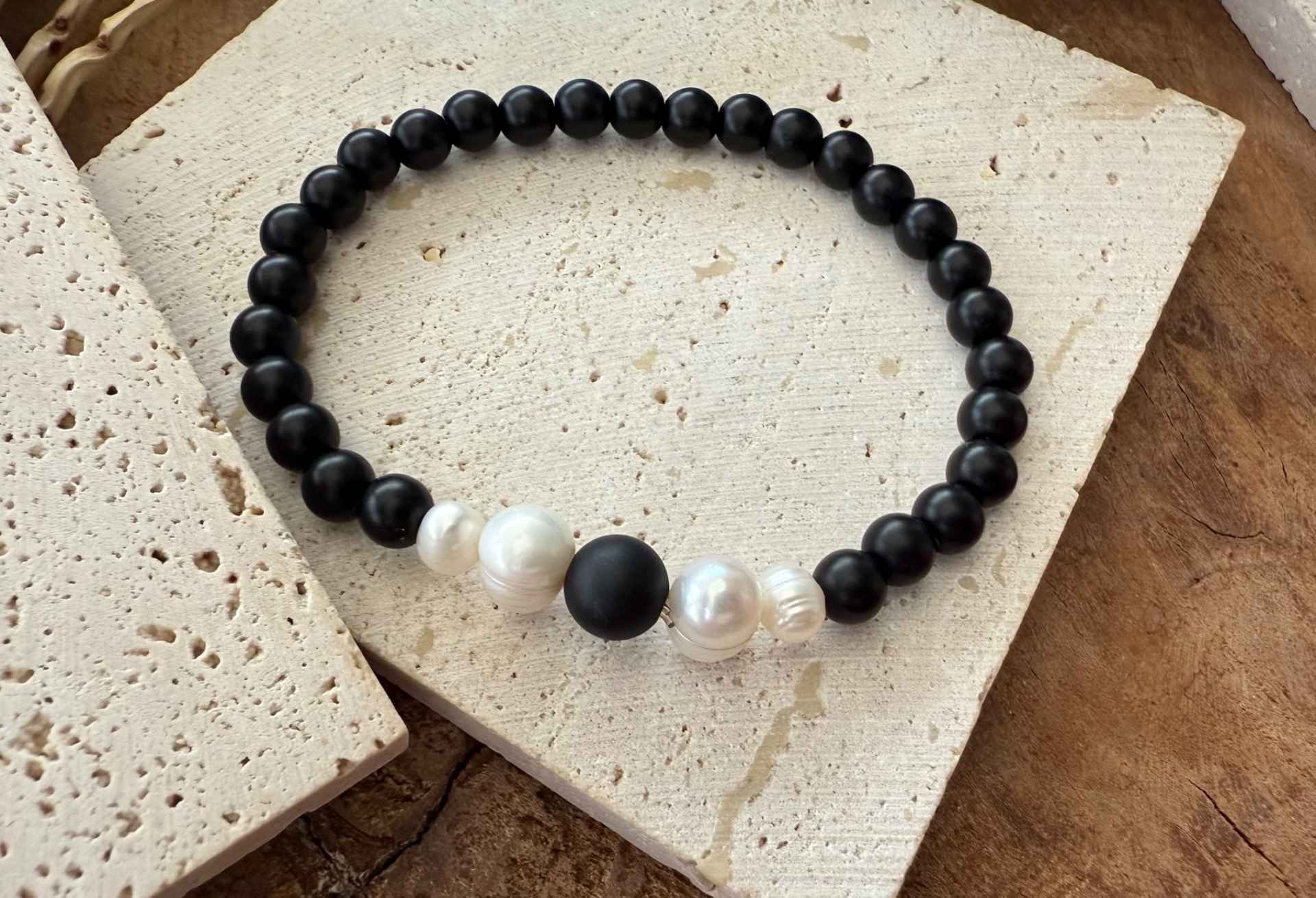 Náramok z minerálu matný achát + riečna perla – Ochrana a šťastie