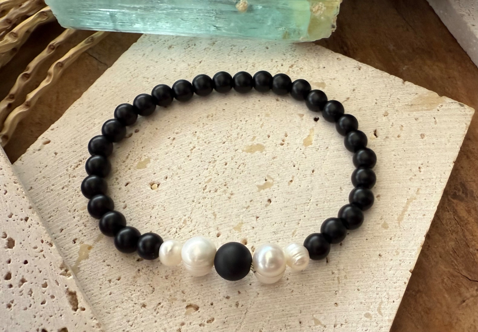 Objav harmóniu, ochranu a šťastie v jednom elegantnom náramku. Tento unikátny šperk spája matný achát a riečnu perlu, vytvárajúc náramok, ktorý nie je len krásny, ale nesie aj hlboký význam.
