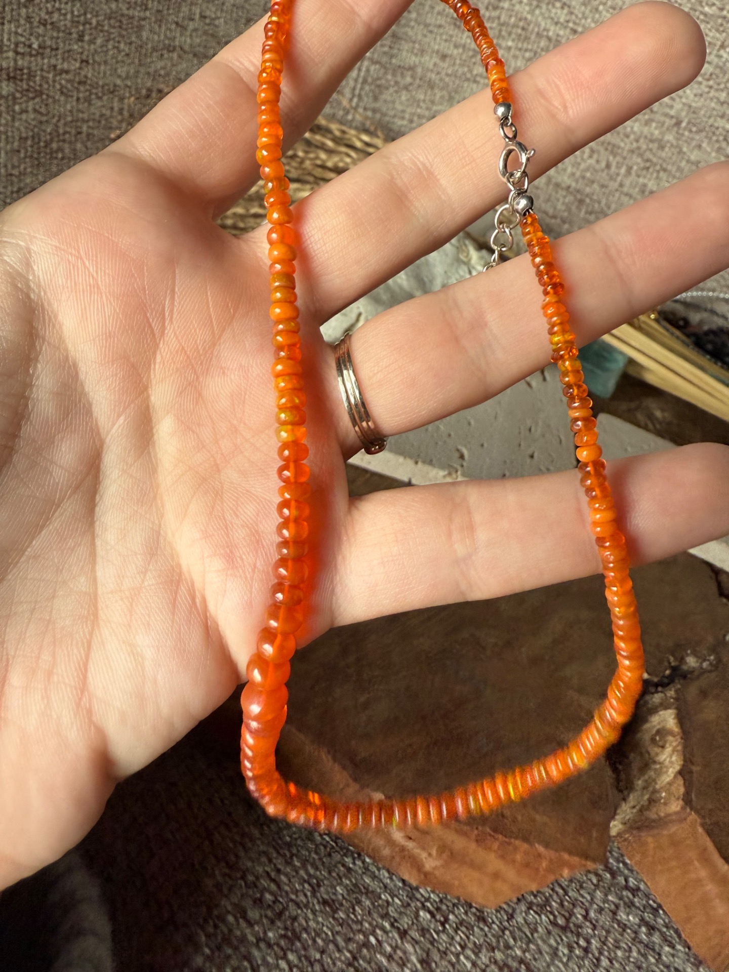 Náhrdelník je vyrobený z pravého etiópskeho opálu. Jeho dĺžka je 42 cm strieborné zapínanie. Každý opál je originál, s prirodzenou farebnou hrou a štruktúrou, čo robí každý kus jedinečným. Ide o vzácnejší a hodnotnejší minerál. Zbierkový kus.