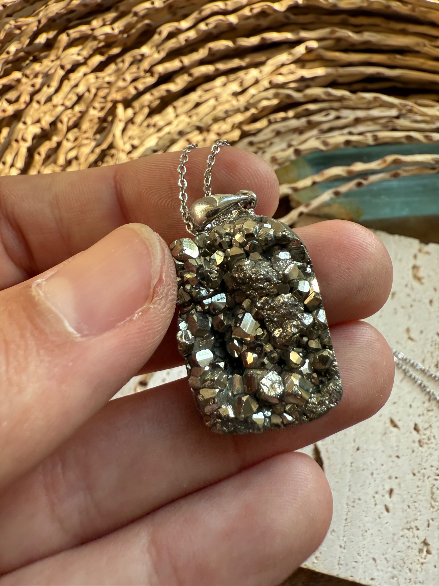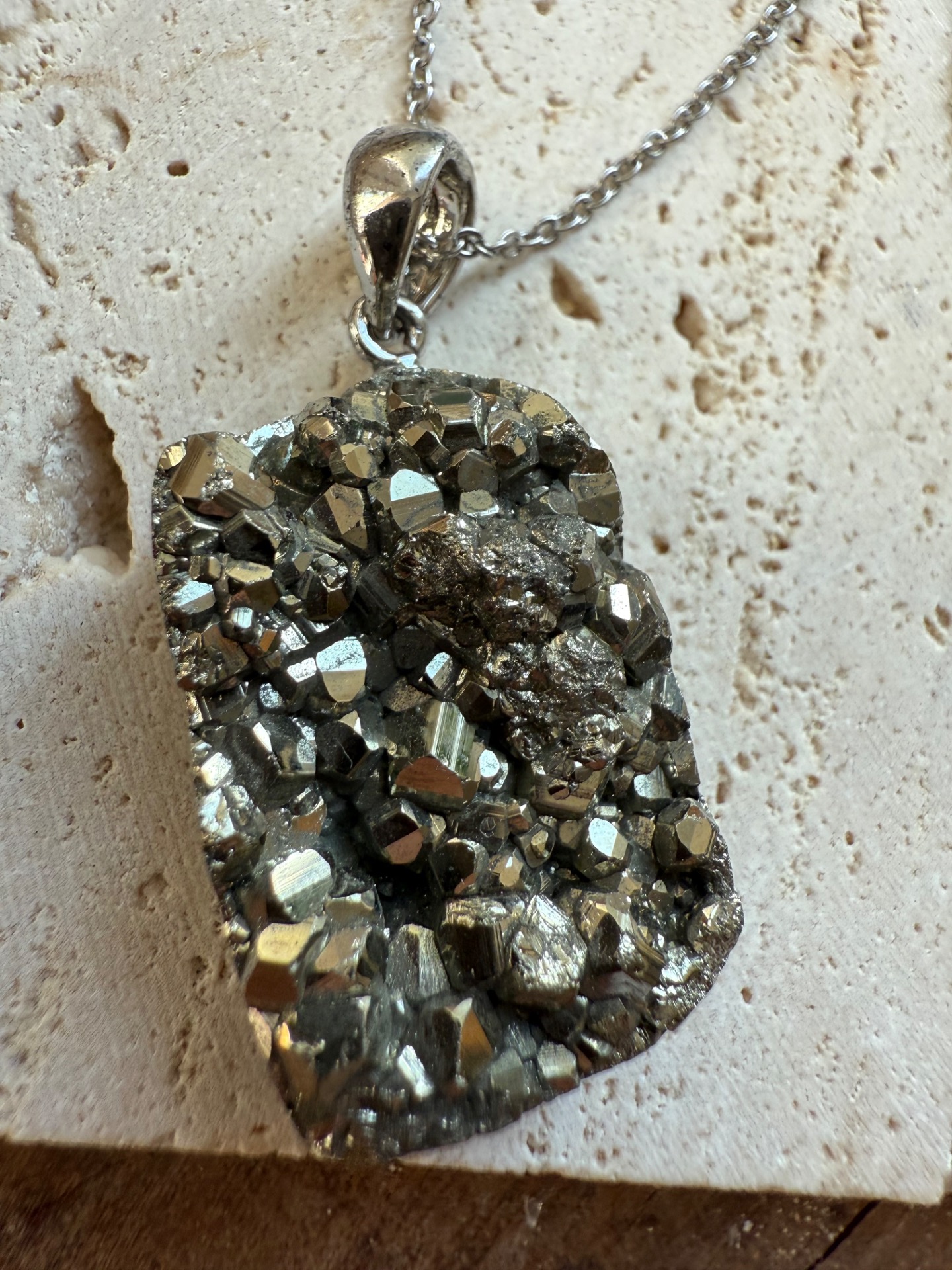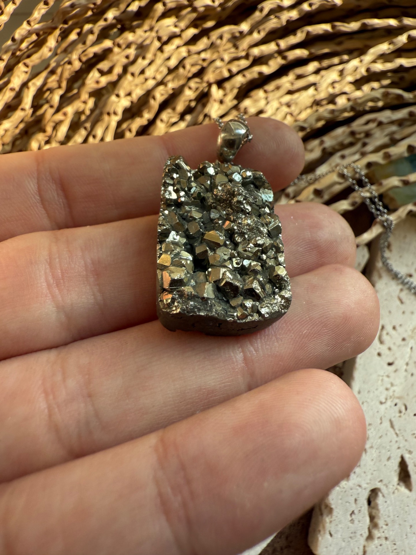 Prívesok v top kvalite z minerálu železný pyrit drúza .
