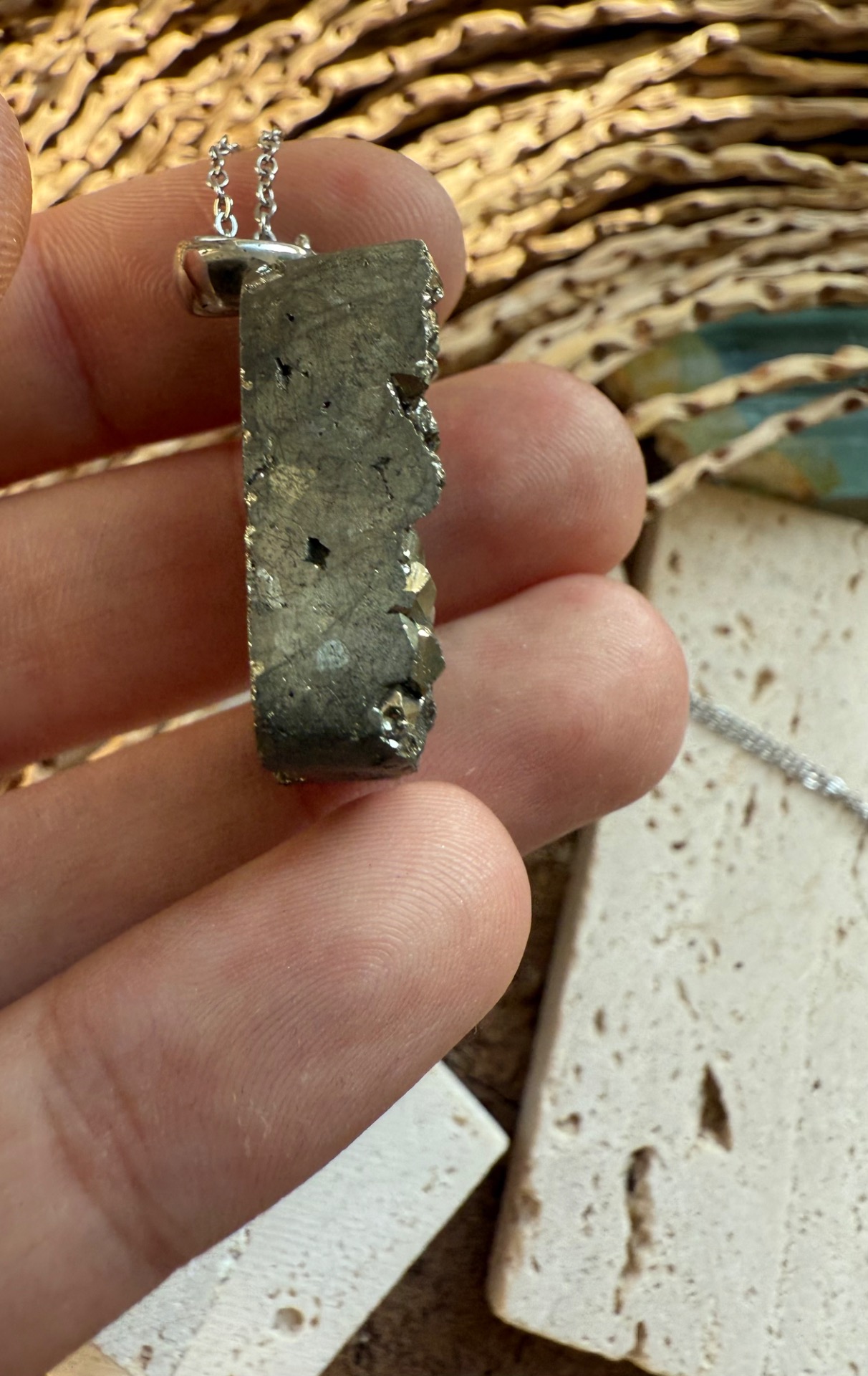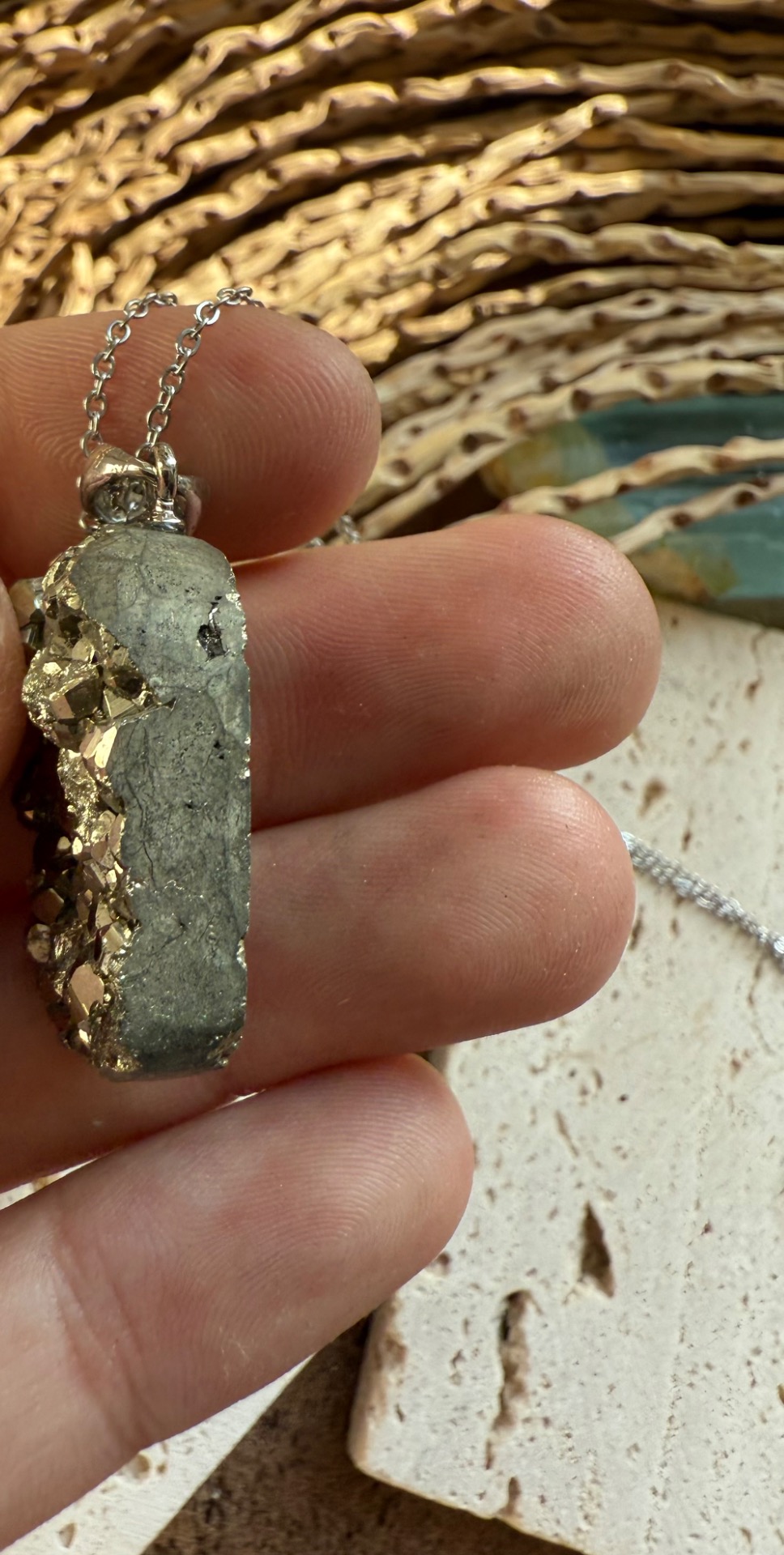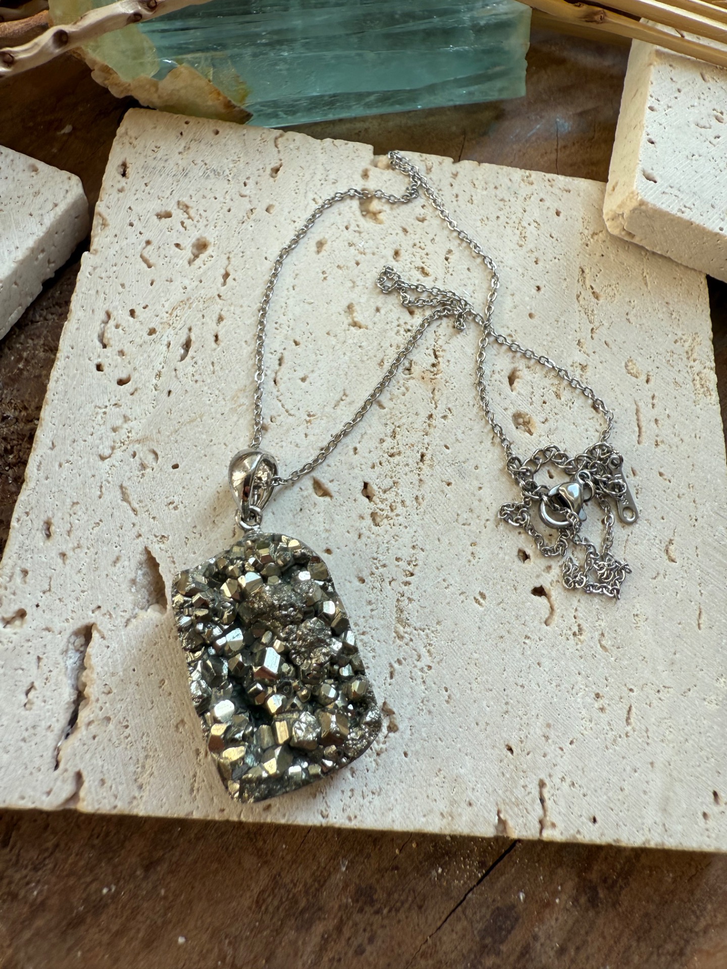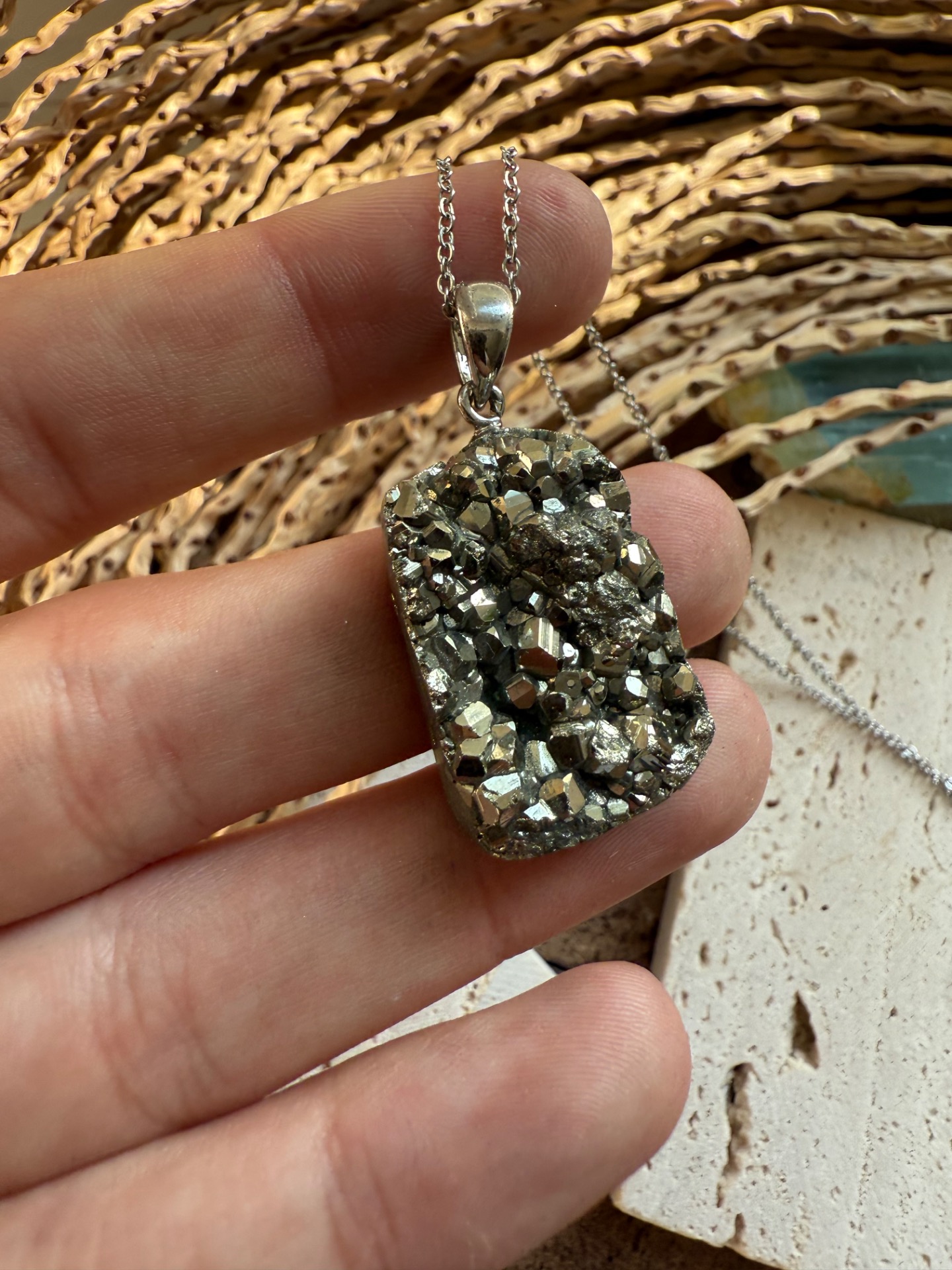 Prívesok v top kvalite z minerálu železný pyrit drúza .