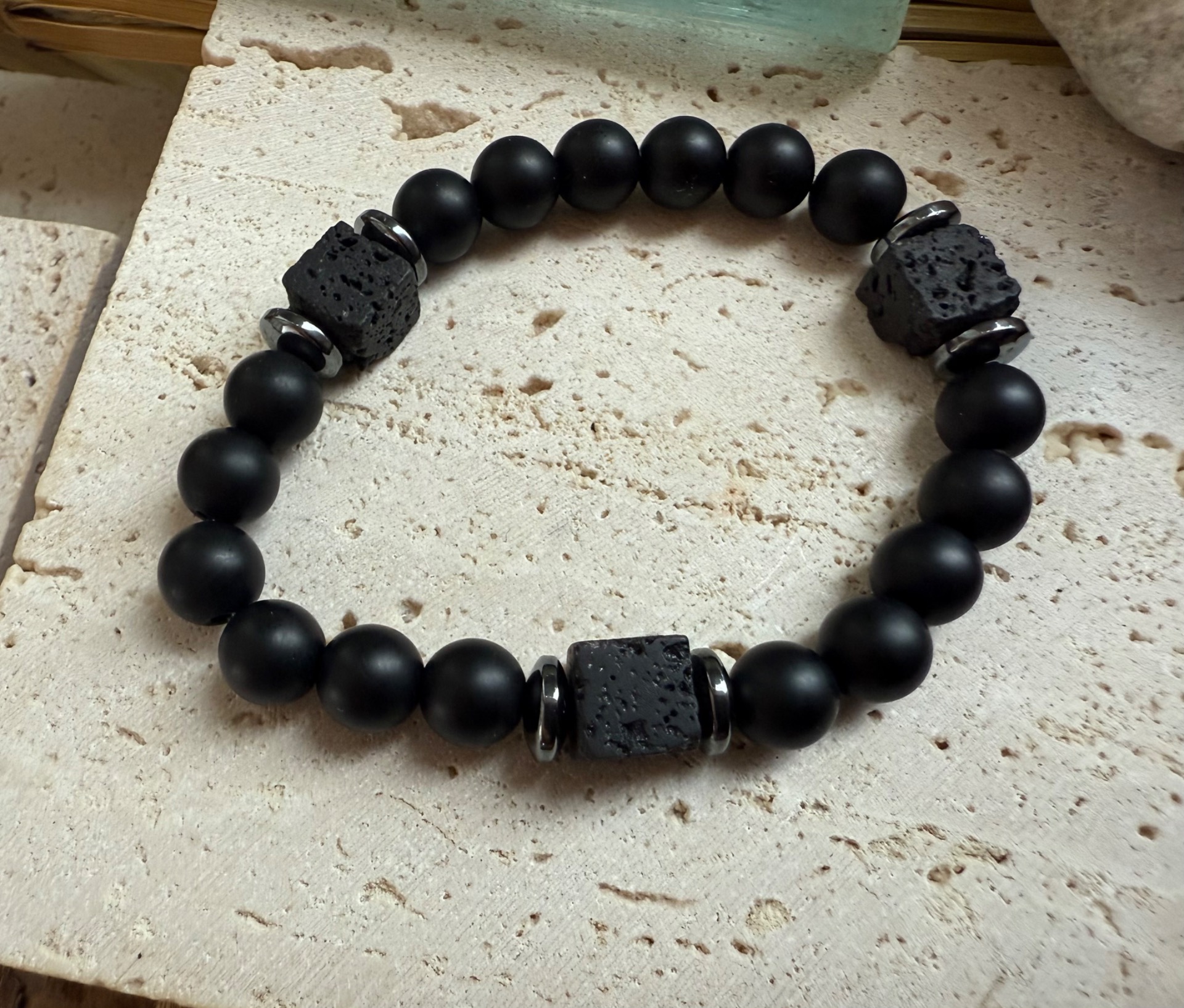 Pánsky náramok z matného achátu & lávového kameňa – stabilita