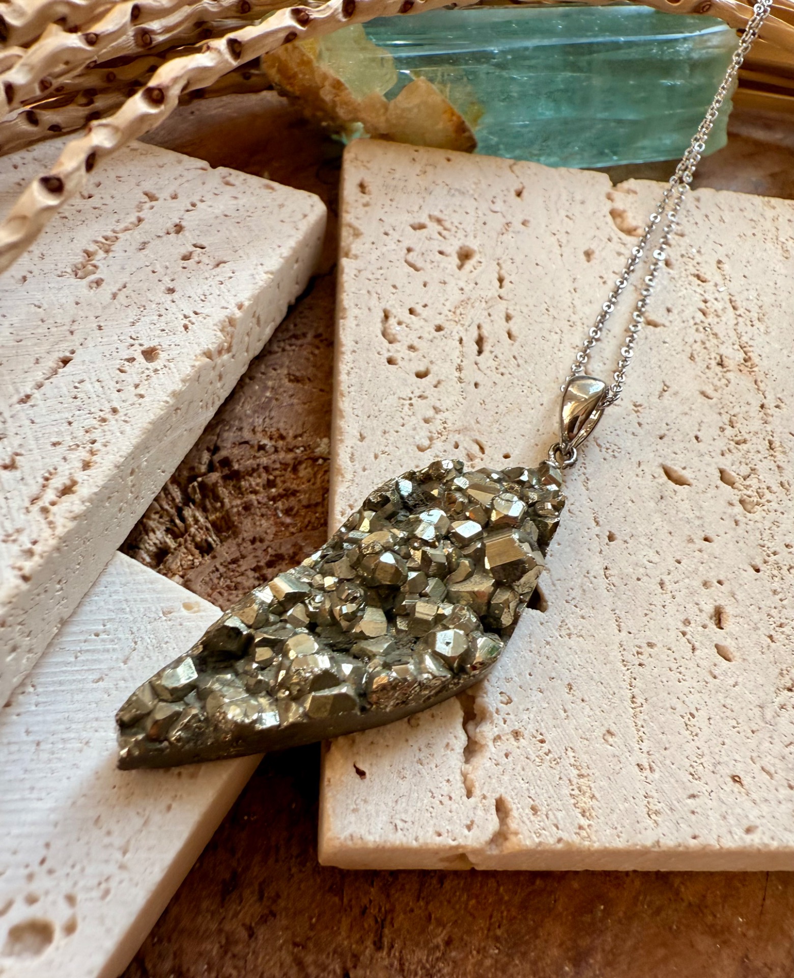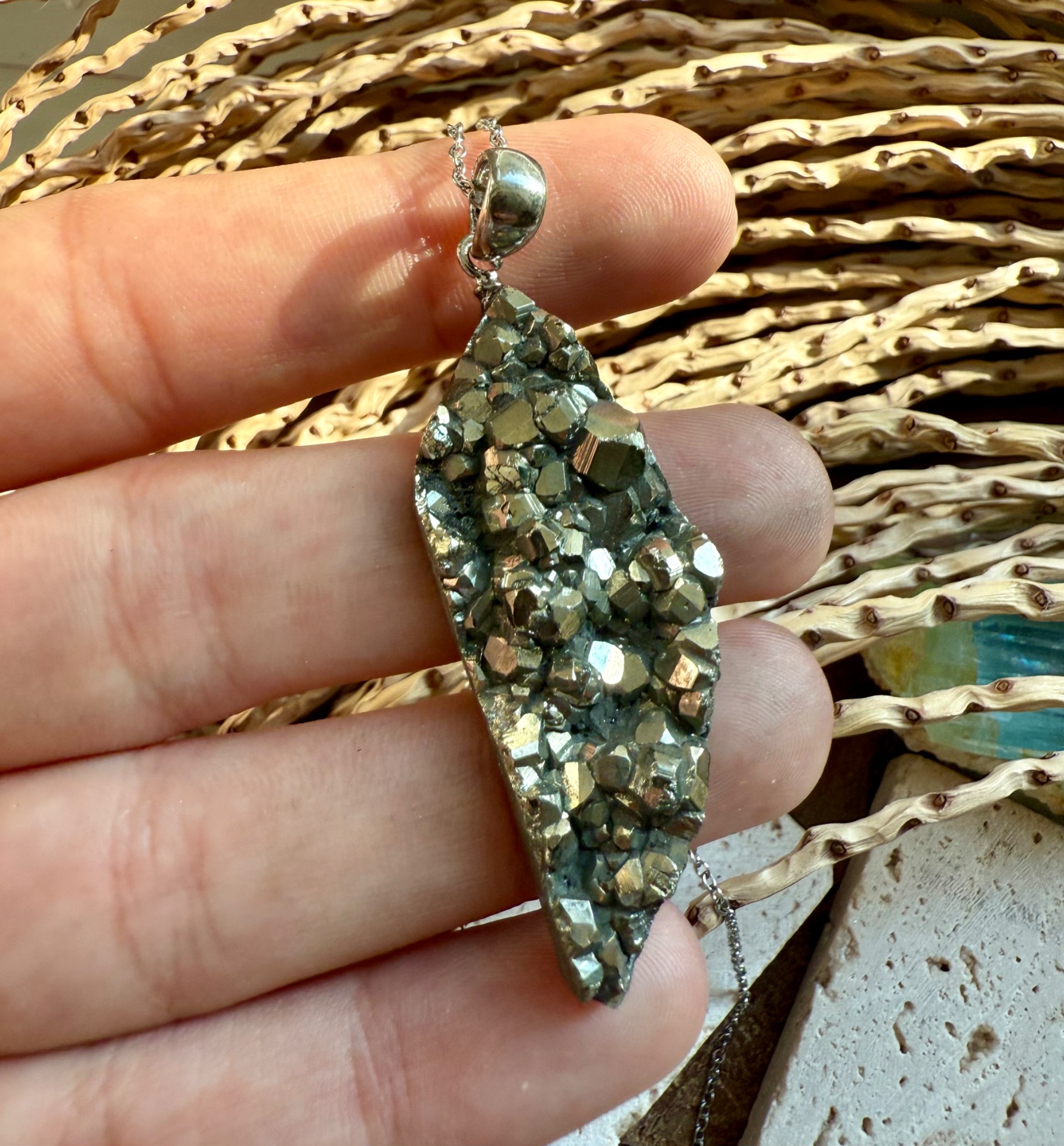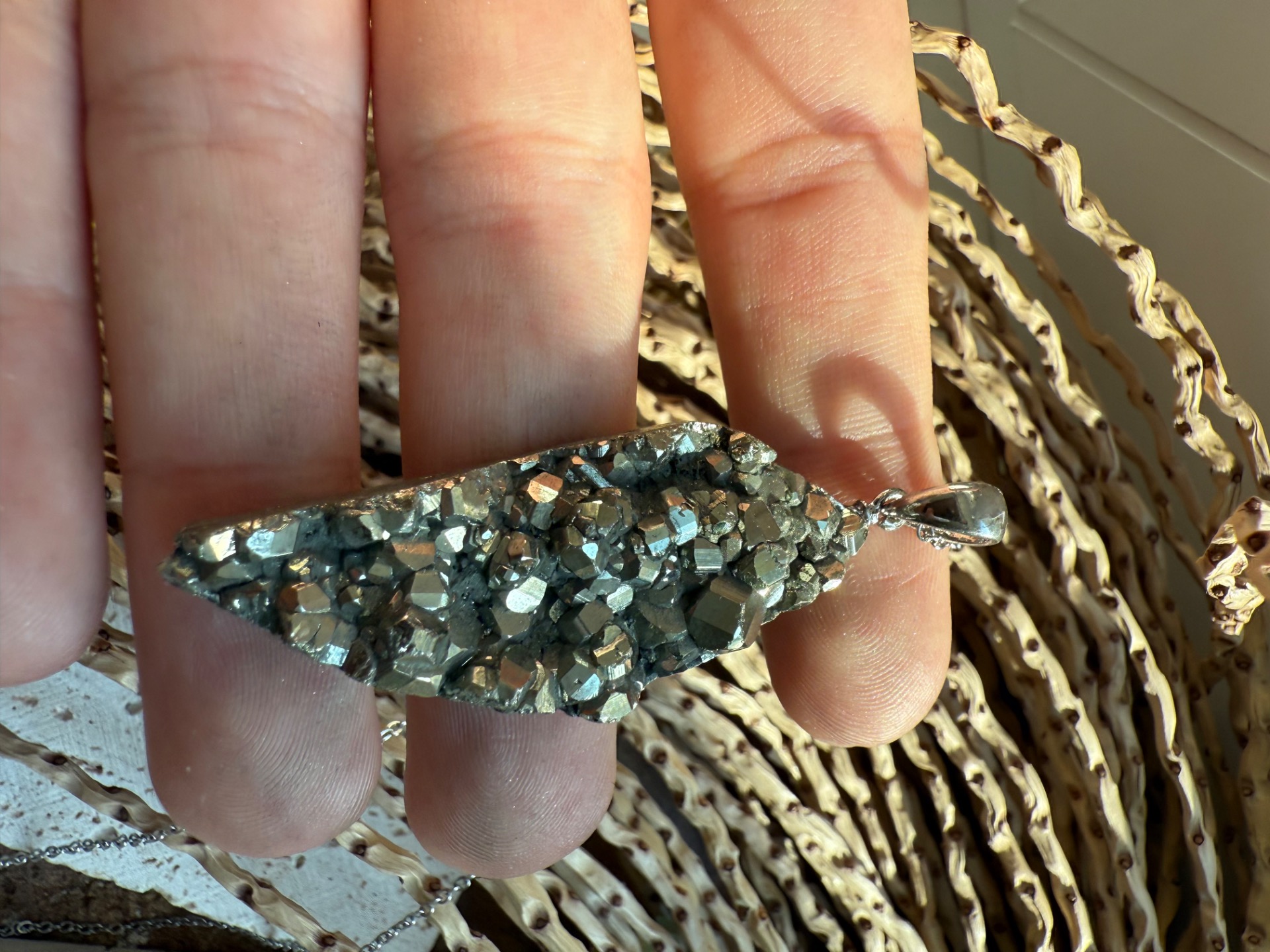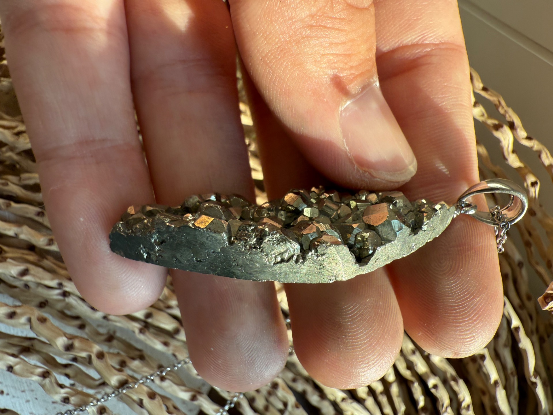 Prívesok v top kvalite z minerálu železný pyrit drúza .