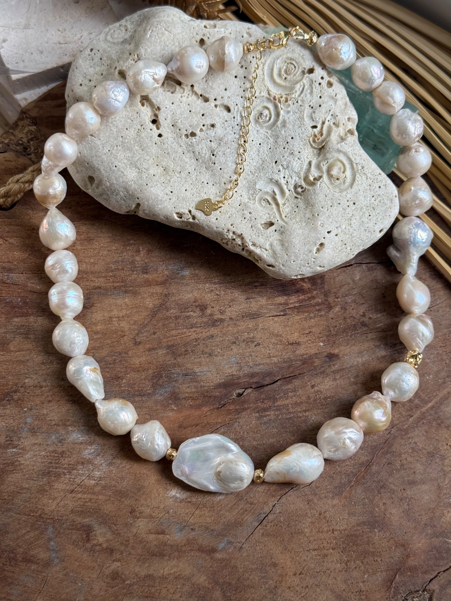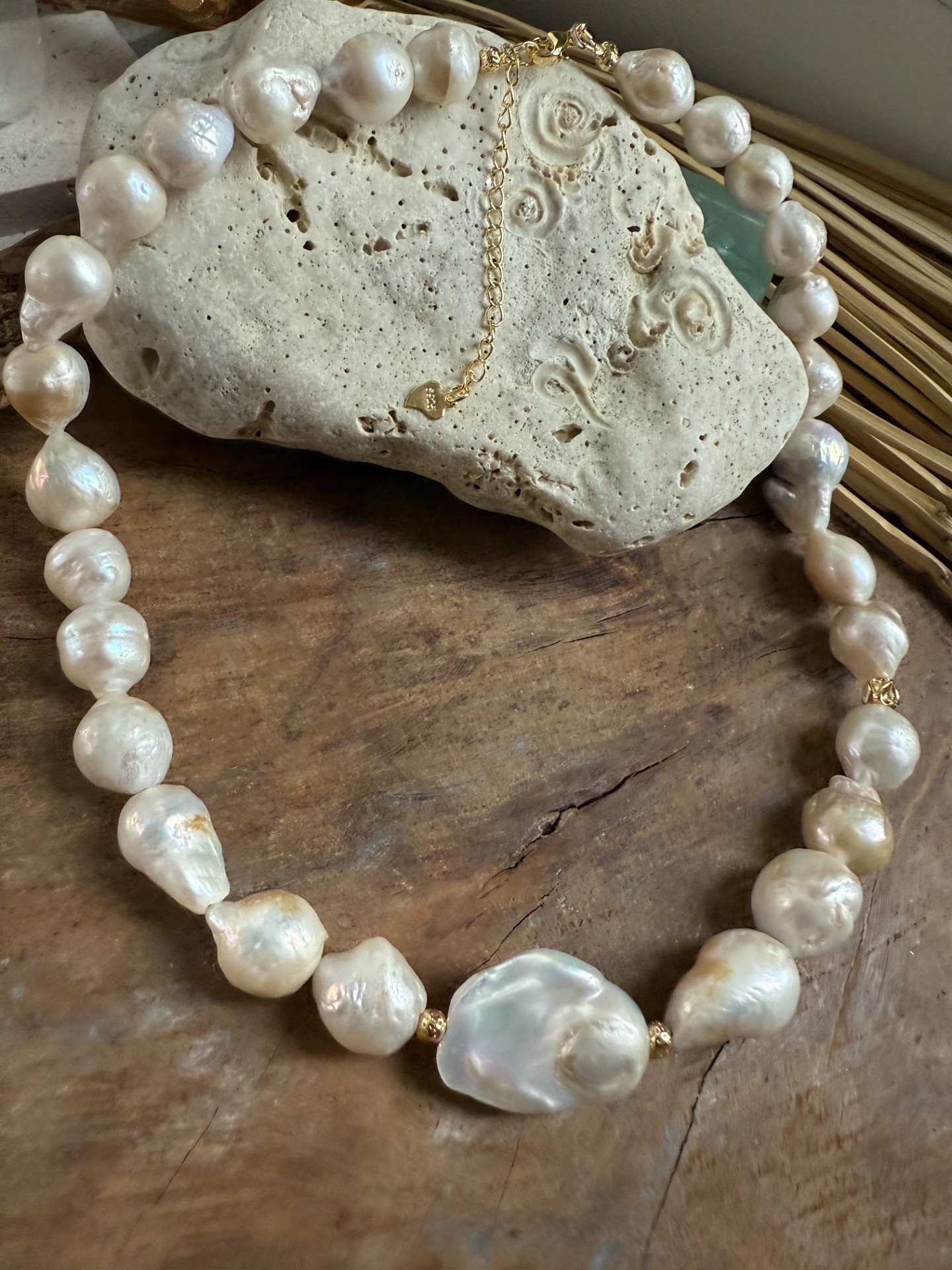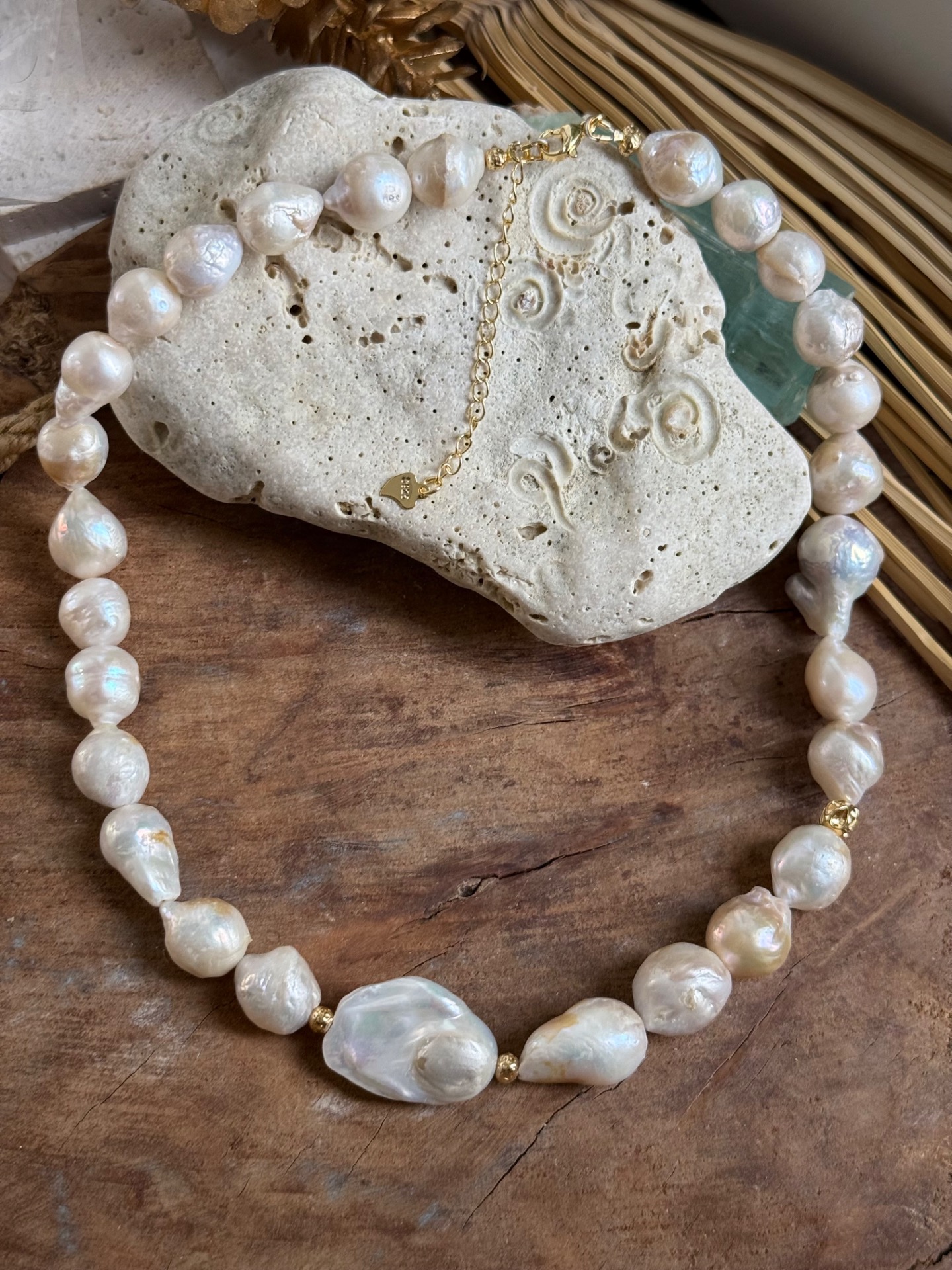 Tento náhrdelník z barokových nepravidelných perál je oslavou autenticity. Každá perla má vlastný tvar, vlastnú štruktúru, vlastnú esenciu.