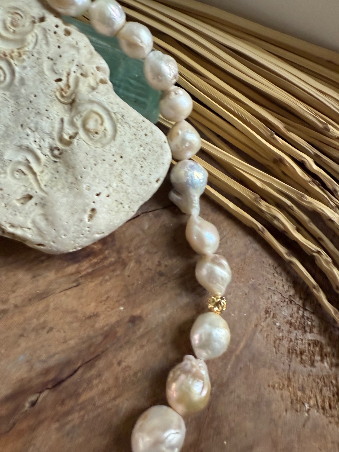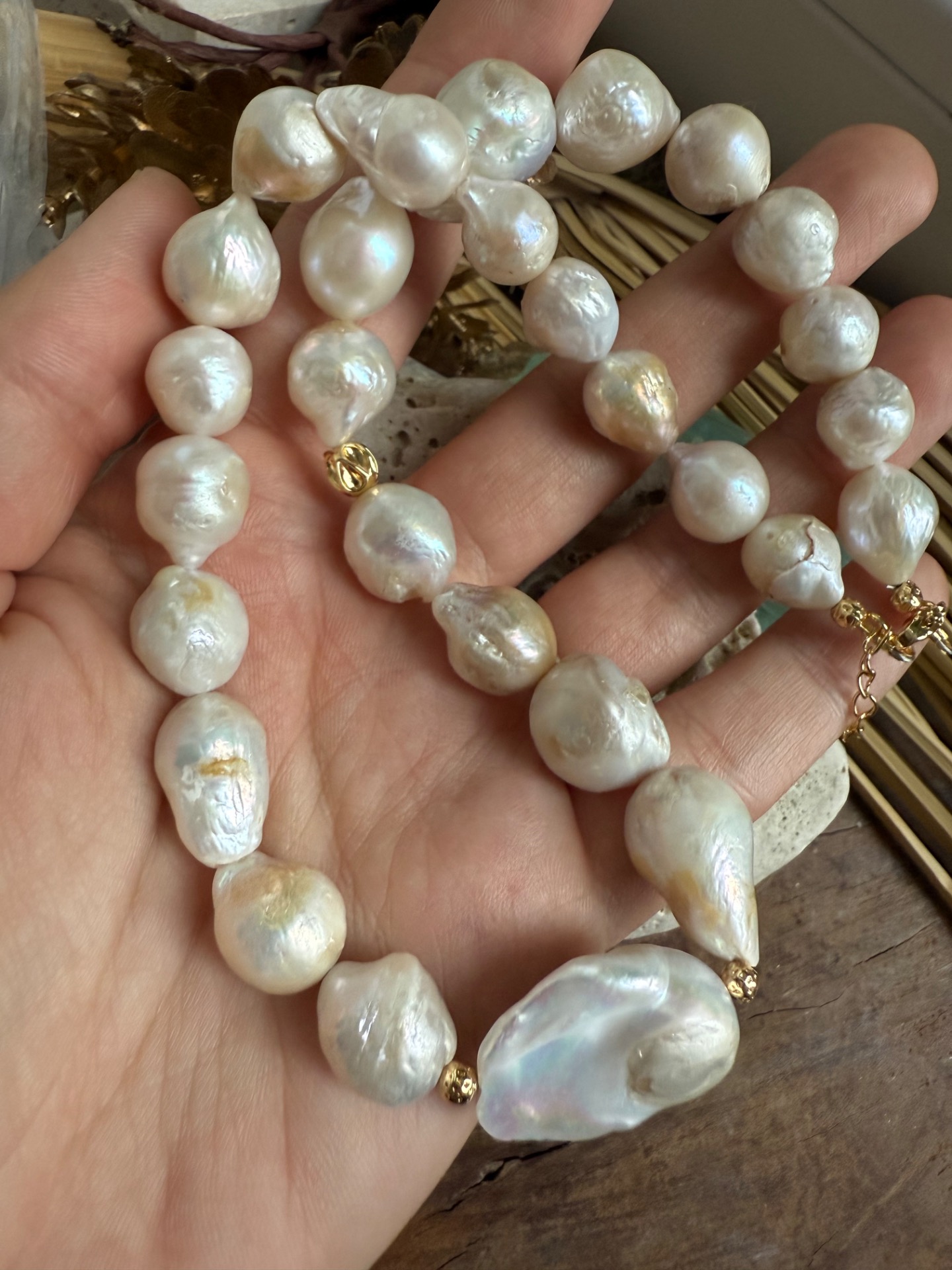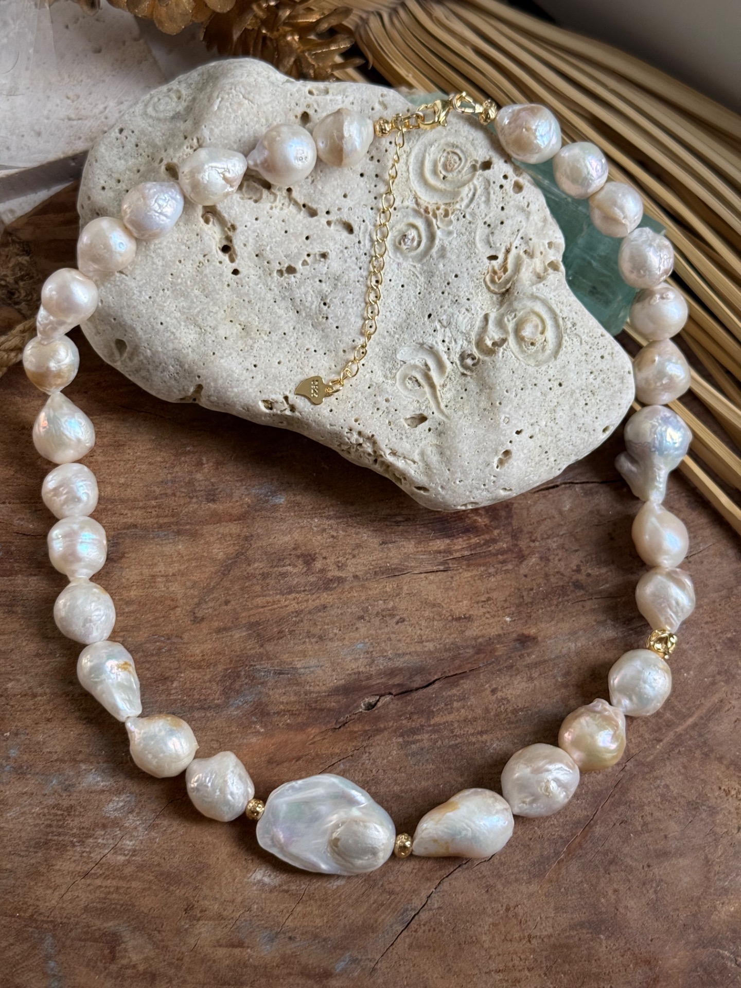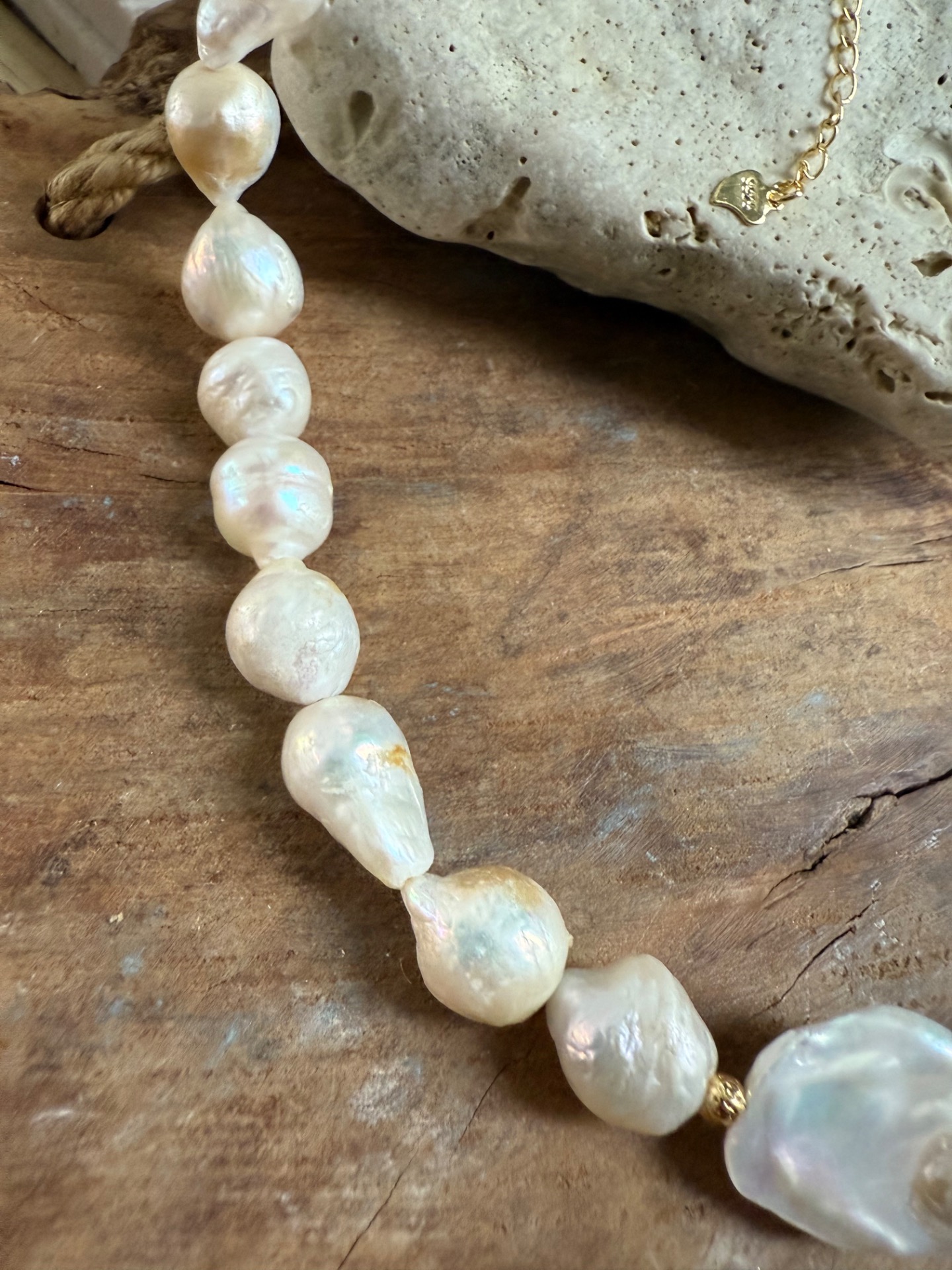 Tento náhrdelník z barokových nepravidelných perál je oslavou autenticity. Každá perla má vlastný tvar, vlastnú štruktúru, vlastnú esenciu.