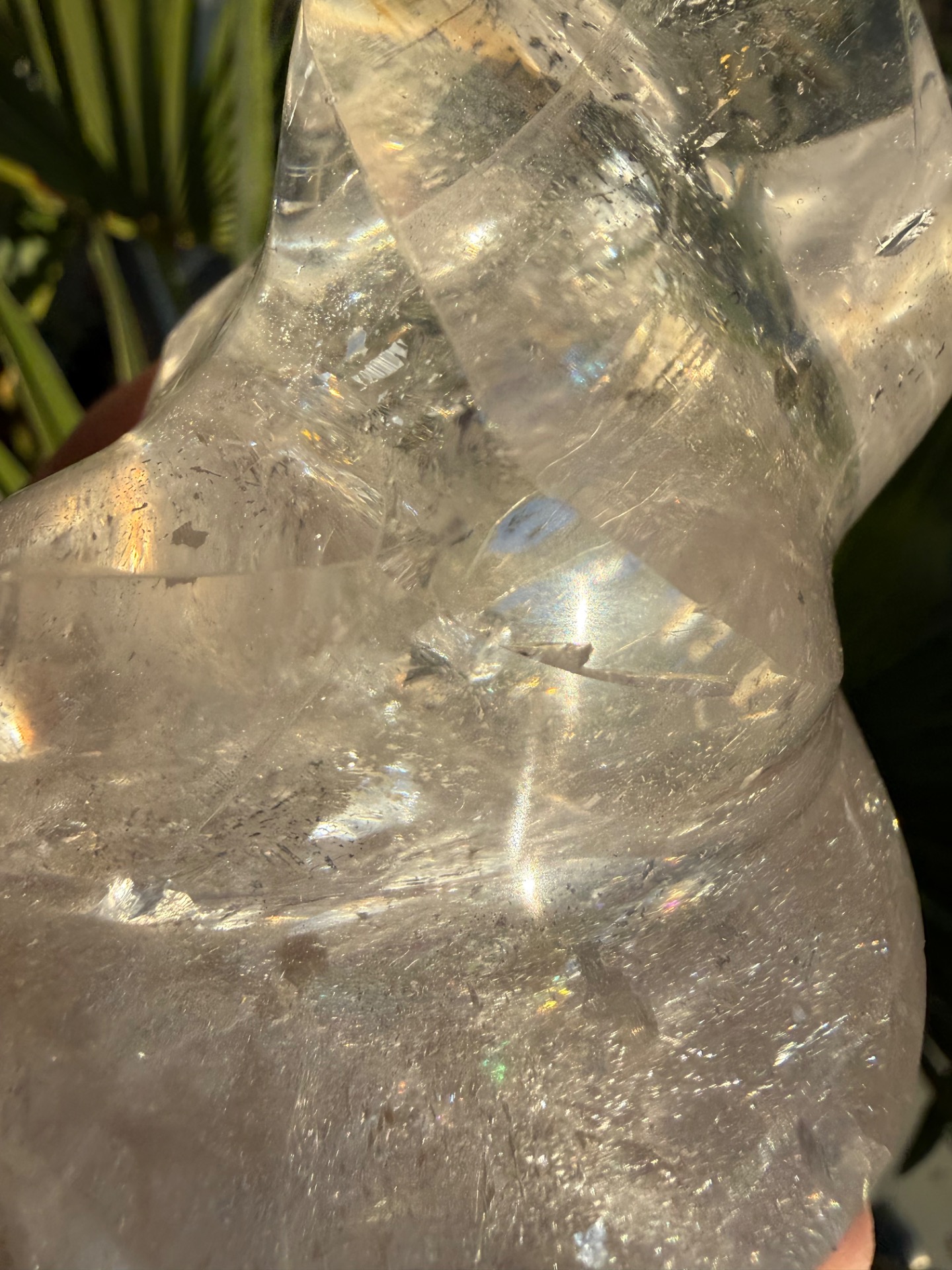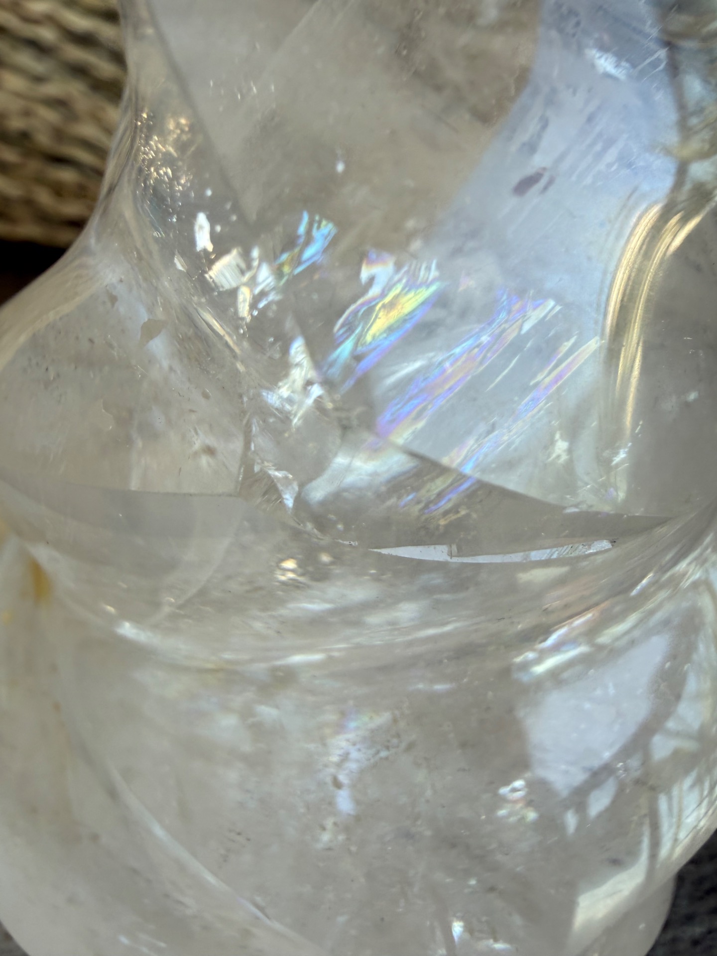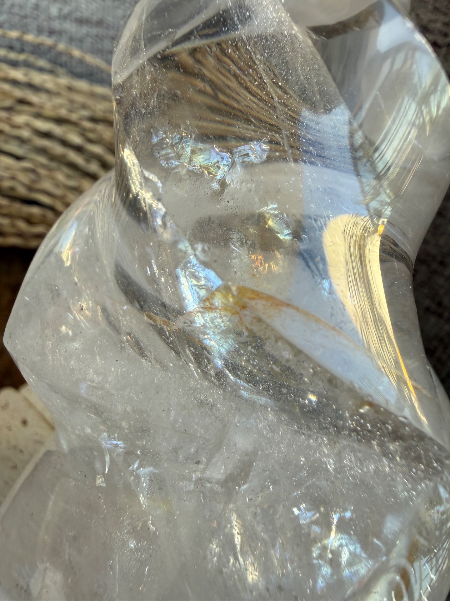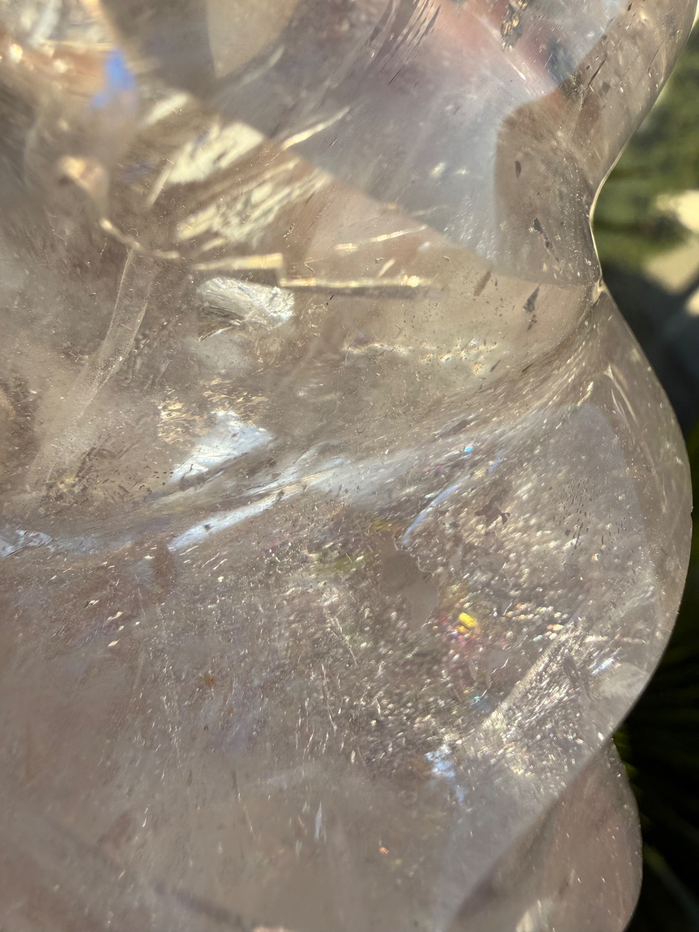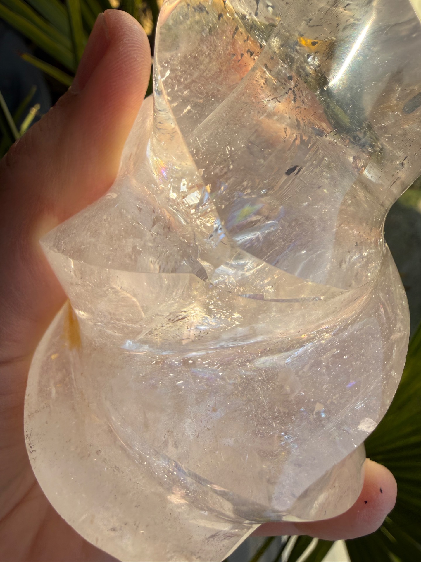Tento nádherný horský krištáľ z Madagaskaru je precízne vybrúsený do tvaru plameňa, ktorý symbolicky pripomína neustále sa meniacu, živú energiu svetla. Ide o výnimočný, čistý a výrazný kúsok, ktorý v priestore pôsobí ako silný energetický bod.