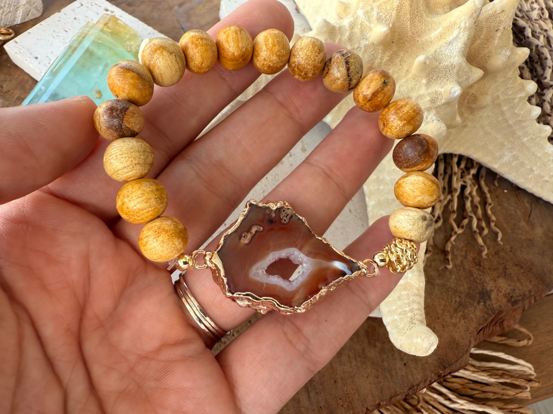 Náramok Sacra Tierra – achátová drúza + Palo Santo | Ochrana, uzemnenie, očista