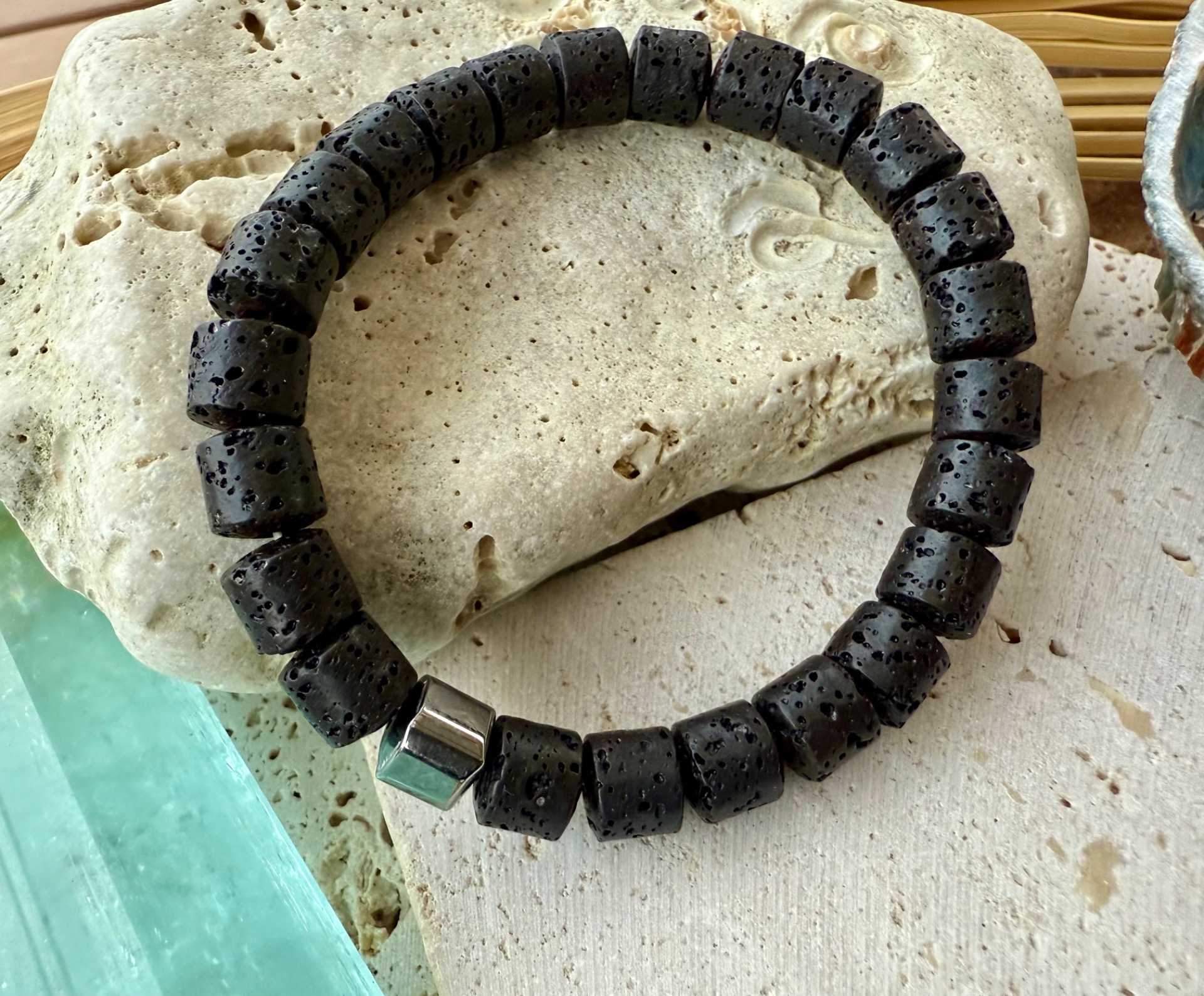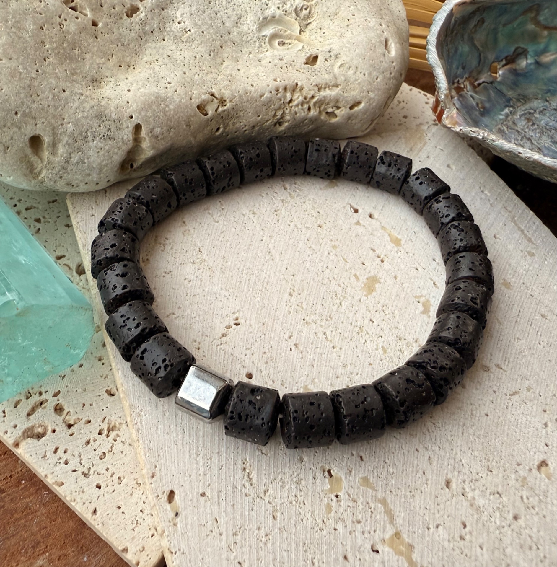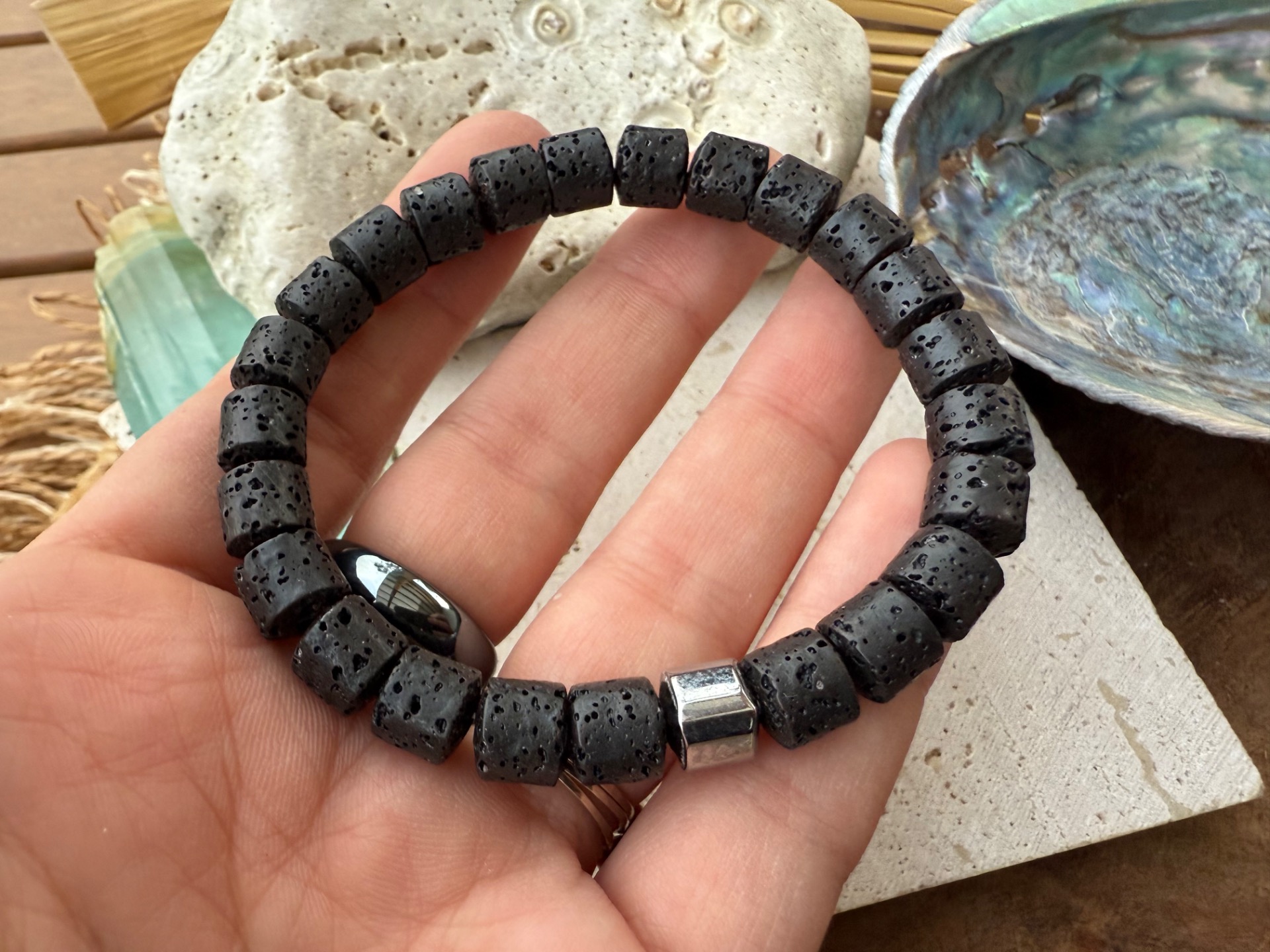 Pánsky náramok z lávového kameňa a hematitu – Pevné zdravie