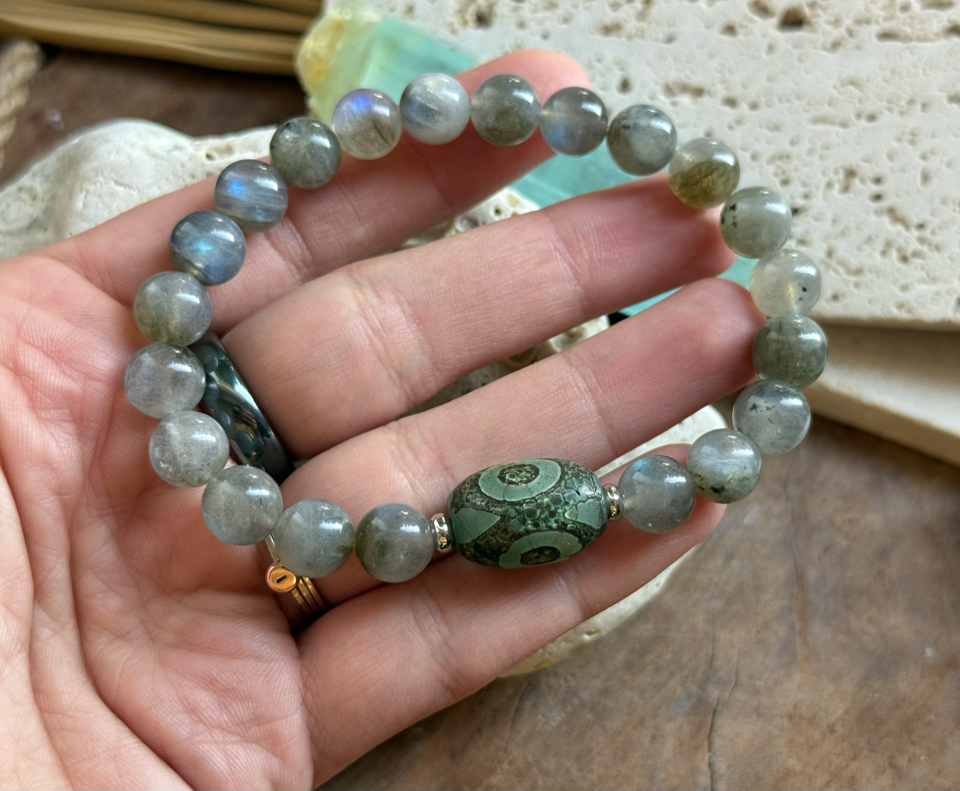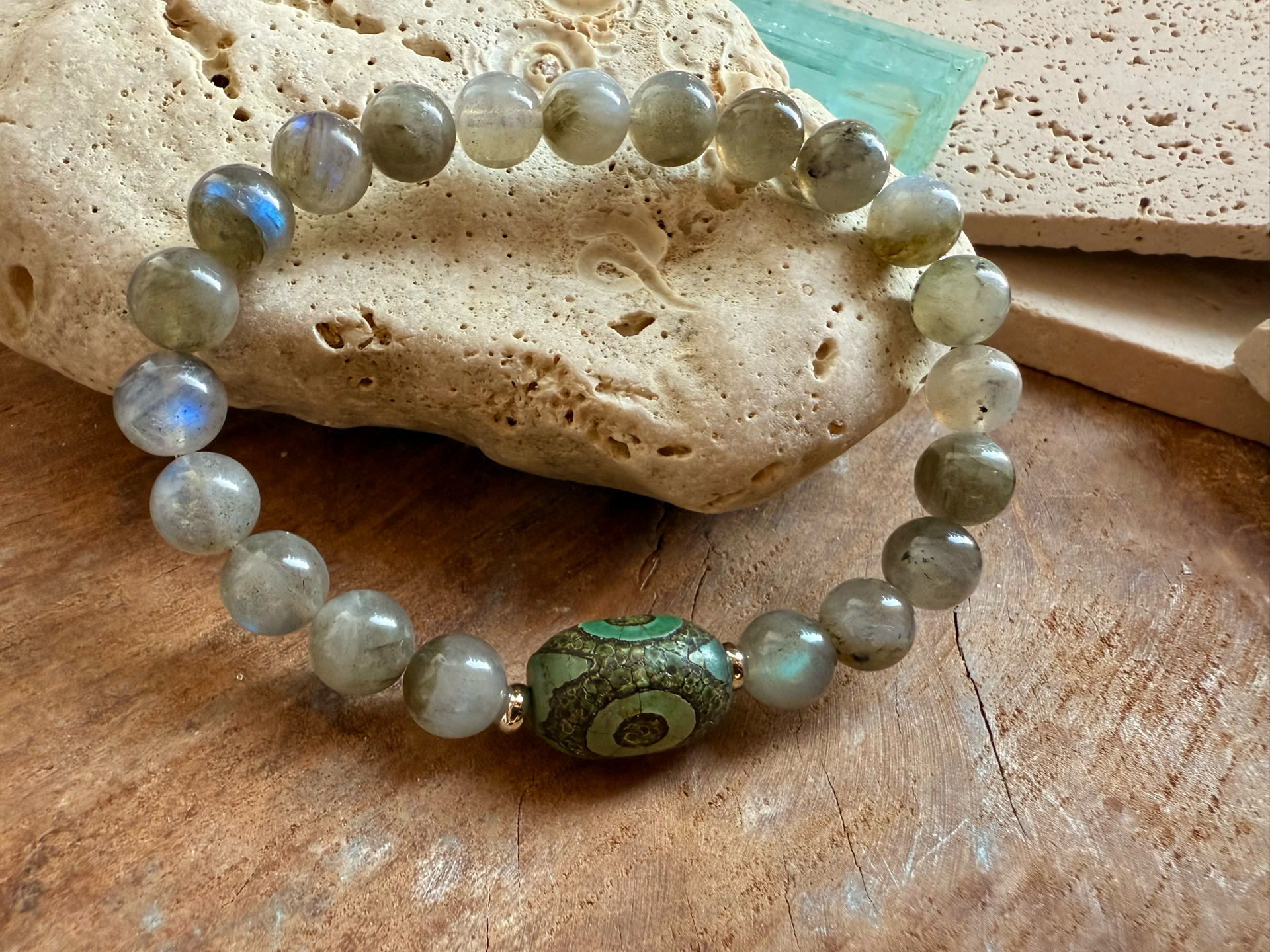 Pánsky náramok z labradoritu a Dzi achátu – Šaman