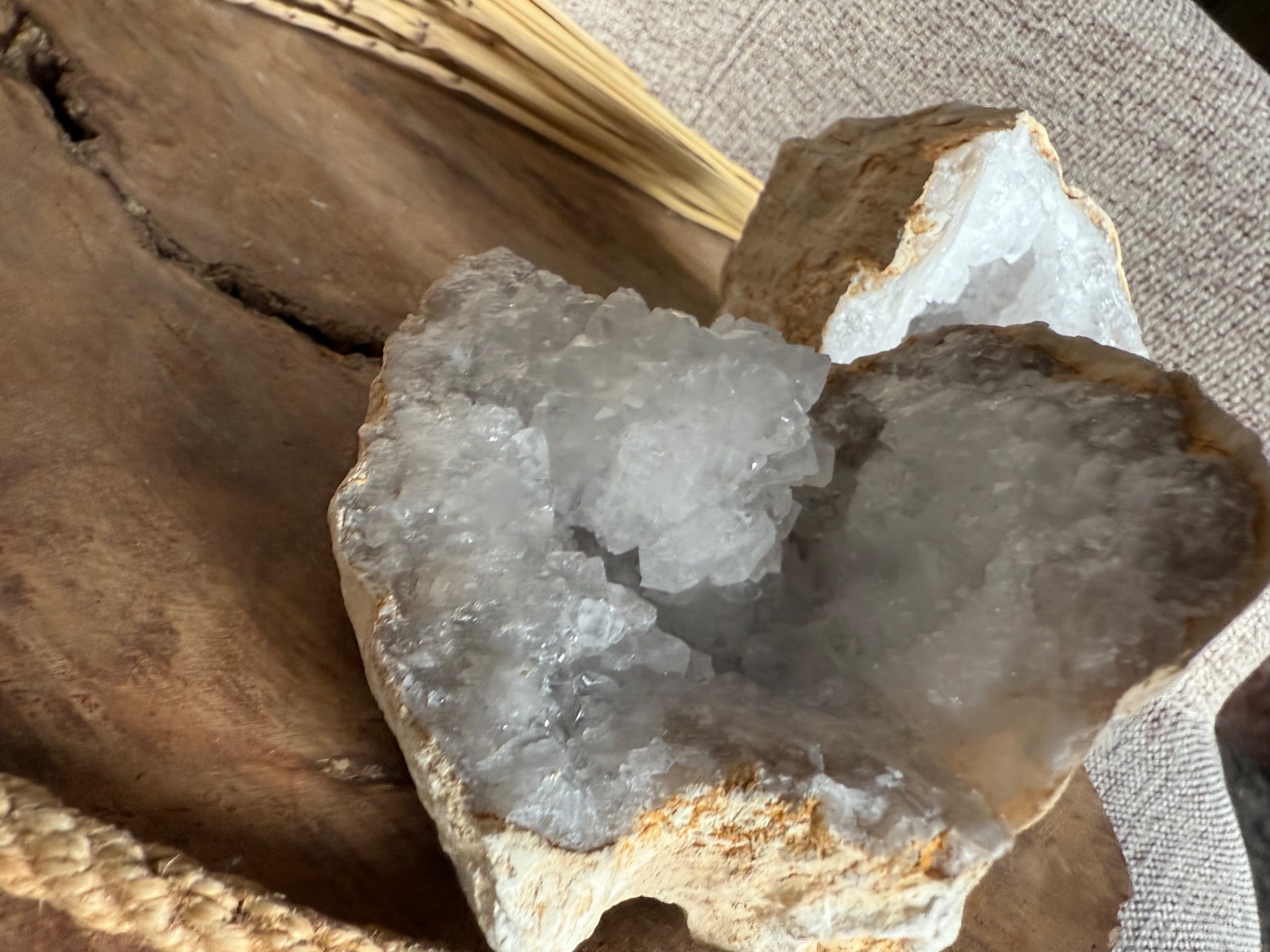 Objavte čistotu a harmonizujúcu energiu krištáľu s týmito párovými geodkami z Maroka. Každá geodka je jedinečná a spolu tvoria dokonalý pár, ktorý je možné zatvoriť a spojiť, čím vzniká harmonický solitér s plnou energiou. Cena je stanovená za obidve polky spolu.